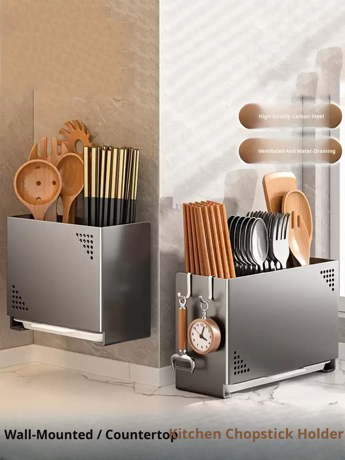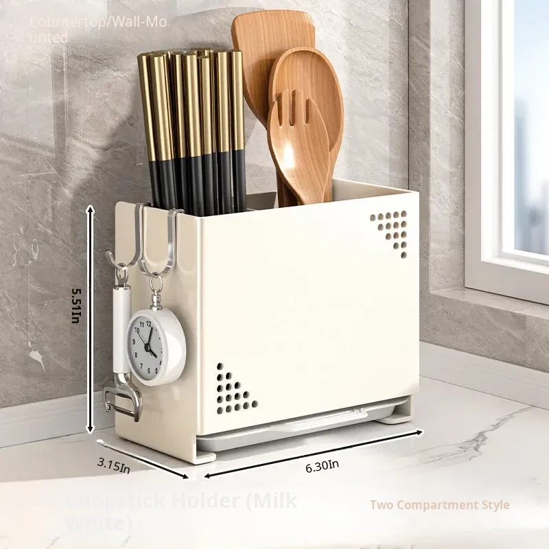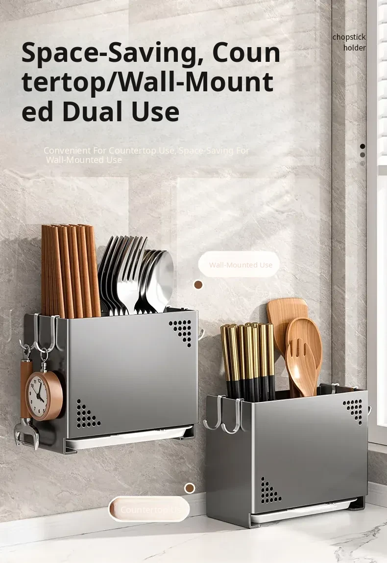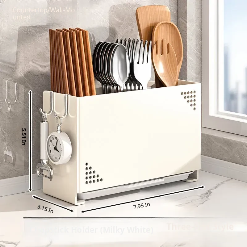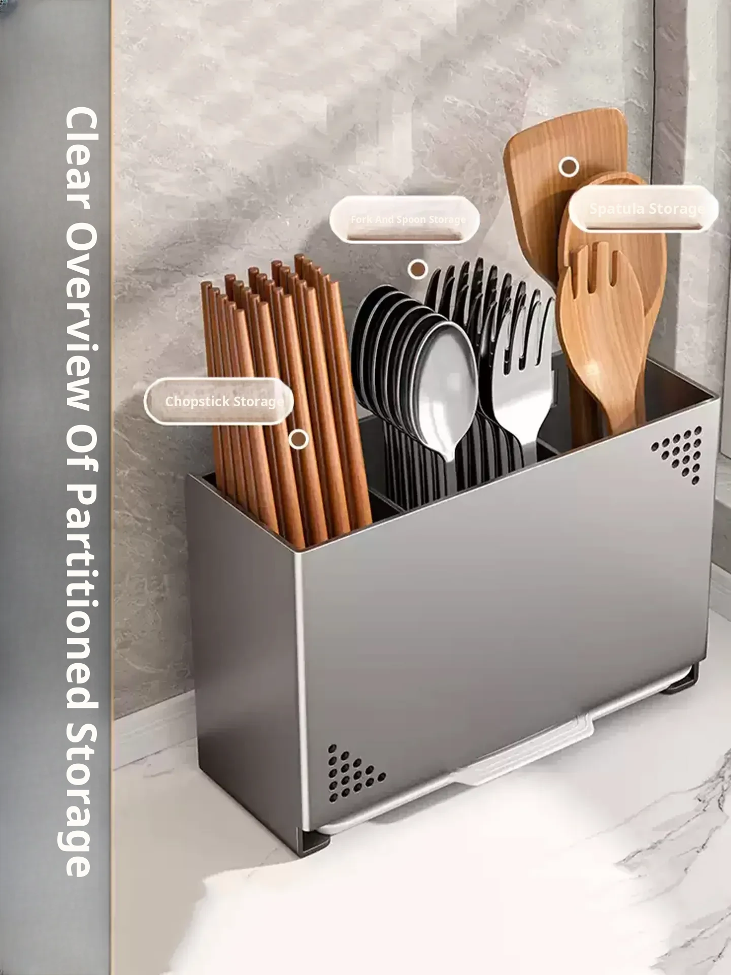 Chopstick Storage Box with Drainage - Stylish and Functional Kitchen Organizer for Chopsticks and Spoons, Space-Saving Design for Your Countertop