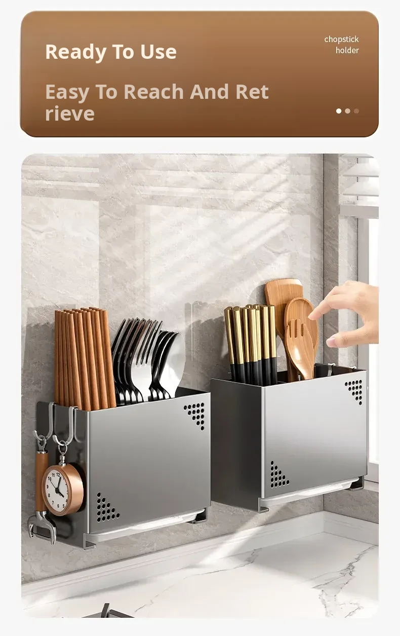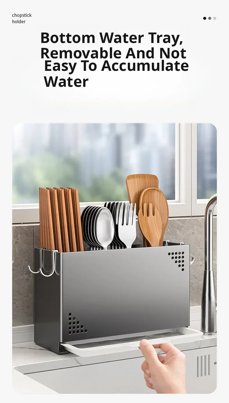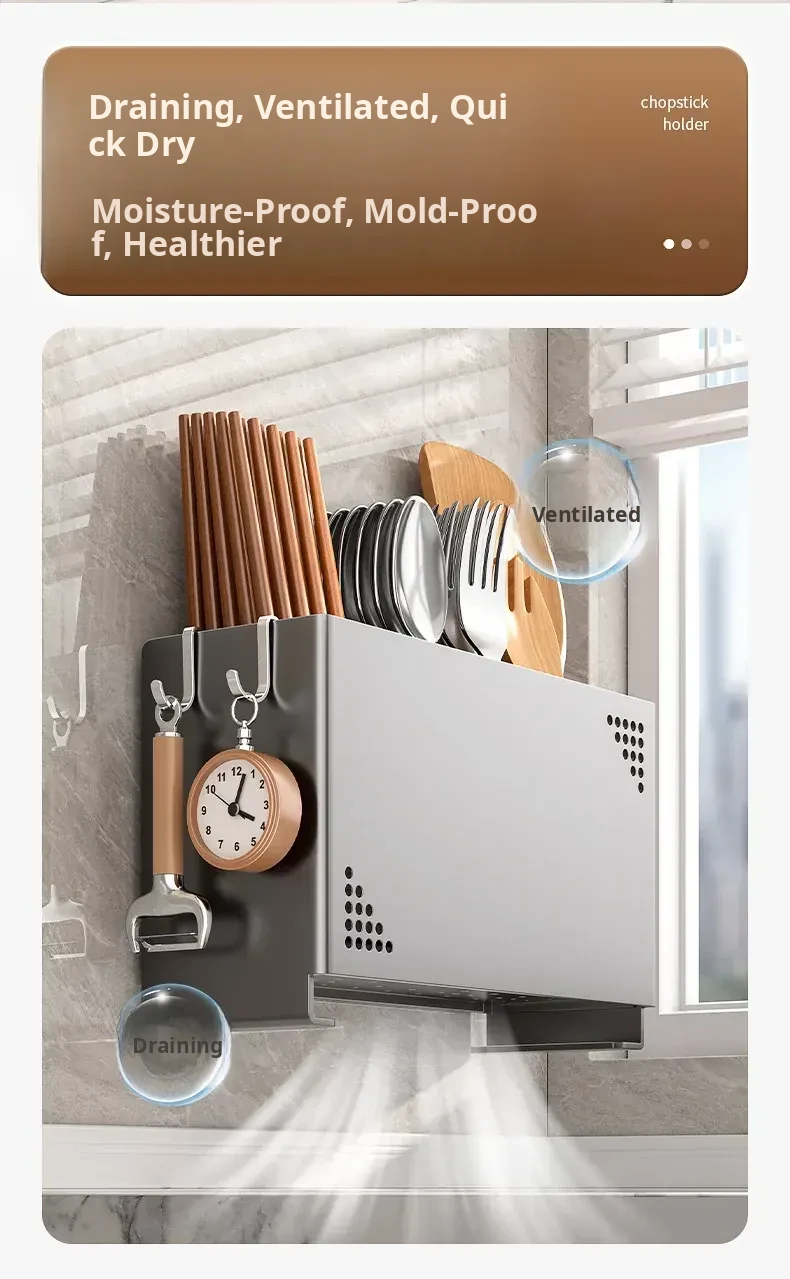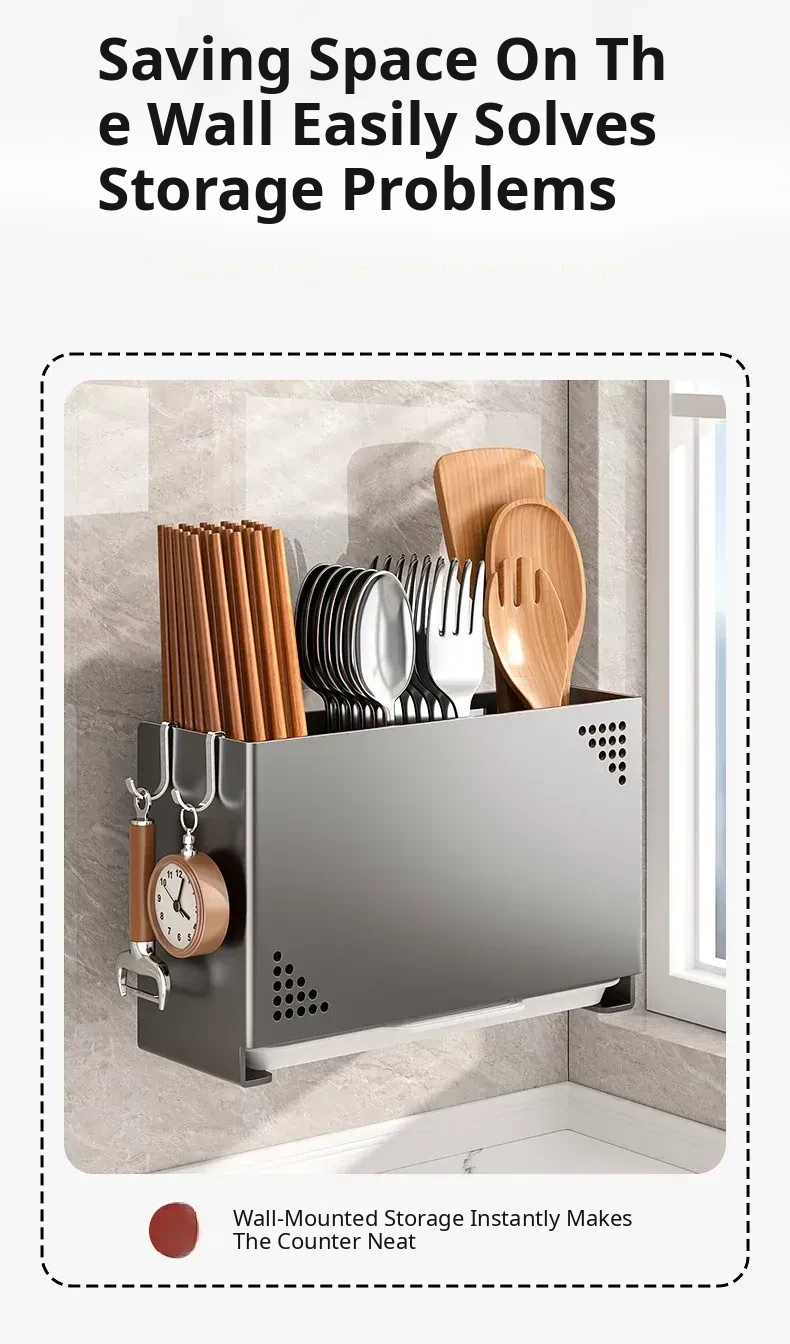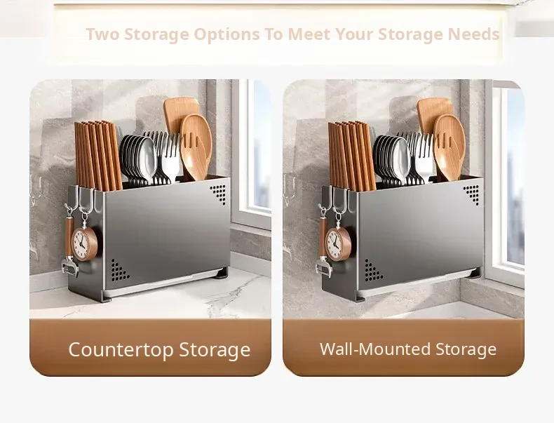 Chopstick Storage Box with Drainage - Stylish and Functional Kitchen Organizer for Chopsticks and Spoons, Space-Saving Design for Your Countertop
