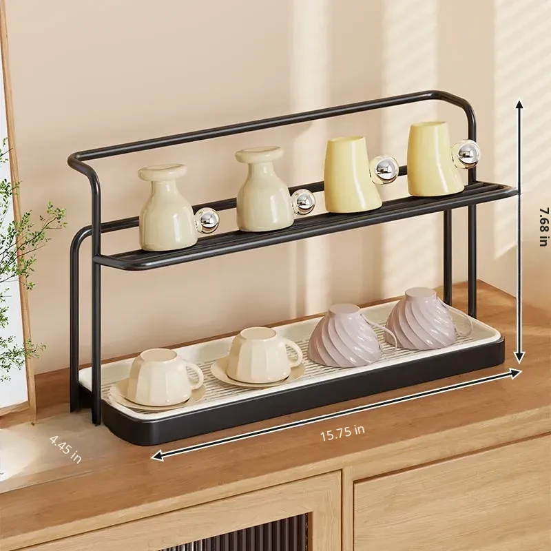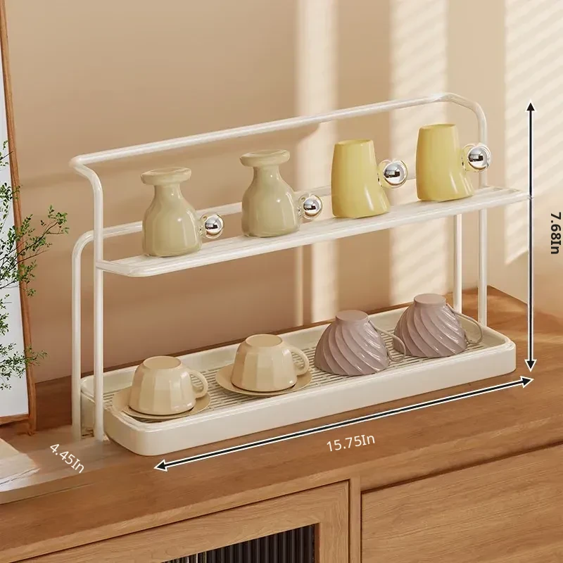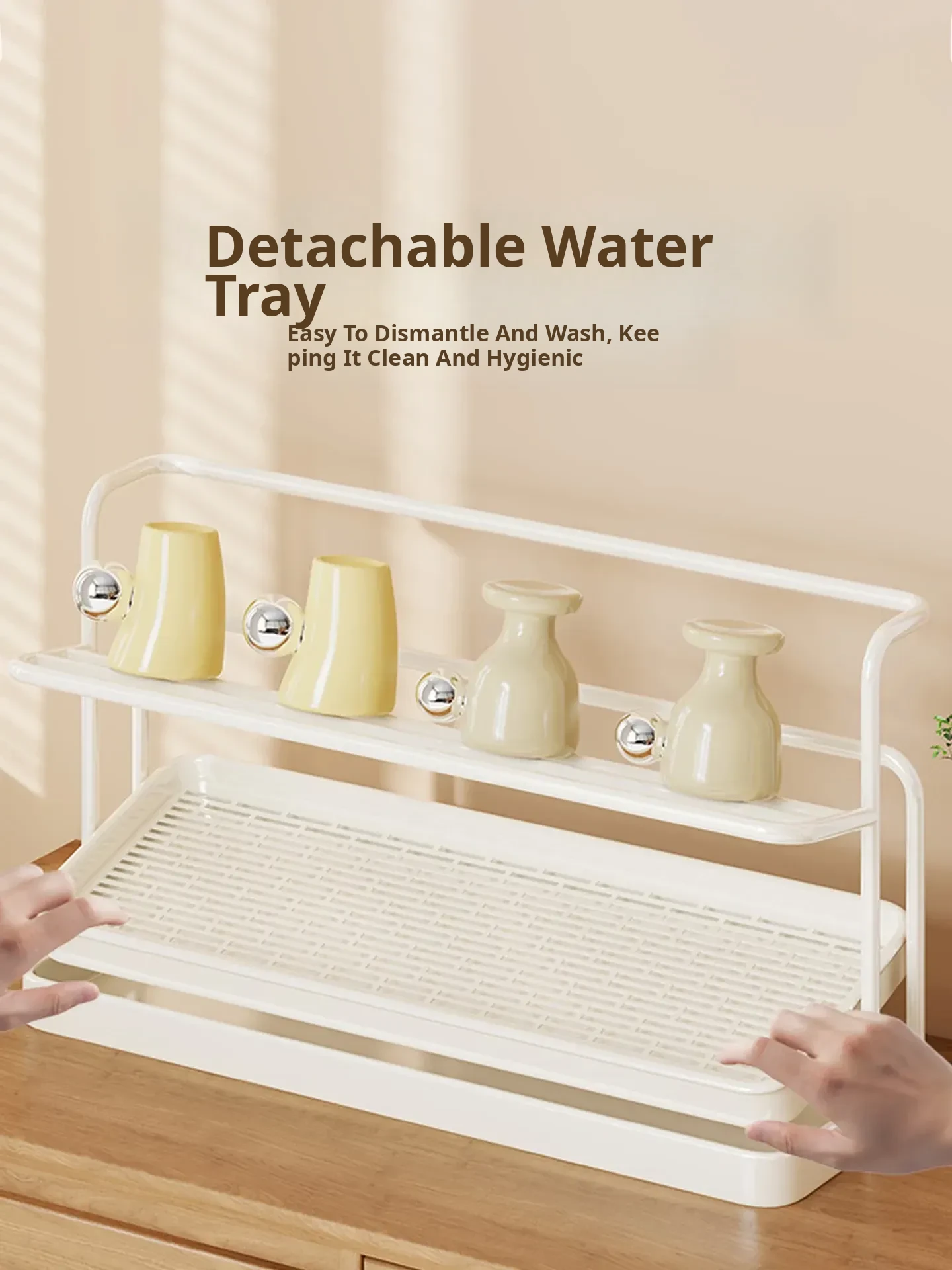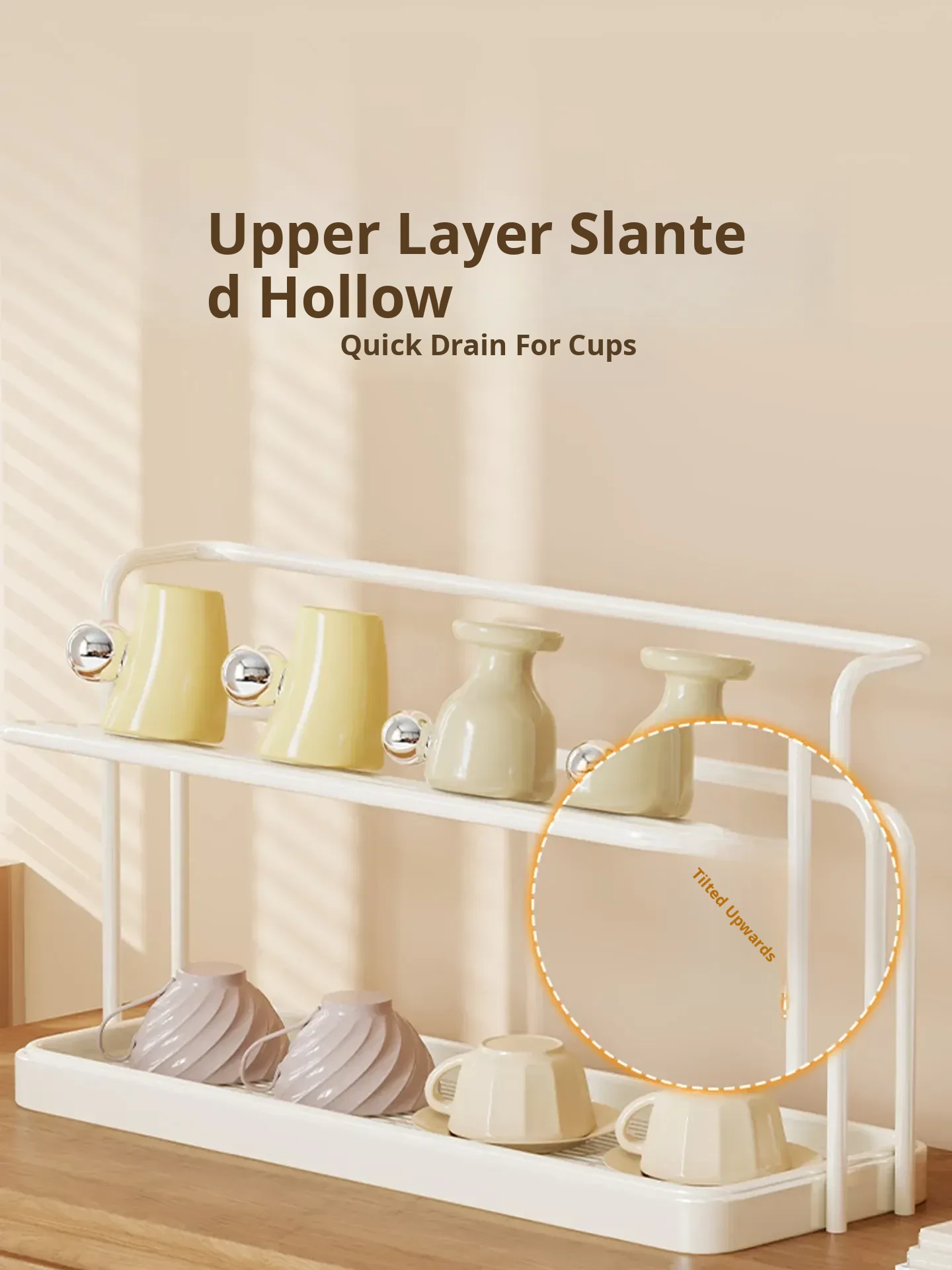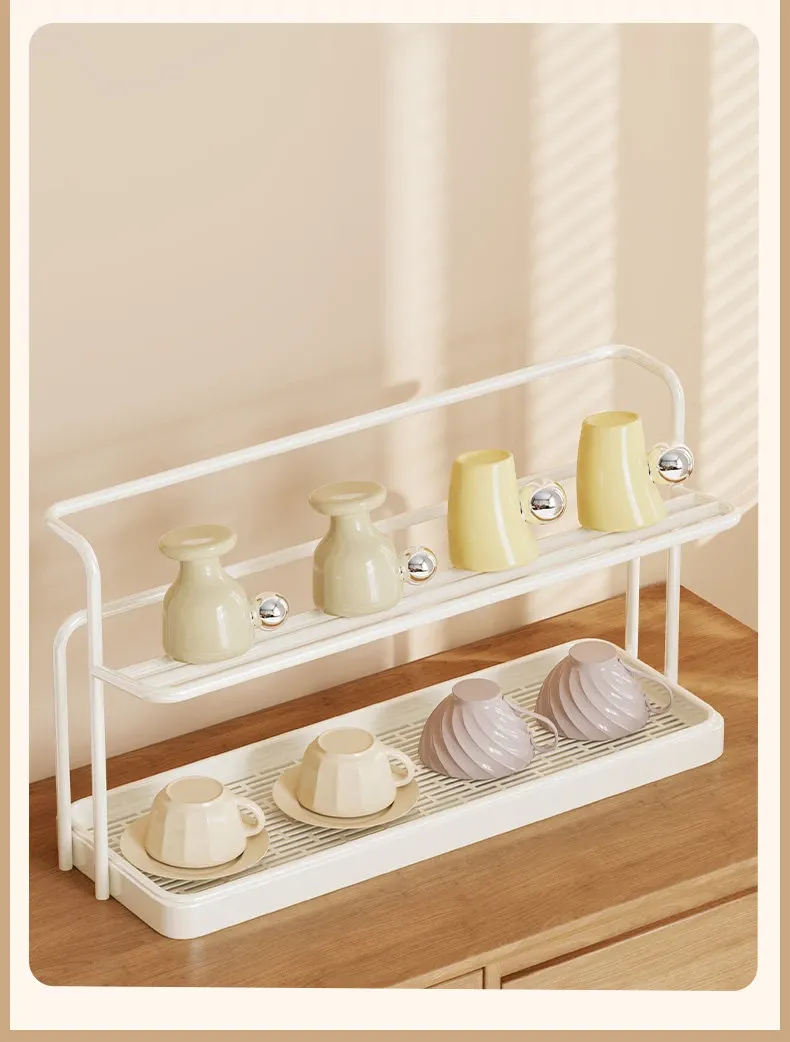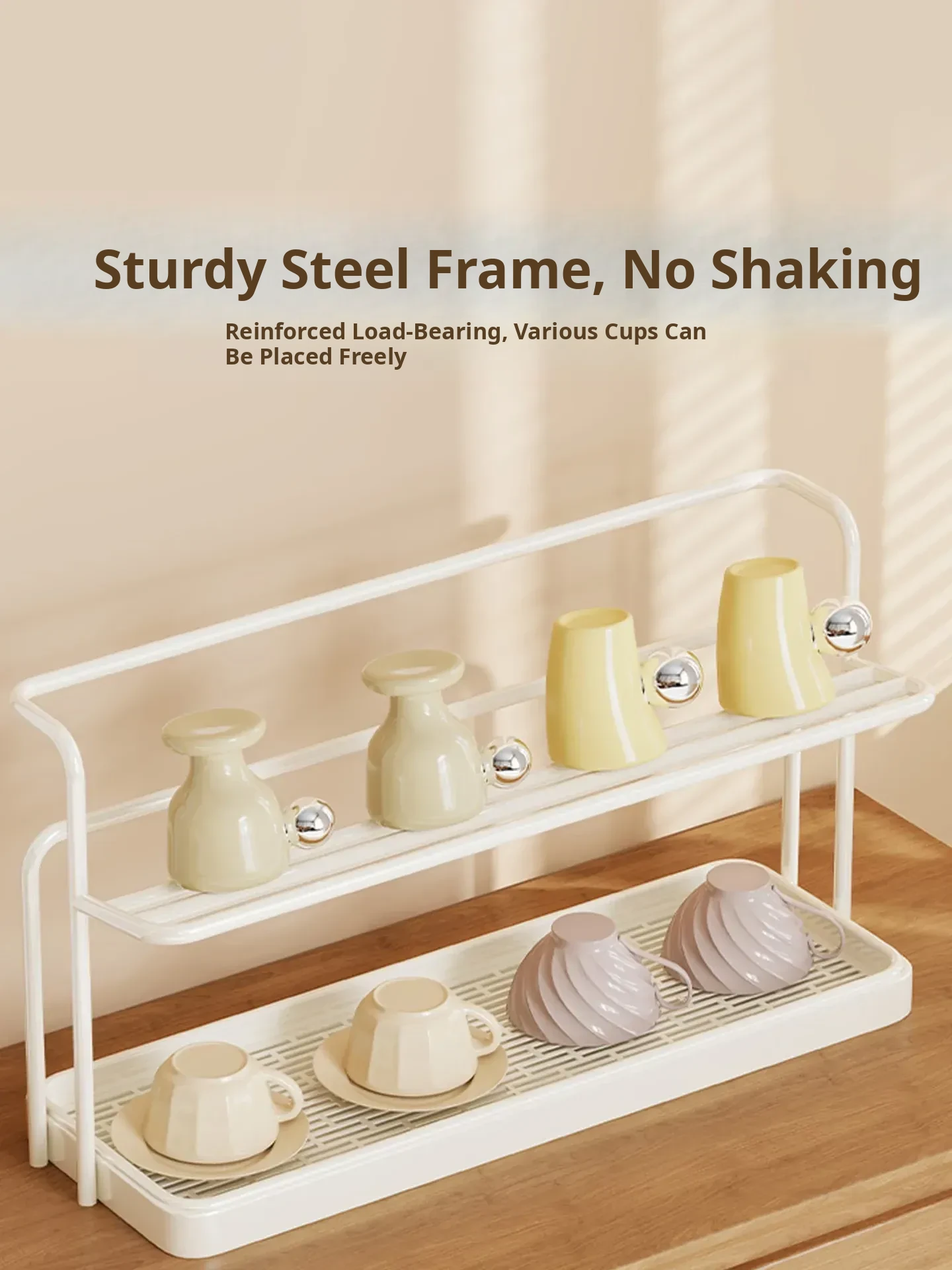 Double-Layer Cup Holder and Drainer - Stylish Kitchen and Dining Table Organizer for Water Cups, Coffee Mugs, and Tea Sets - Perfect Storage Solution for a Tidy and Elegant Space