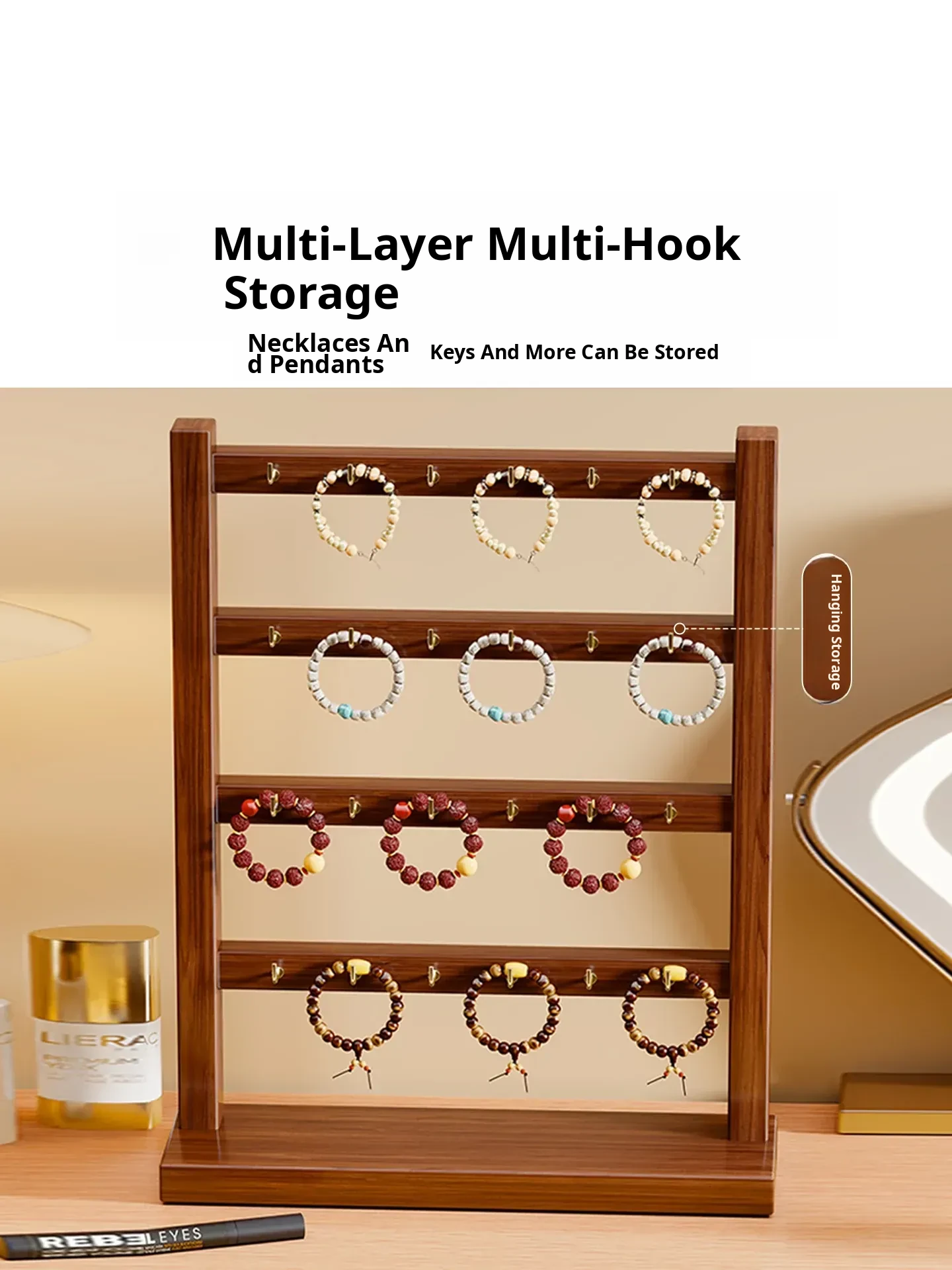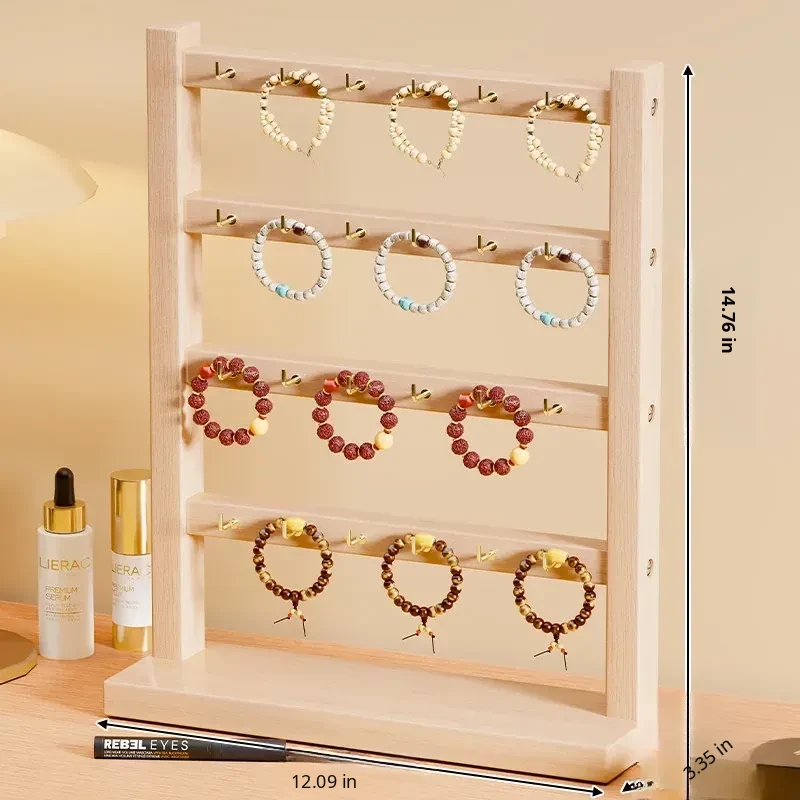 Elegant Wooden Jewelry Display Rack - Desktop Organizer for Bracelets, Necklaces, Watches, and Bangles - Perfect Storage Solution for Your Precious Accessories!