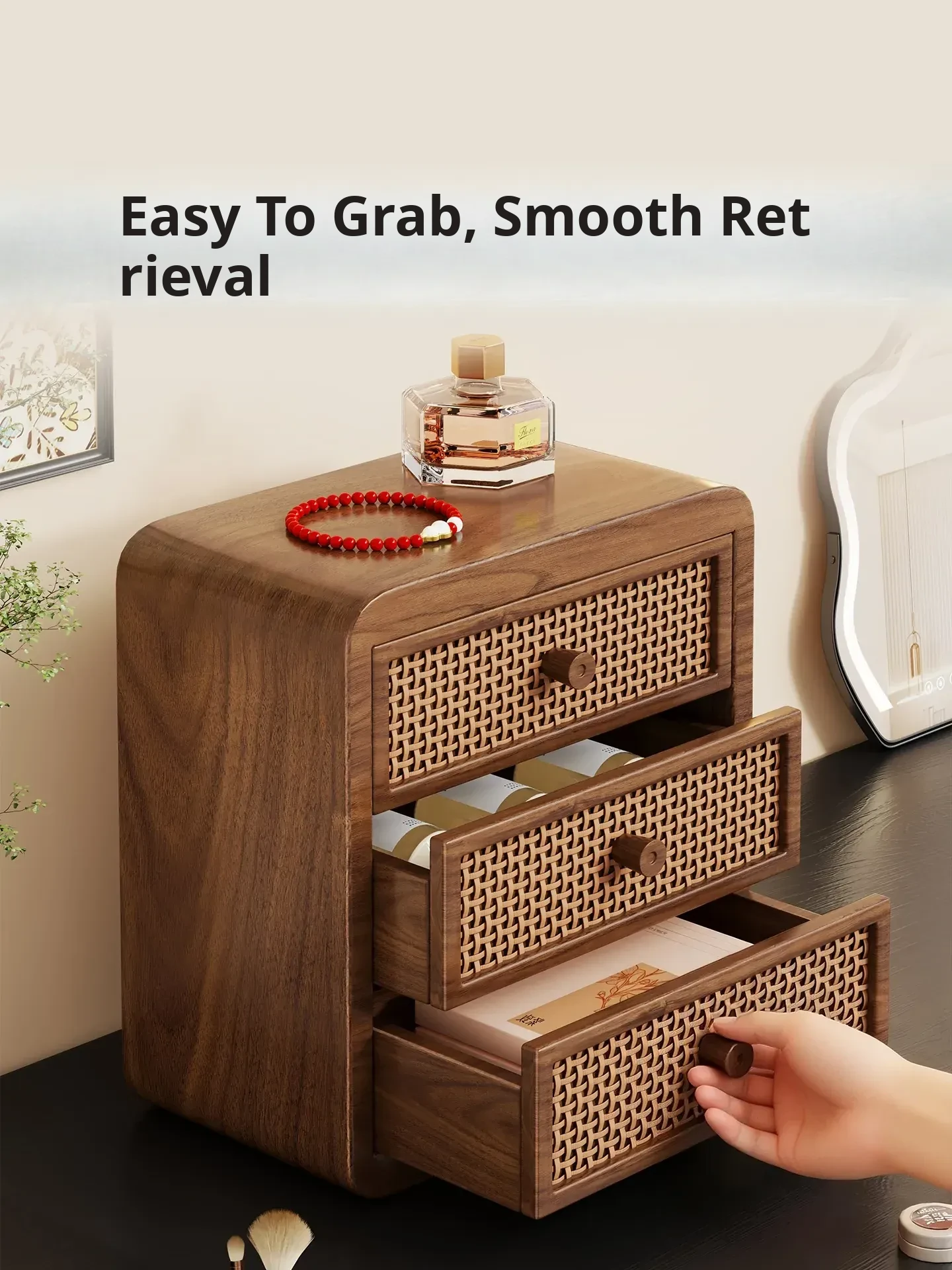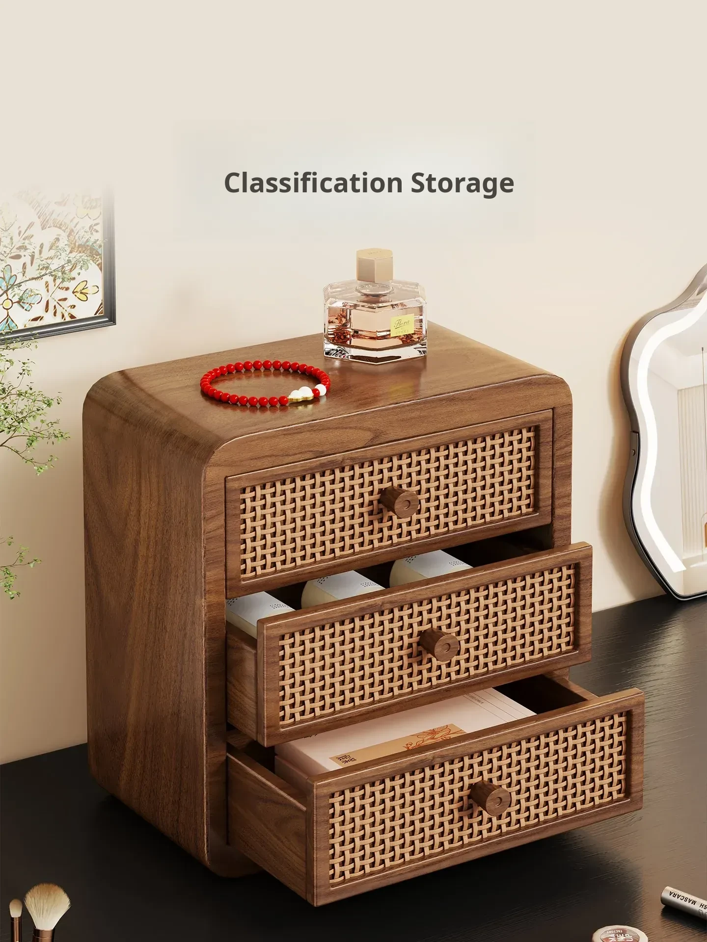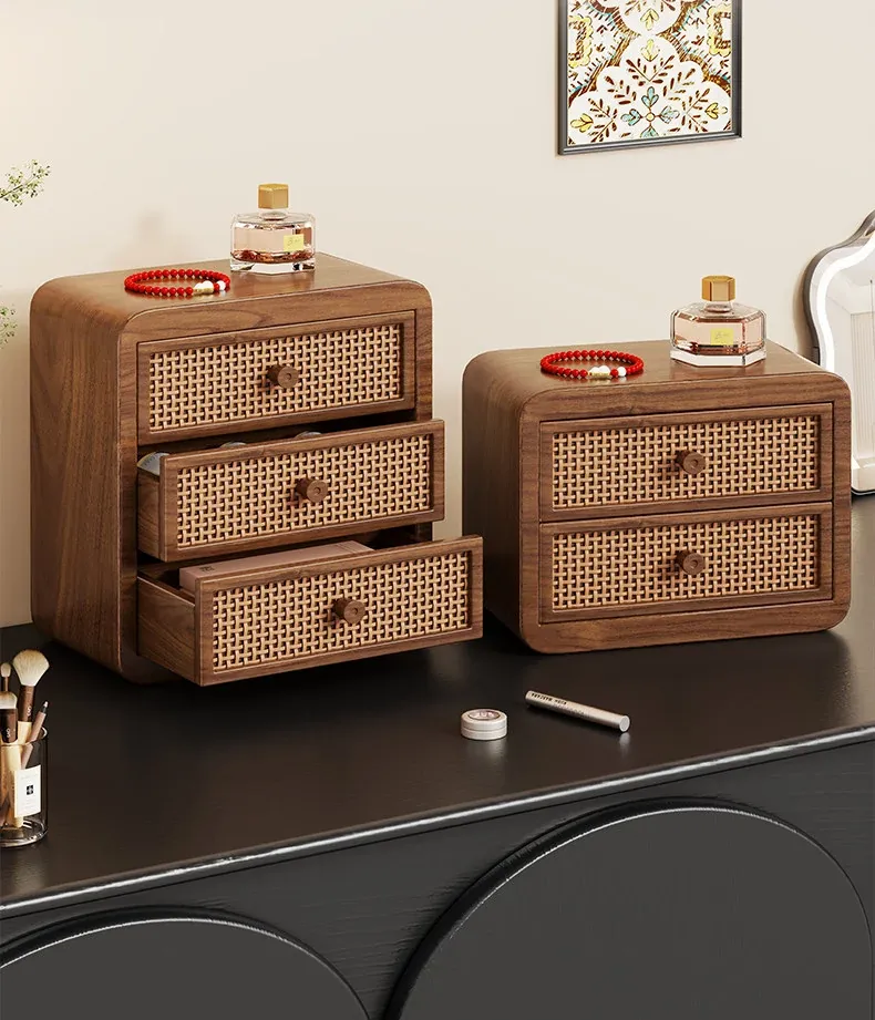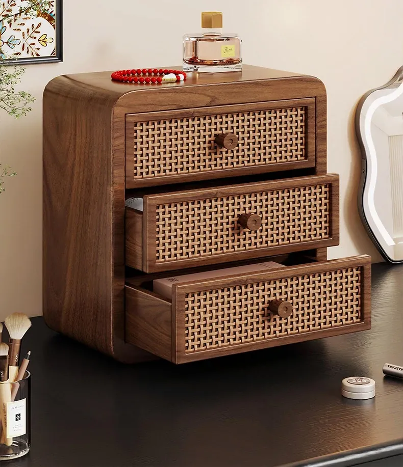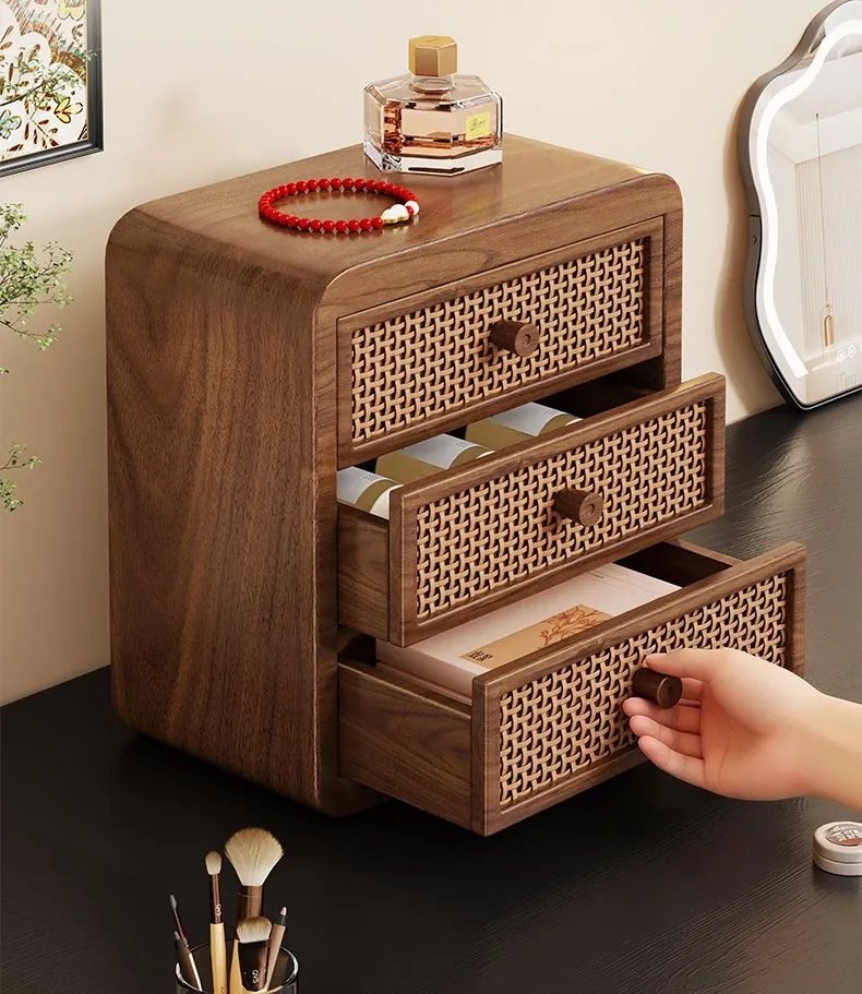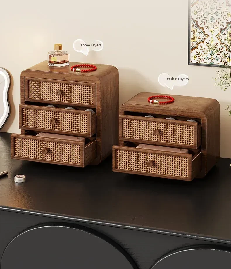 Elegant Wooden Makeup Organizer with Dustproof Drawers - Stylish Storage for Lipsticks, Masks, and Skincare Products on Your Dressing Table