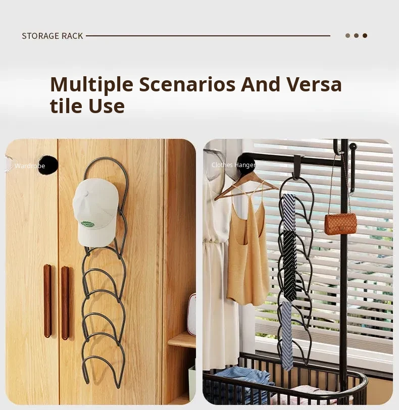 5-Ring Black Over-The-Door Hanger (Includes 2 Non-Trace Nails + 1 Adhesive Pad + 1 Iron Hook)