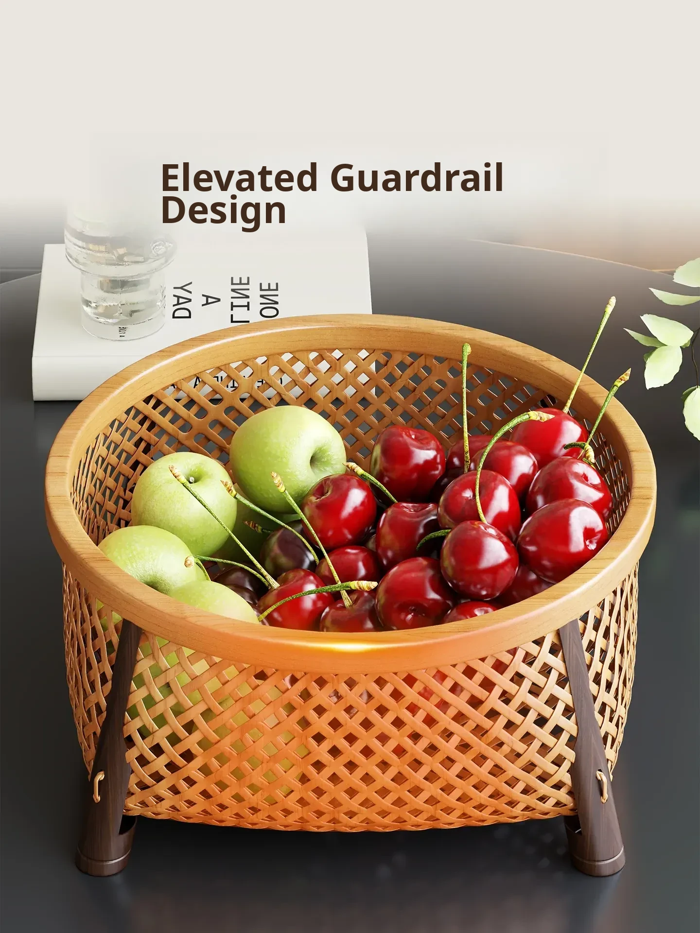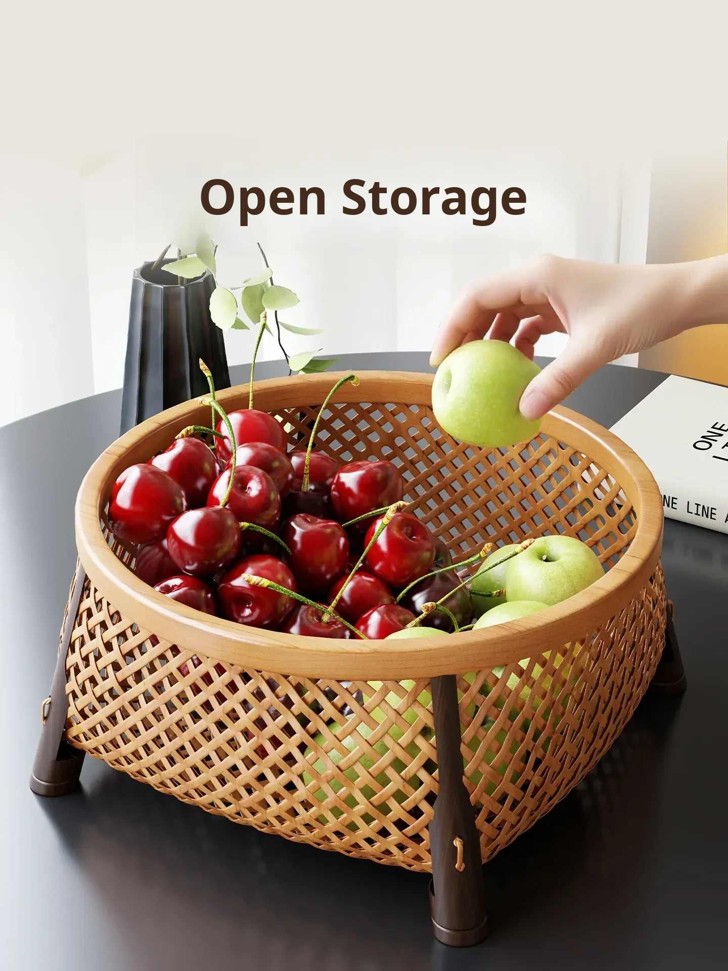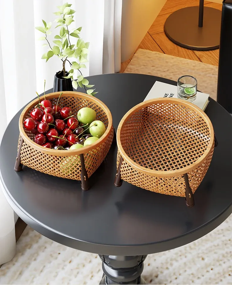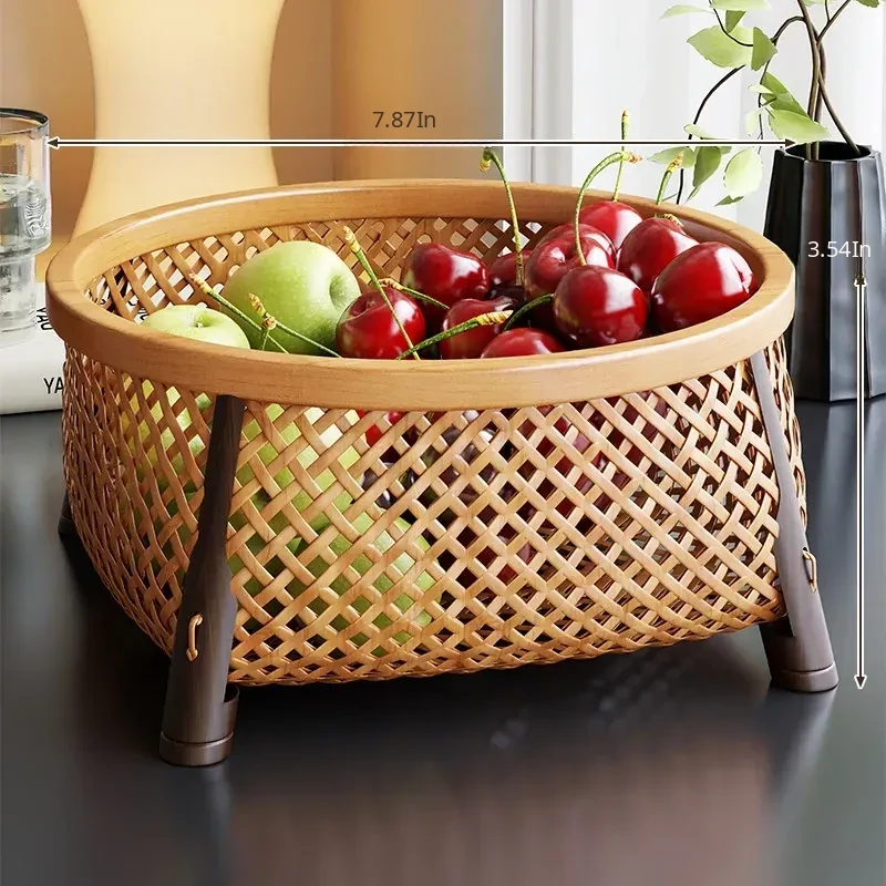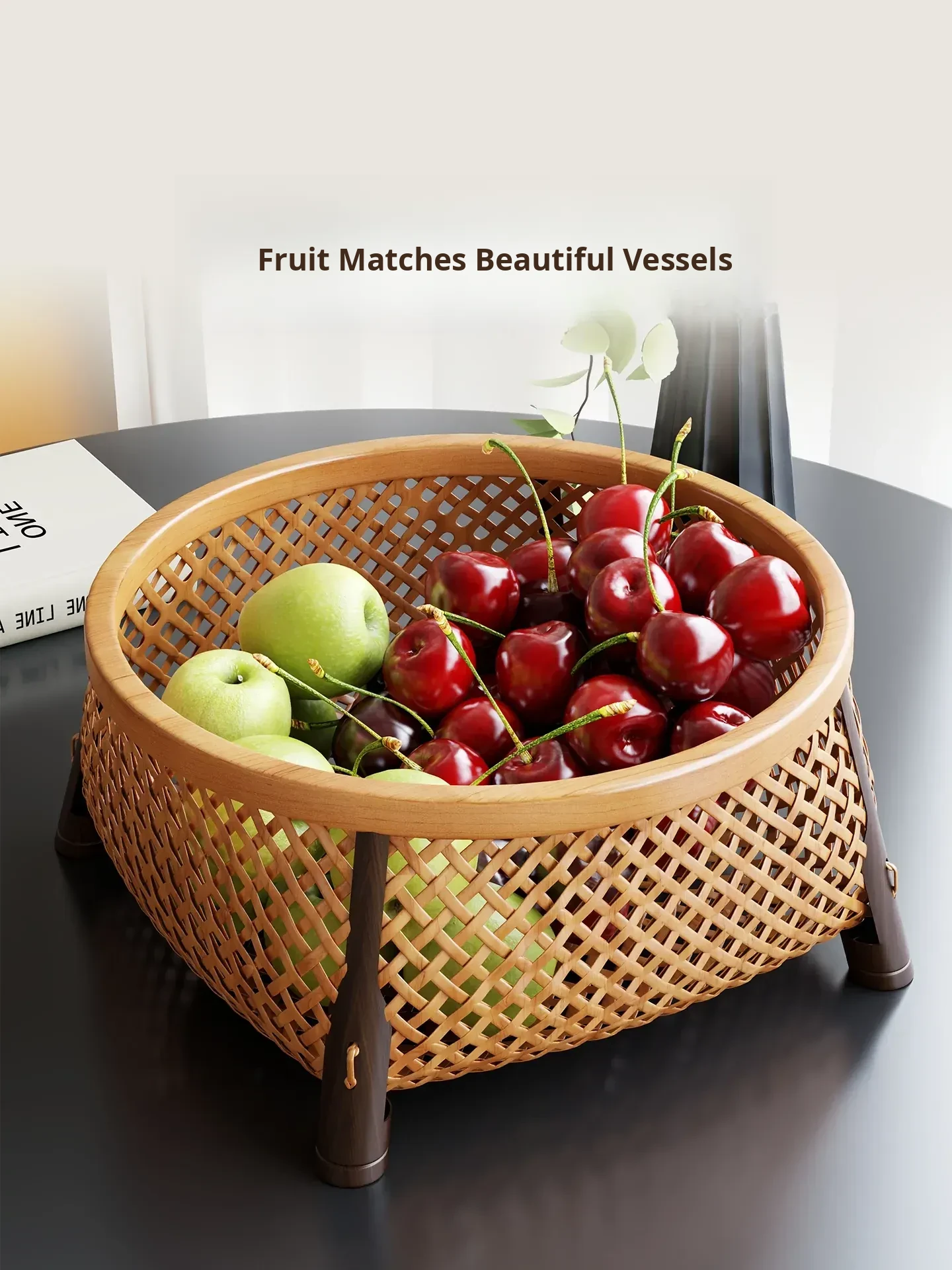 Japanese-Style Woven Storage Basket - Versatile Fruit and Snack Tray for Living Room and Dining Table - Perfect for Home Organization and Stylish Décor