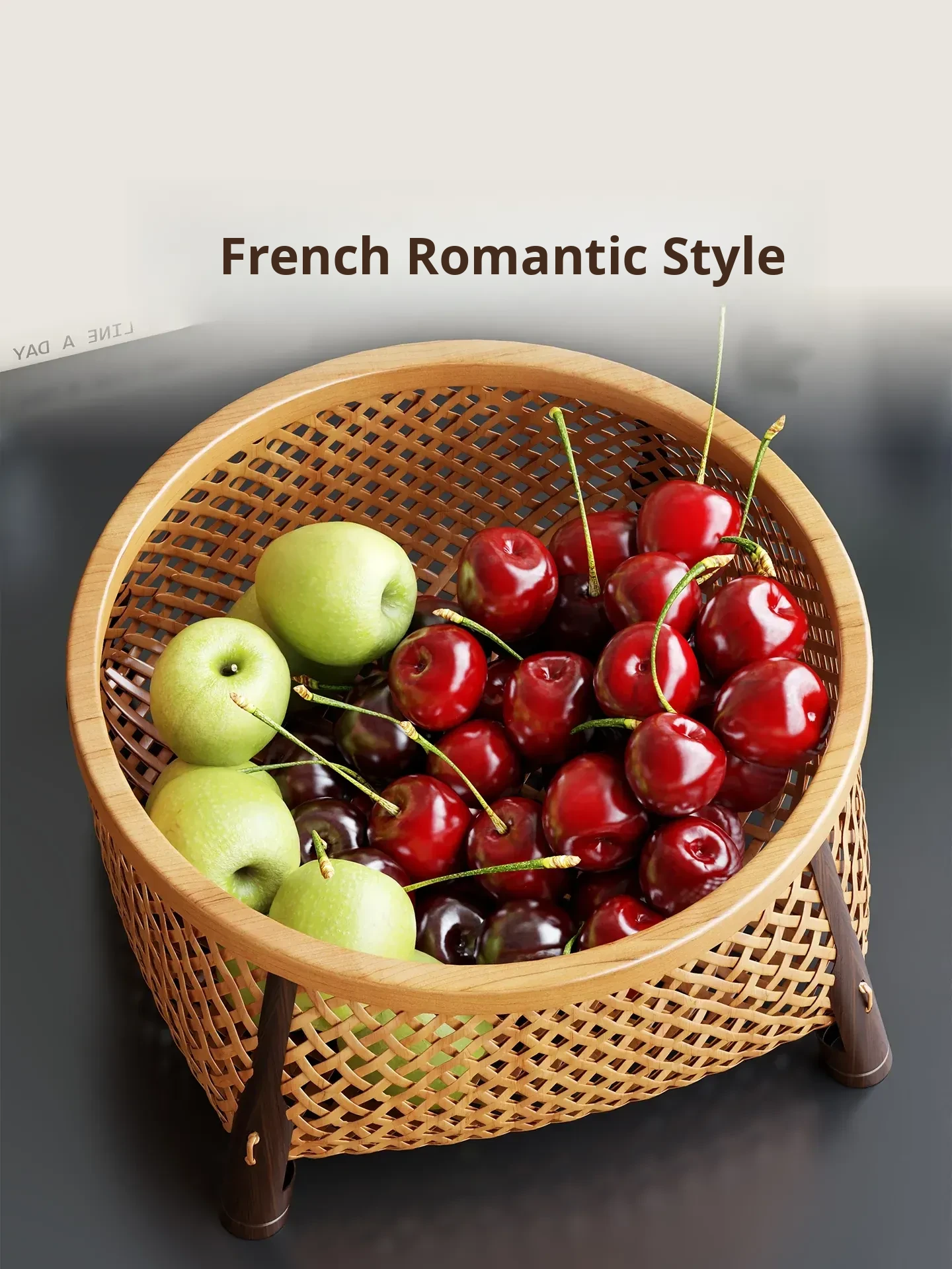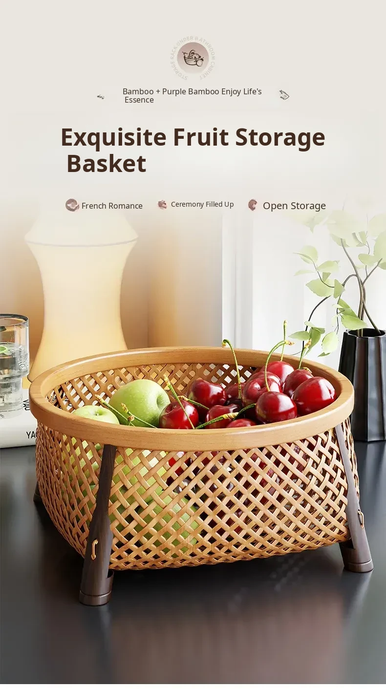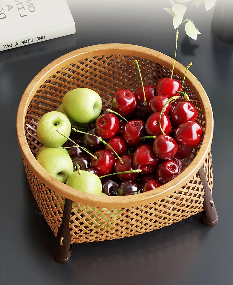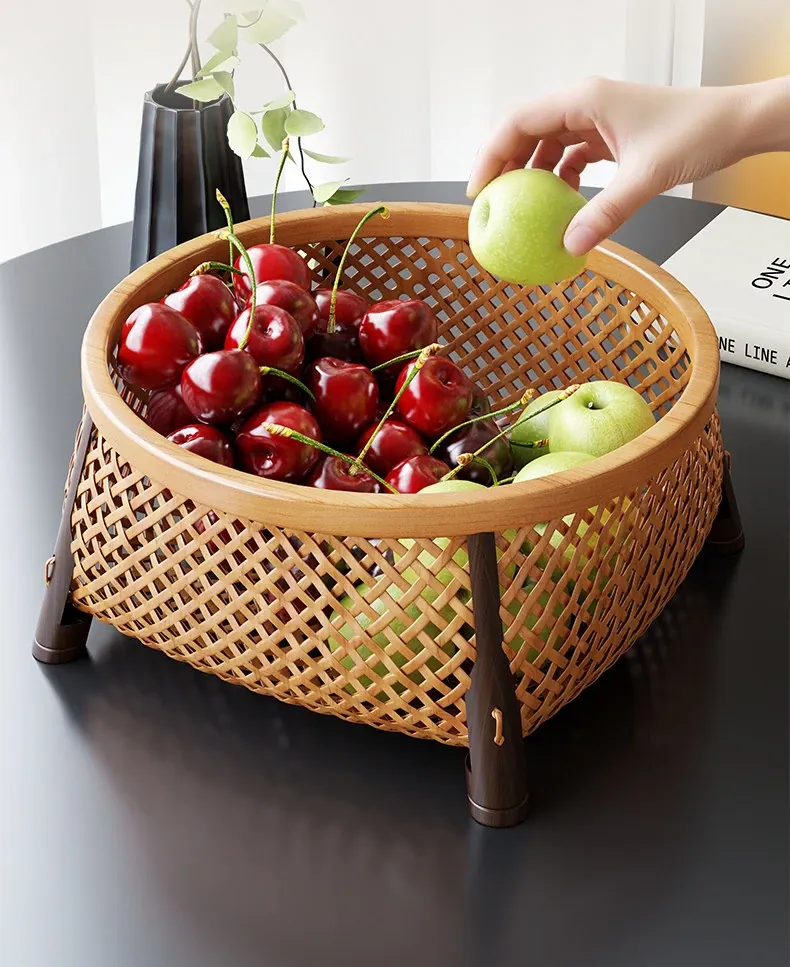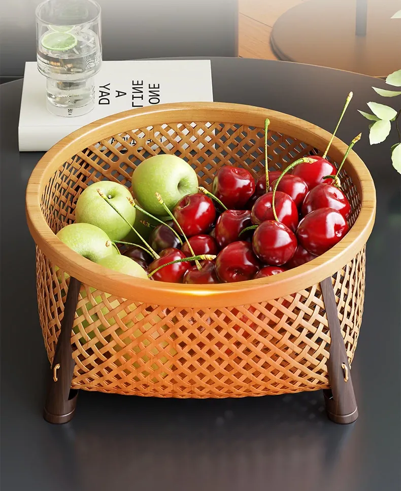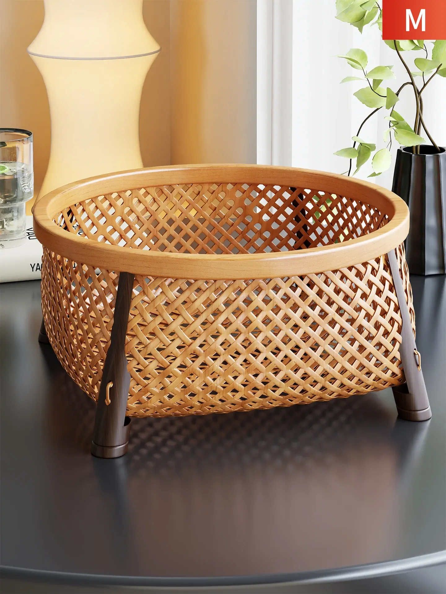 Japanese-Style Woven Storage Basket - Versatile Fruit and Snack Tray for Living Room and Dining Table - Perfect for Home Organization and Stylish Décor