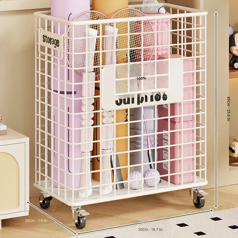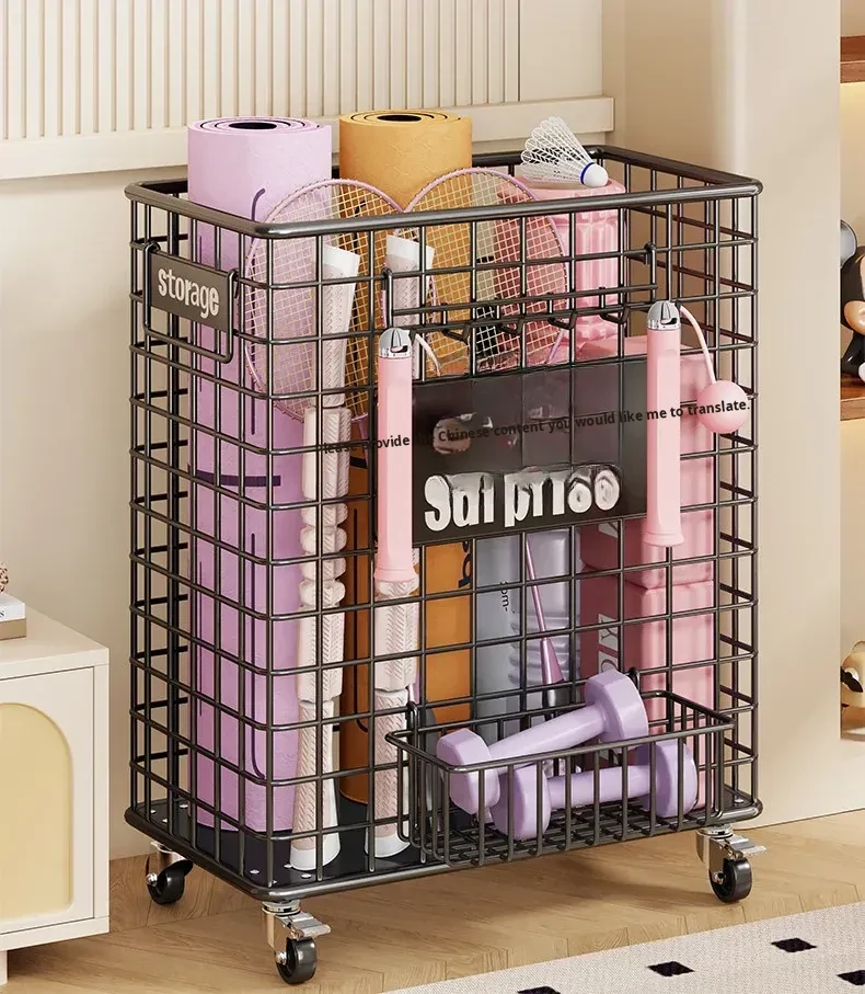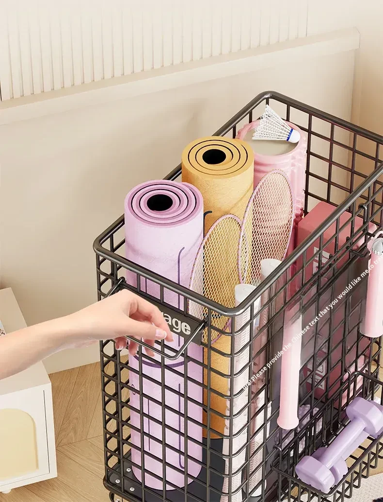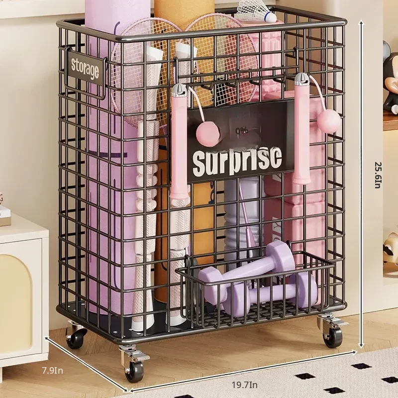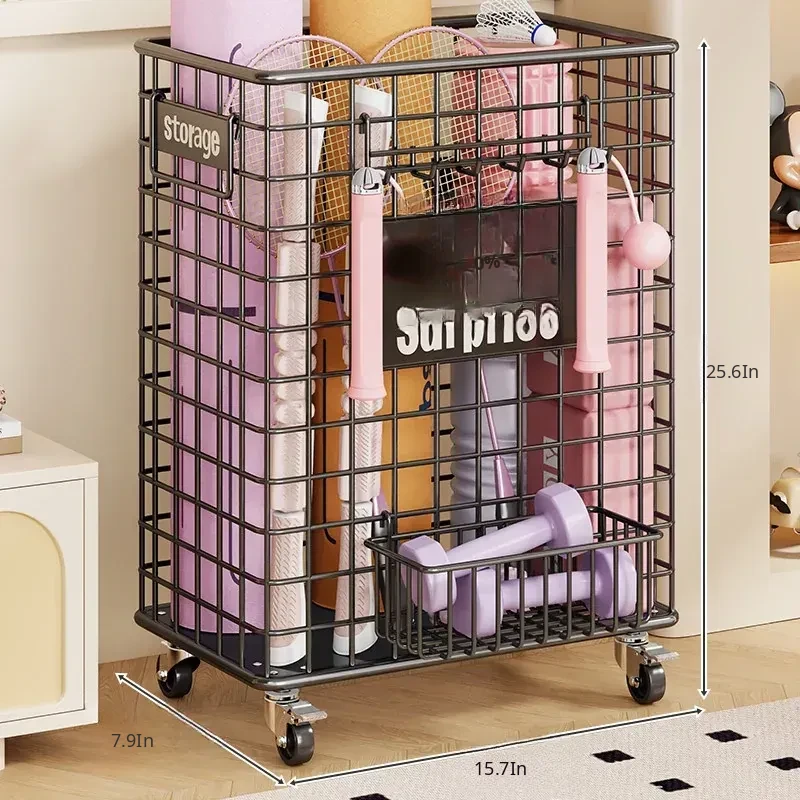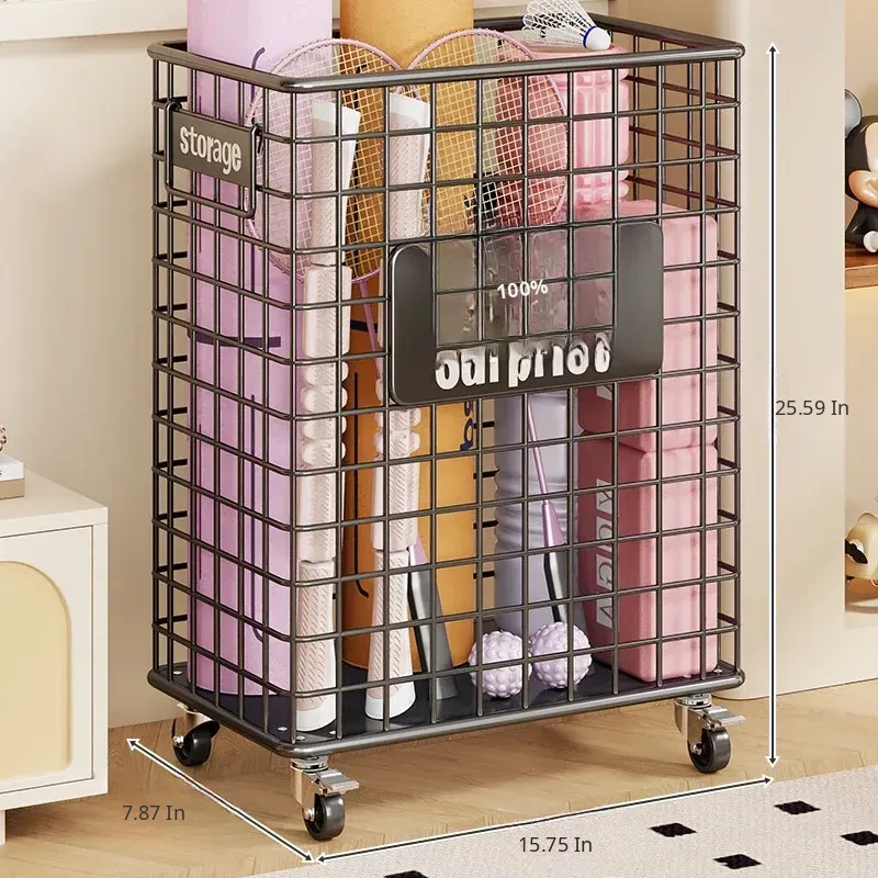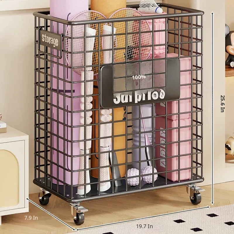 Large Capacity Yoga Mat Storage Basket with Wheels - Portable Fitness Equipment Organizer for Home & Sports Balls, Your Ultimate Storage Solution!