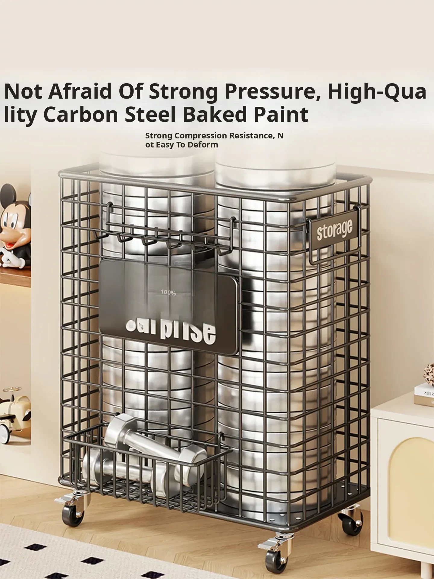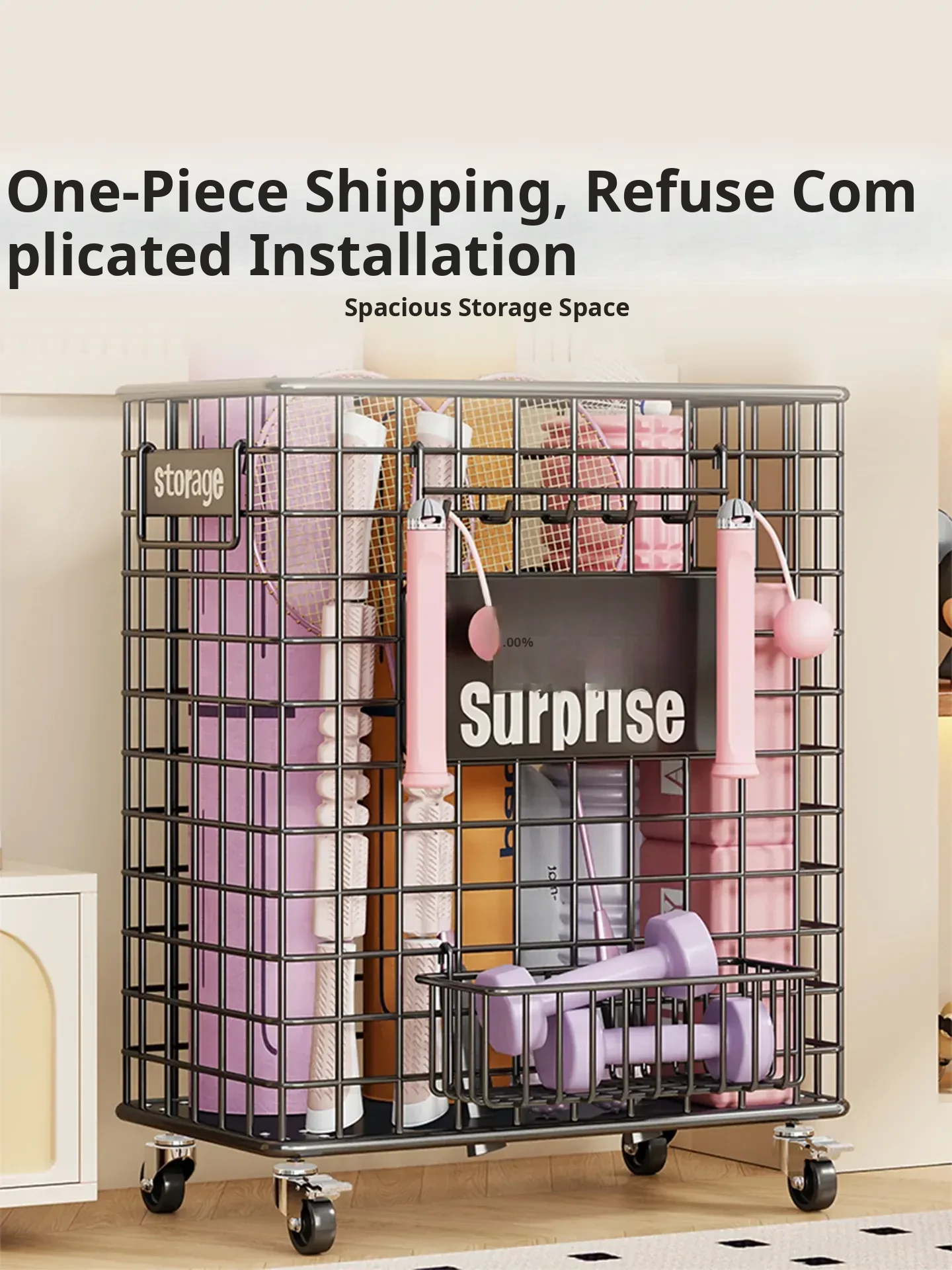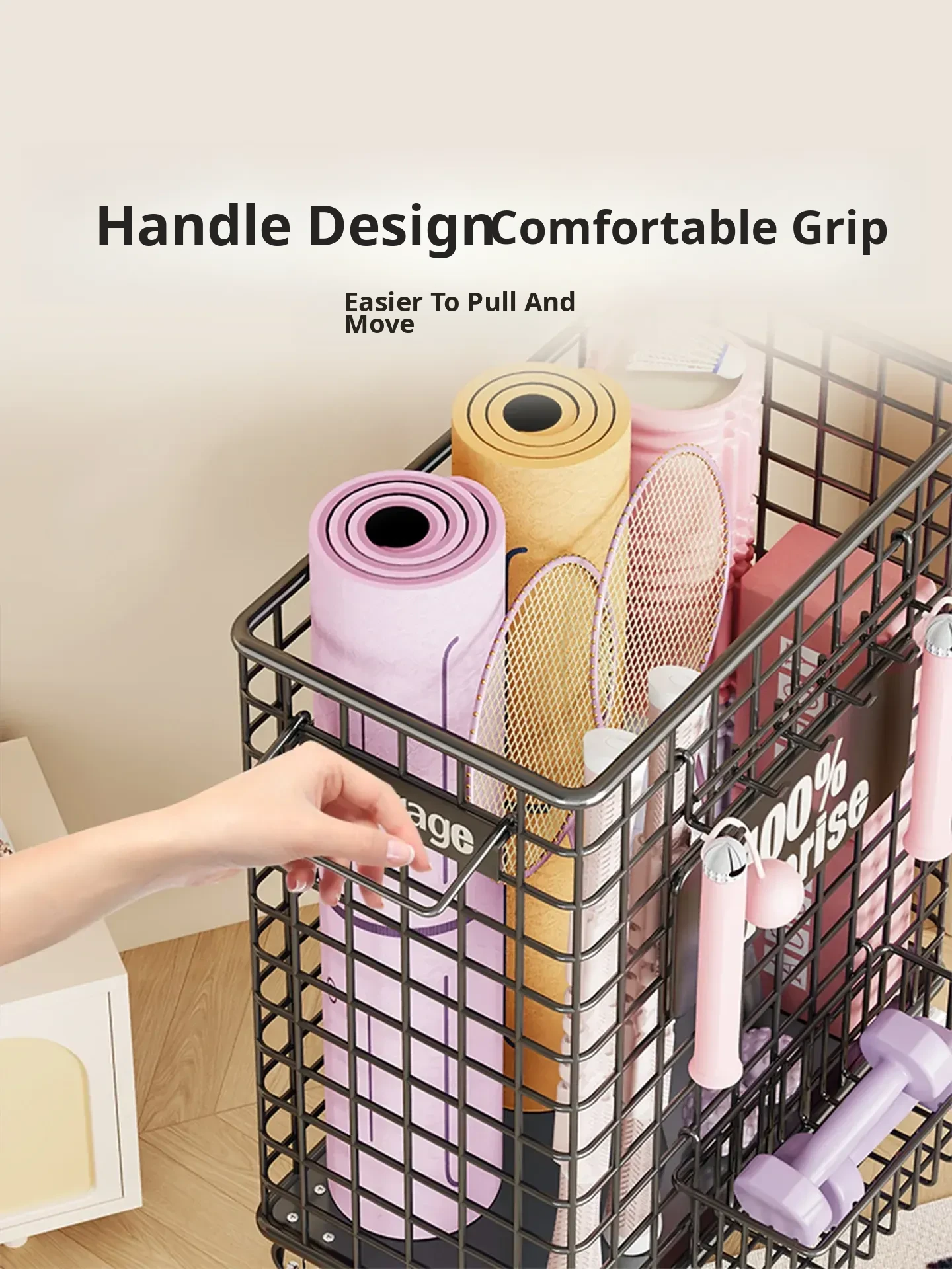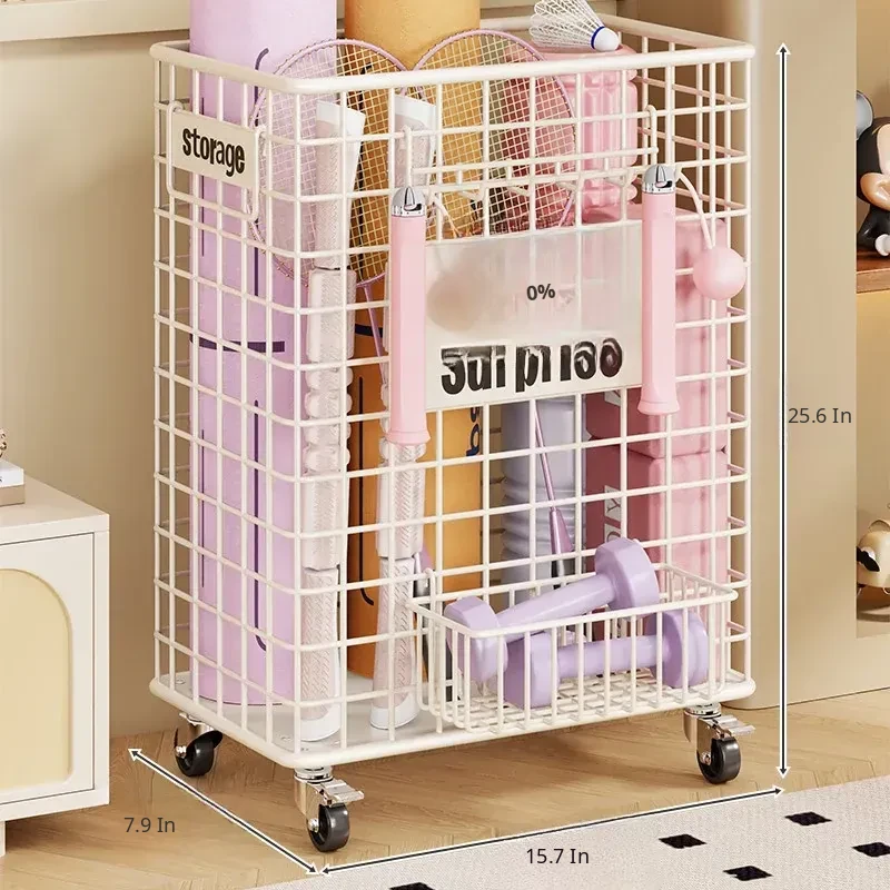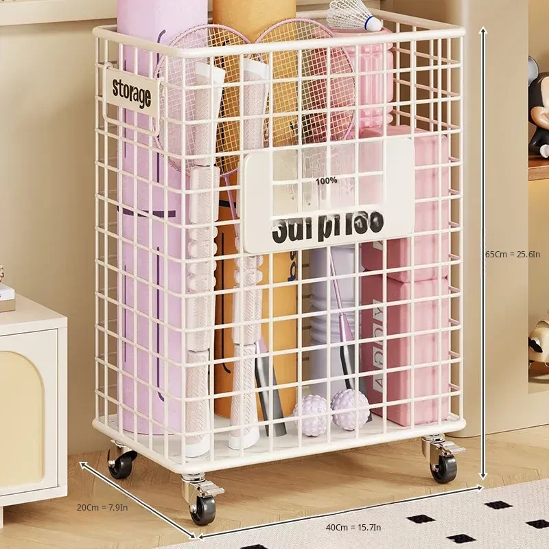 Large Capacity Yoga Mat Storage Basket with Wheels - Portable Fitness Equipment Organizer for Home & Sports Balls, Your Ultimate Storage Solution!
