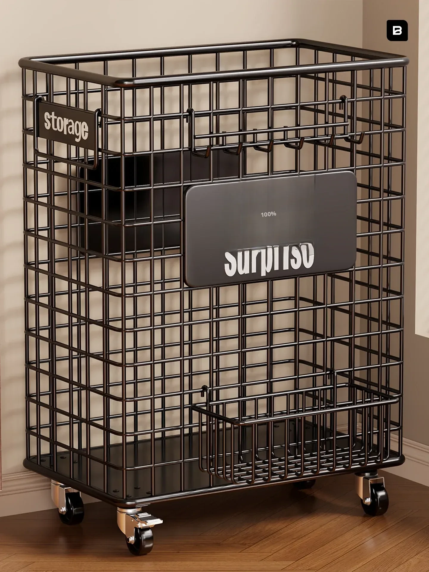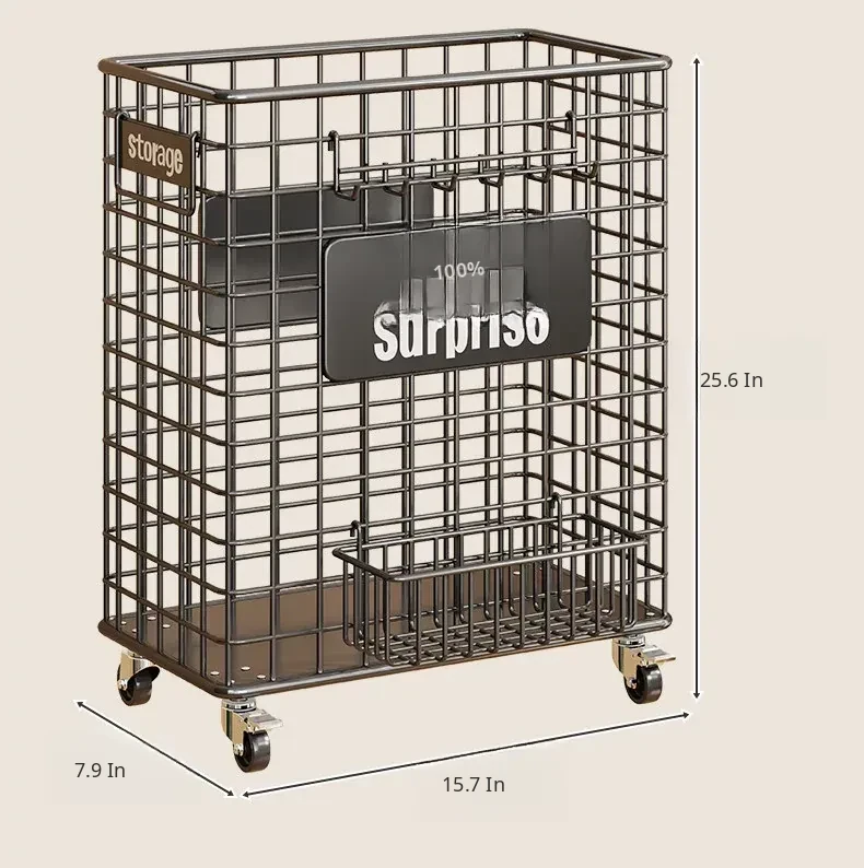 Black Small Rolling Cart with Hanging Basket and Hooks