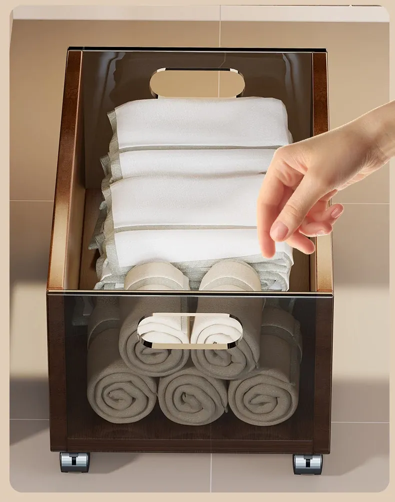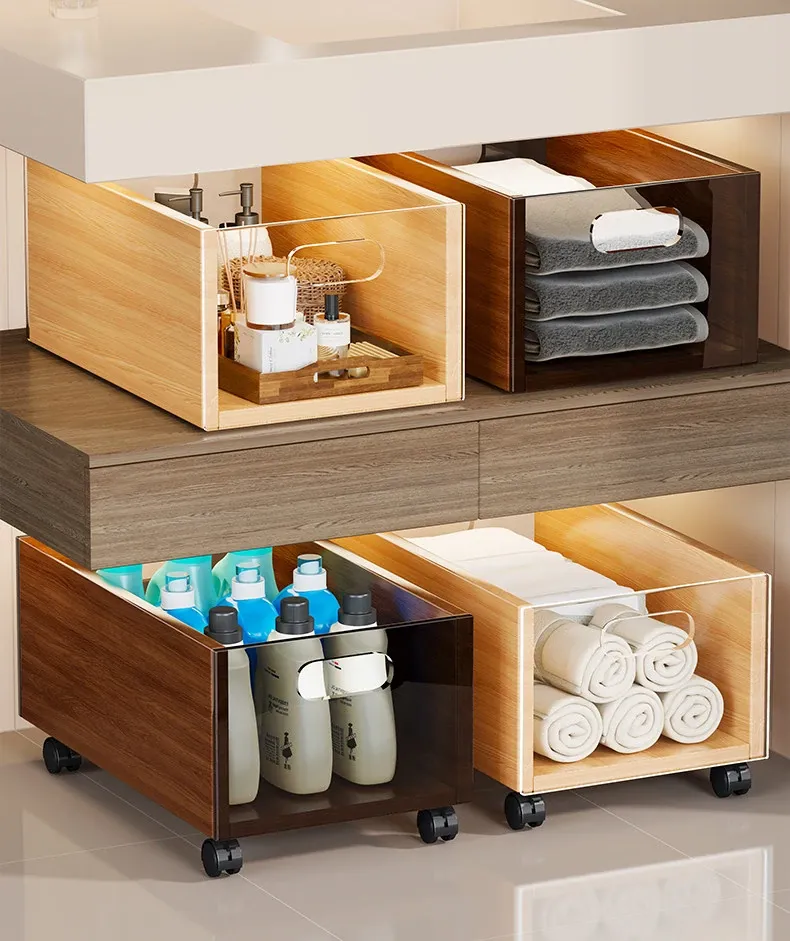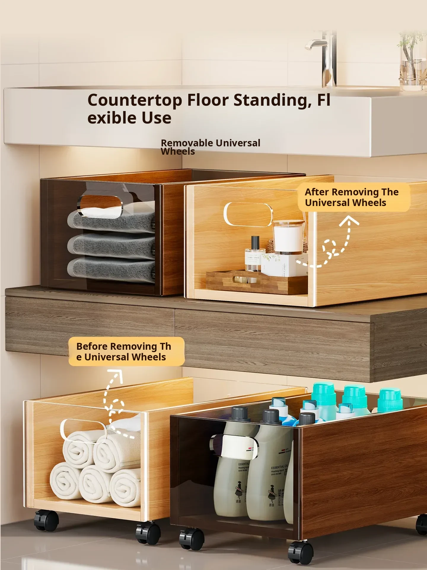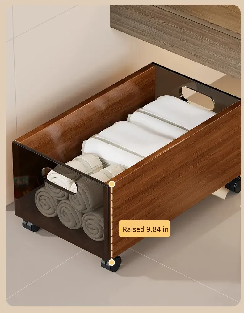 Mobile Laundry Storage Rack with Basket for Dirty Clothes Under Bathroom Vanity - Convenient Organizer for Laundry Detergent and Essentials in Your Bathroom Space