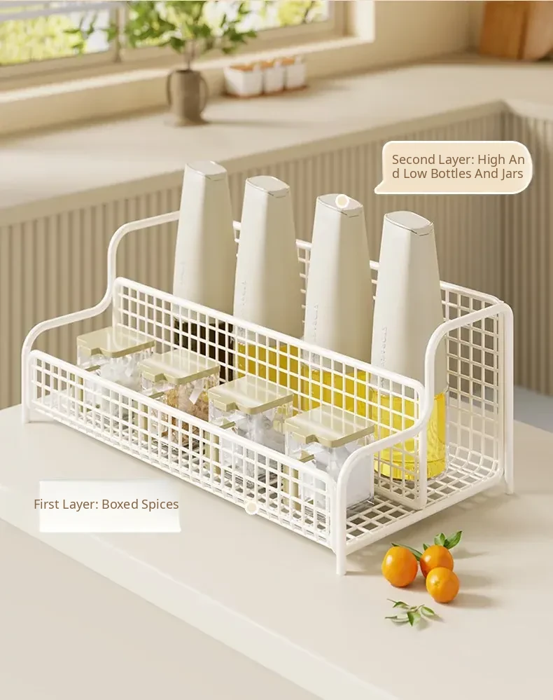 Multi-Functional Compact Kitchen Shelf - Corner Spice Rack for Oil, Vinegar, and Condiments Storage - Organize Your Countertop Effortlessly!
