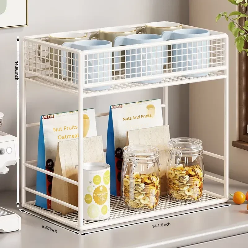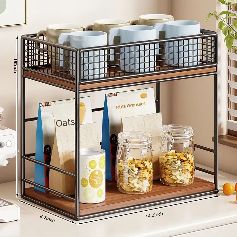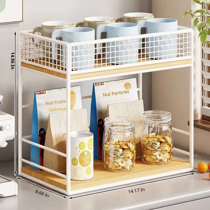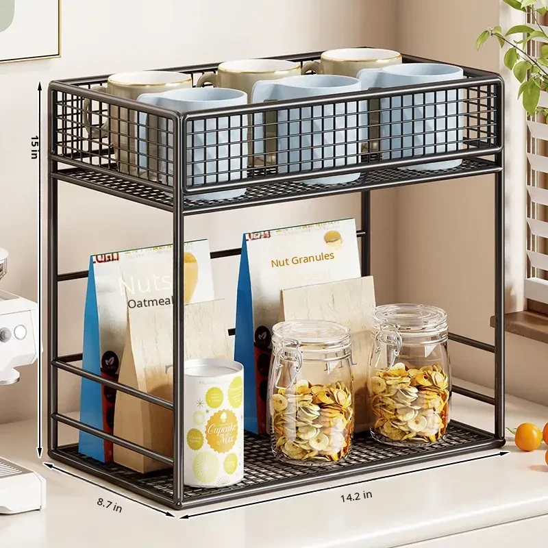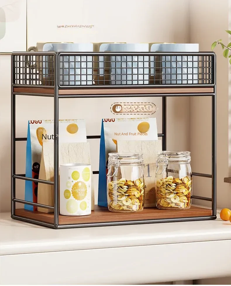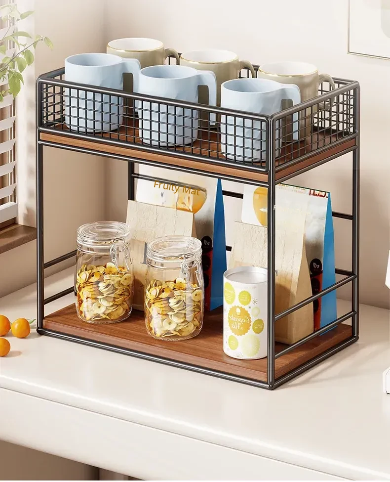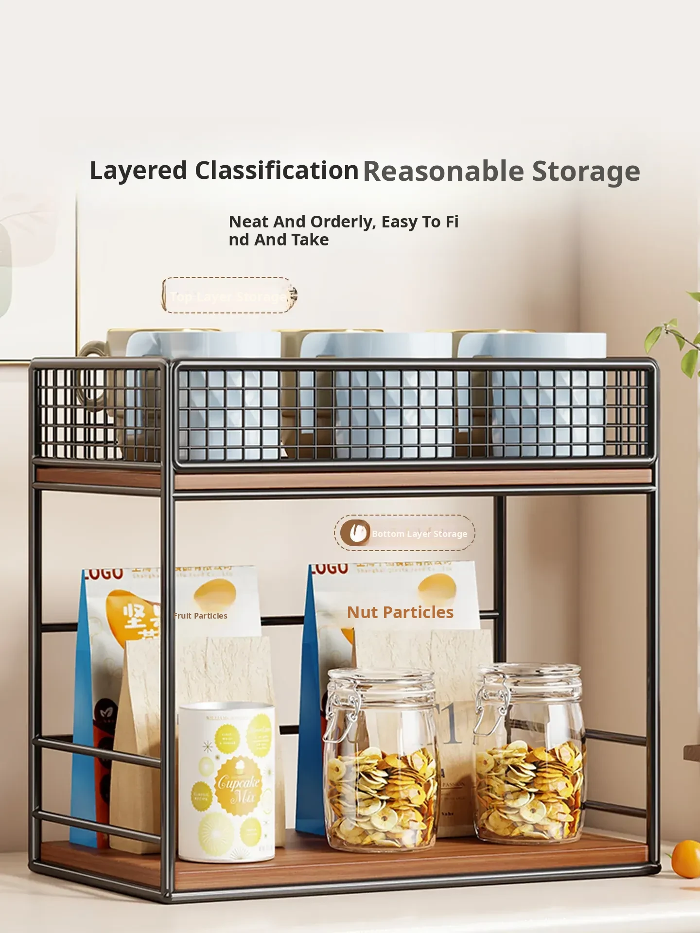 Multifunctional Desktop Organizer Shelf - Tiered Storage Rack for Kitchen Counter, Dining Table, Snack Organizer, Cup Holder, and Tea Bag Storage Box