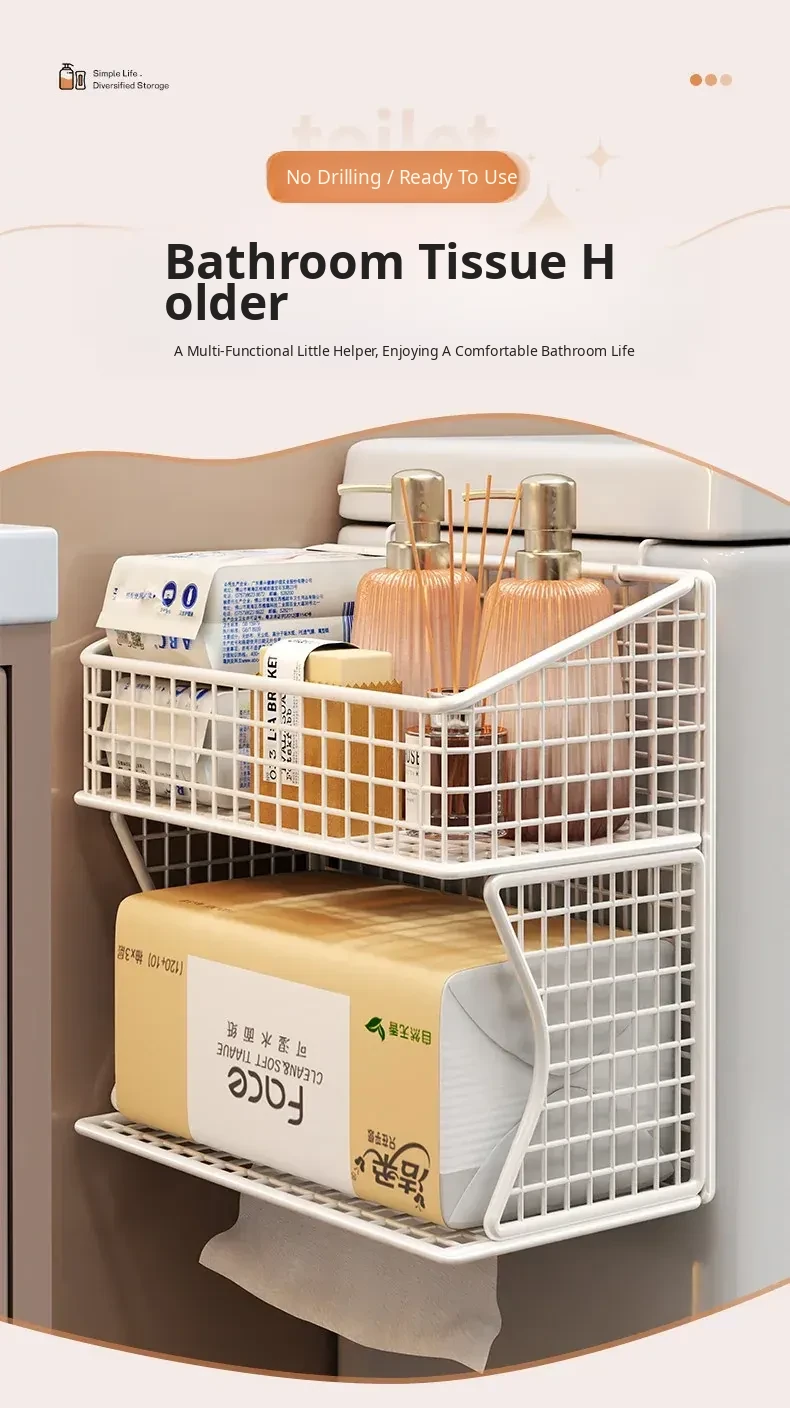 Multifunctional Wall-Mounted Toilet Paper Holder - No Drilling Required, Perfect for Bathrooms and Washrooms, Organize Your Space with Ease!