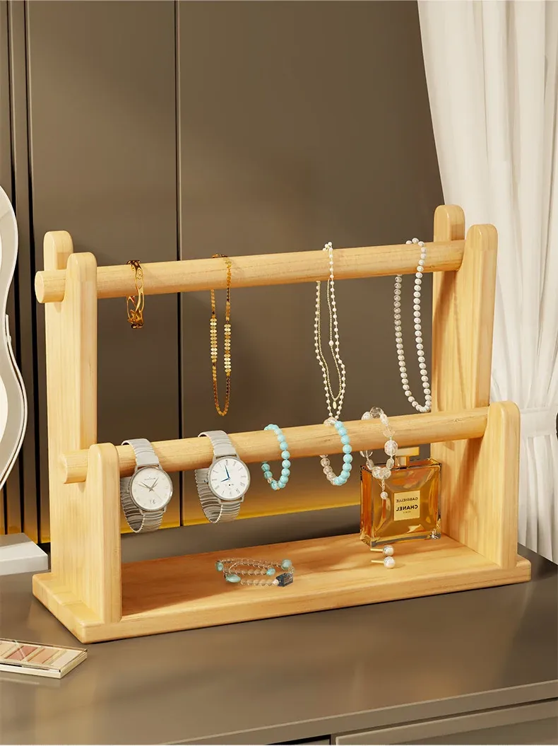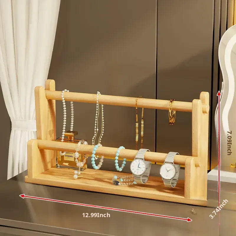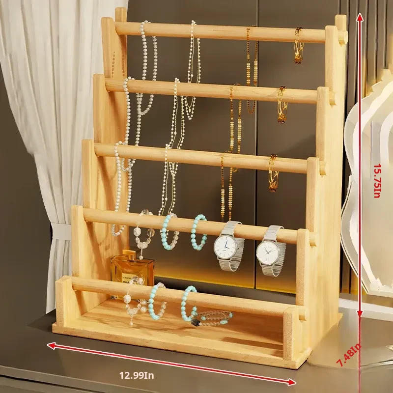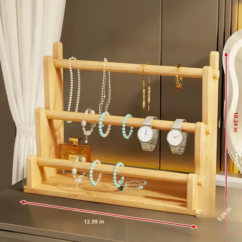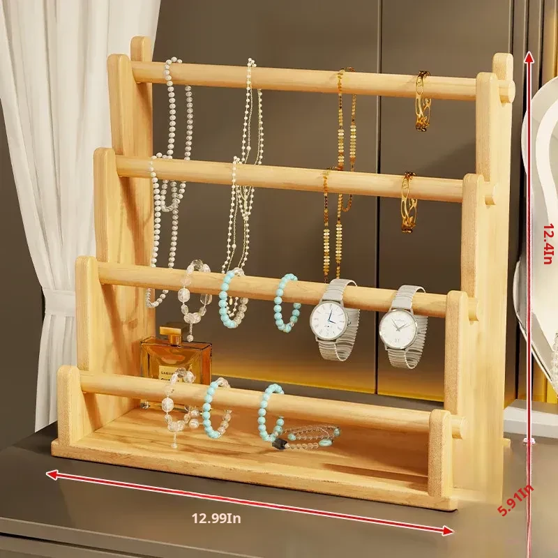 Multifunctional Wooden Jewelry Organizer Stand - Multi-Tiered Storage Rack for Bracelets, Bangles, Watches, and Hair Ties - Perfect for Your Dressing Table!