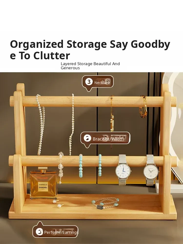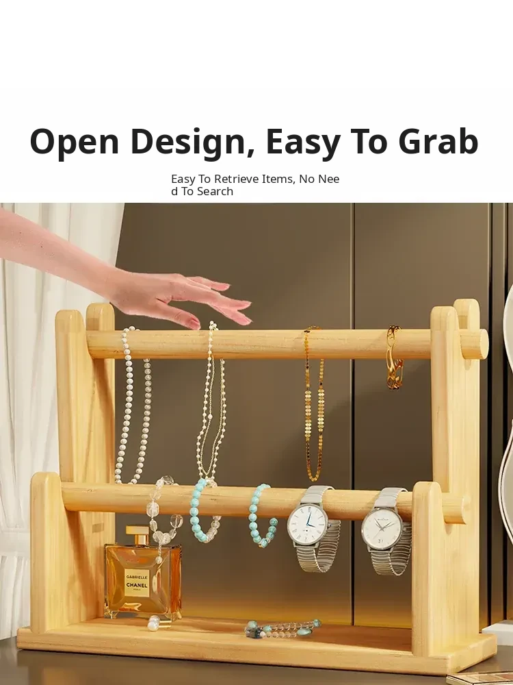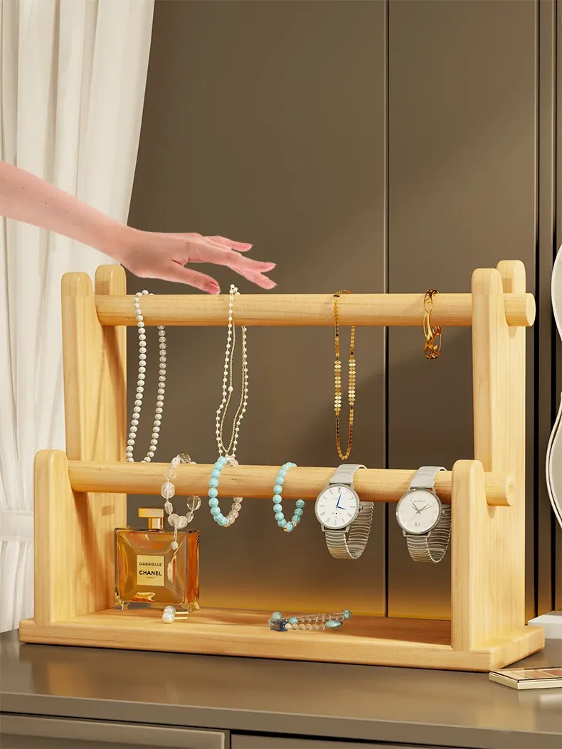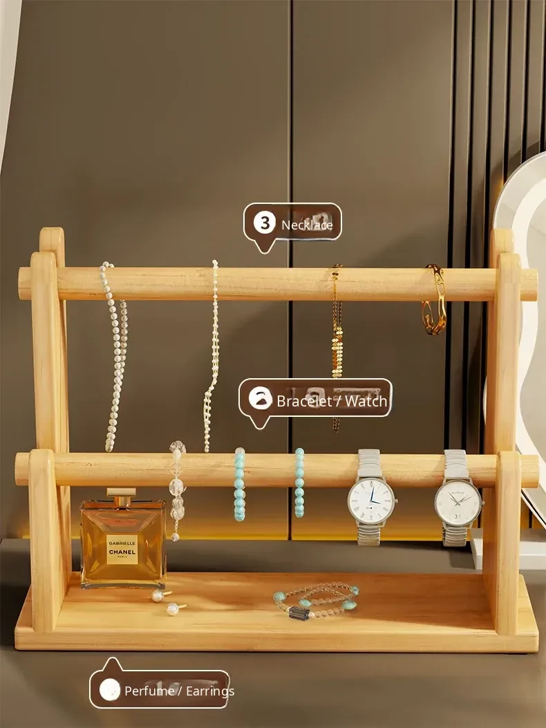 Multifunctional Wooden Jewelry Organizer Stand - Multi-Tiered Storage Rack for Bracelets, Bangles, Watches, and Hair Ties - Perfect for Your Dressing Table!