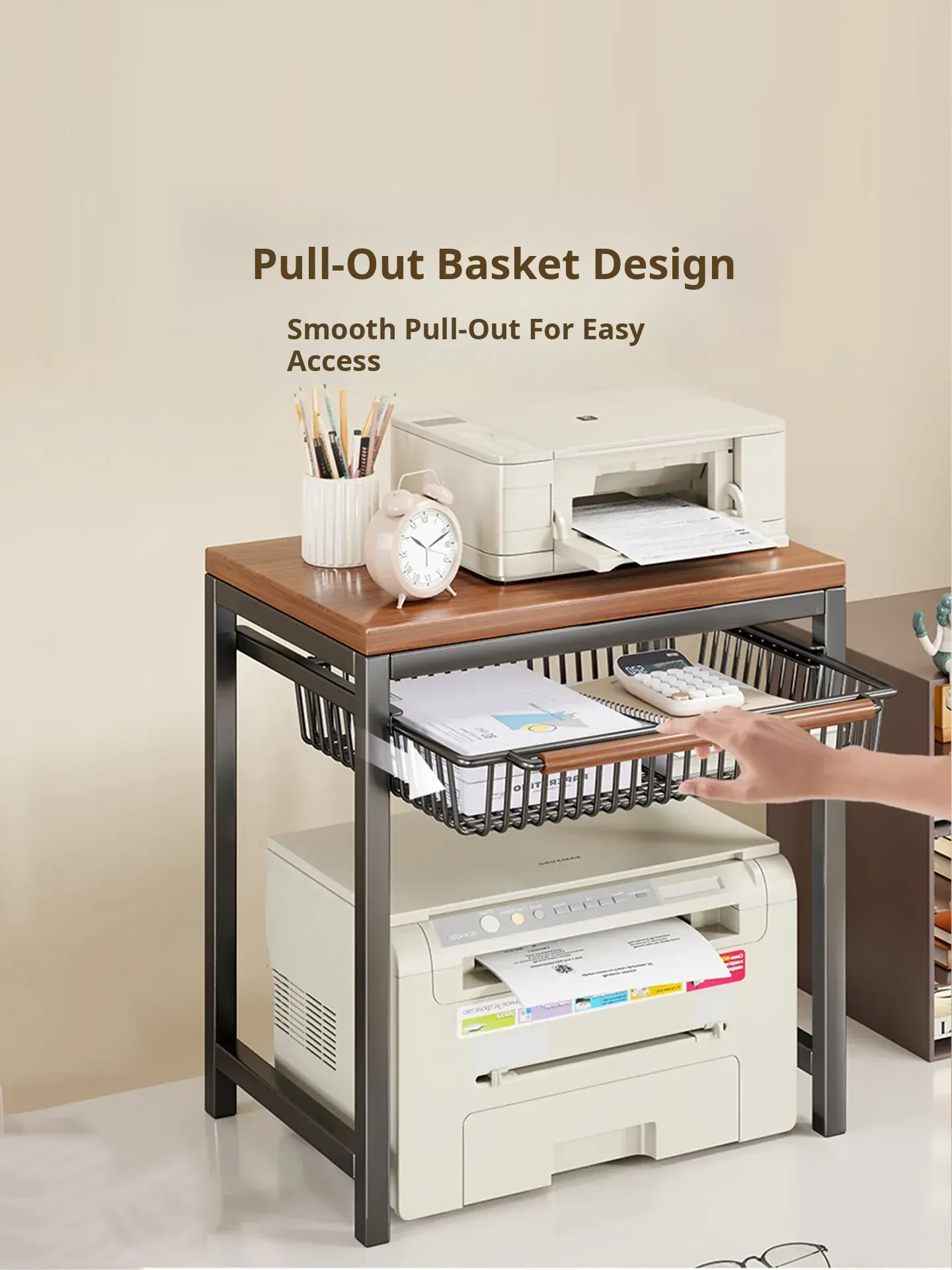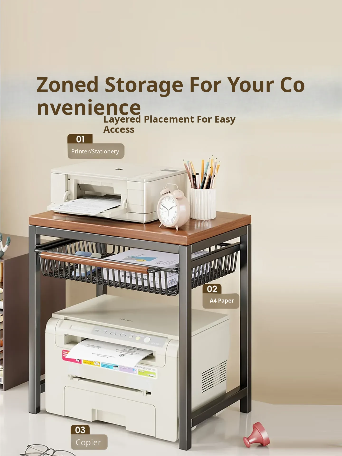 Multi-Layer Desktop Printer Stand - Versatile Storage Rack for Office Desks, Ideal for Home Use and Printer Organization, Space-Saving Design for Copiers and More