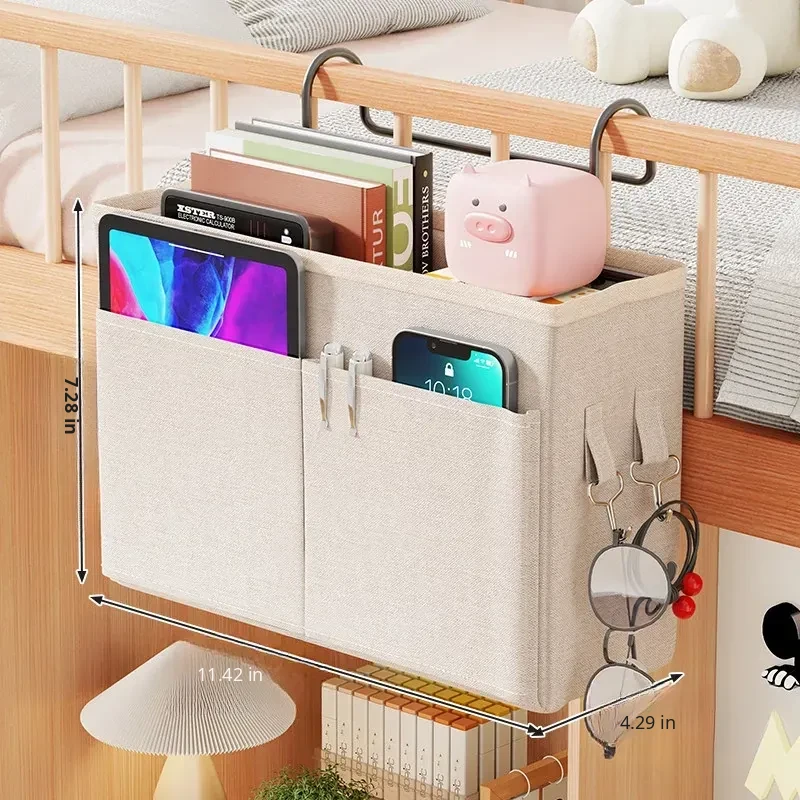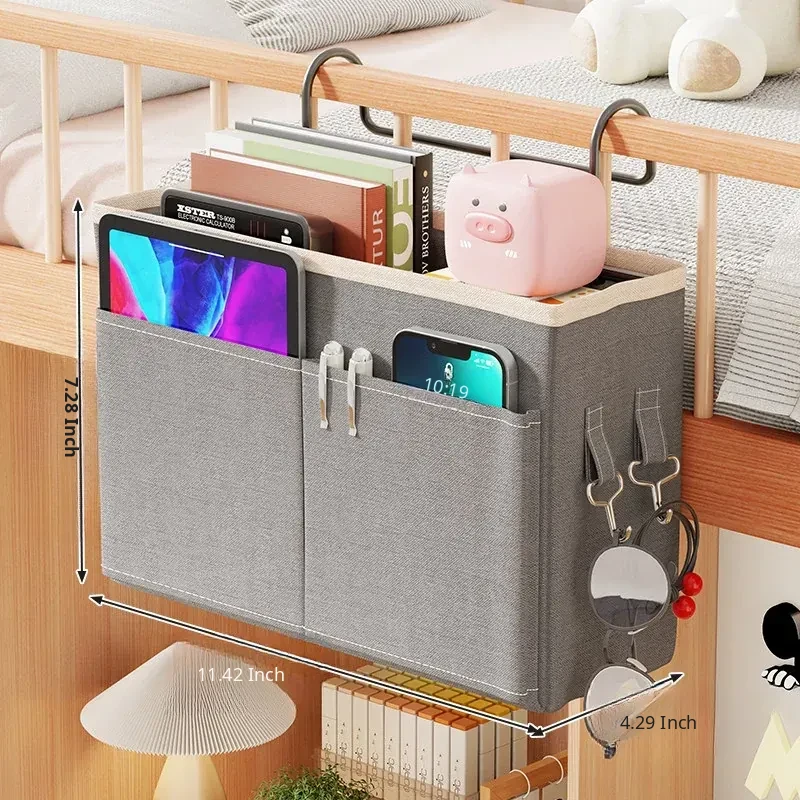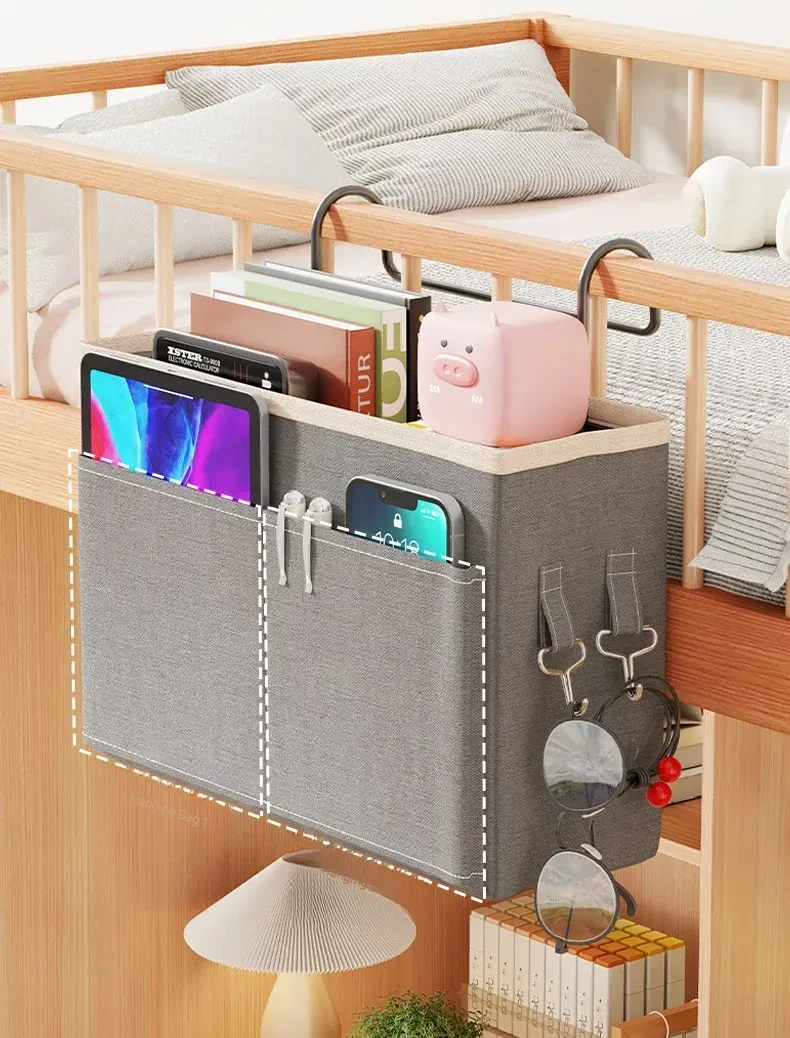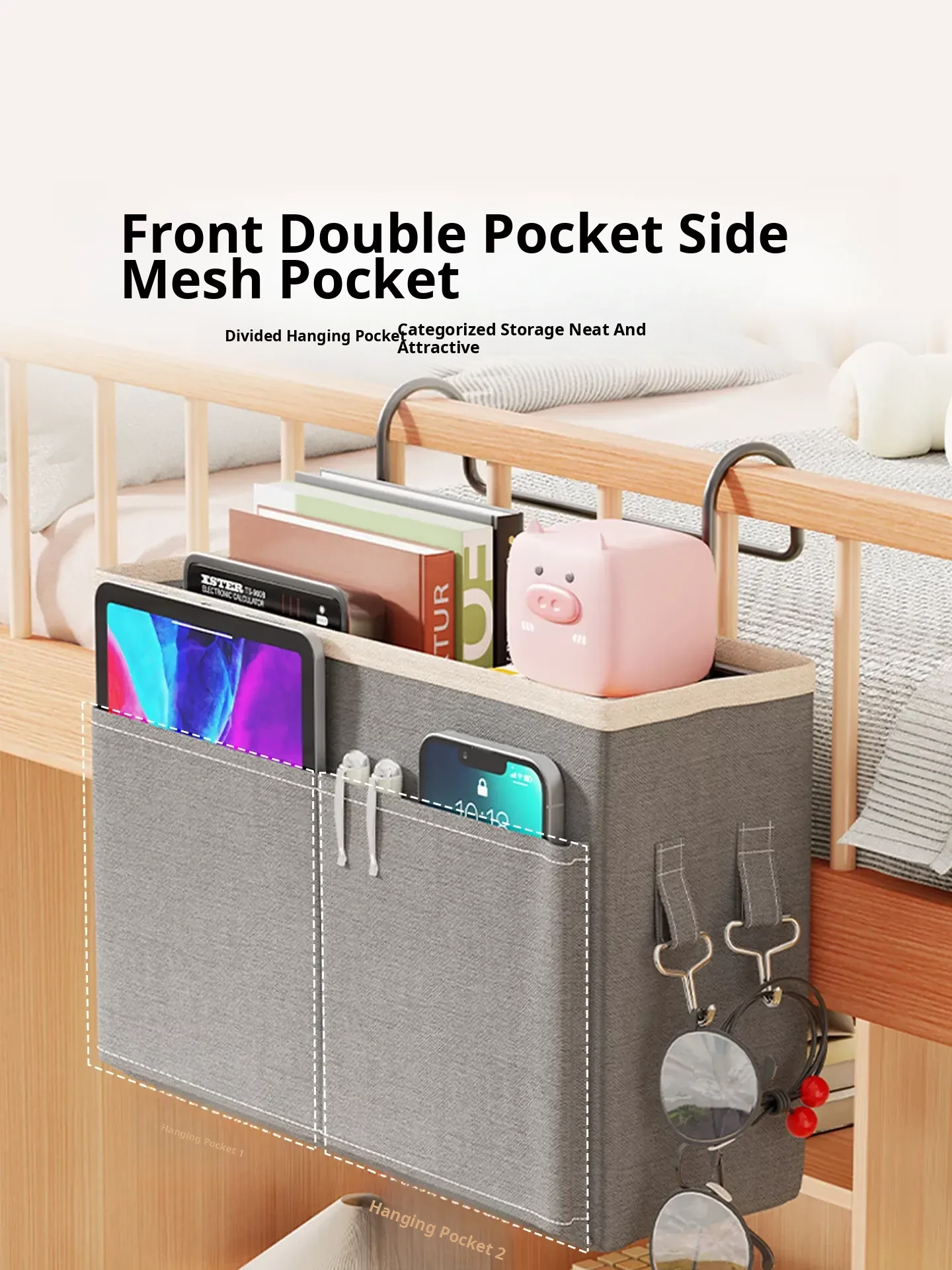 No-Drill Bedside Storage Bag for Dormitory - Hanging Fabric Organizer with Dividers for Loft Beds - Convenient and Space-Saving Solution for Your Room