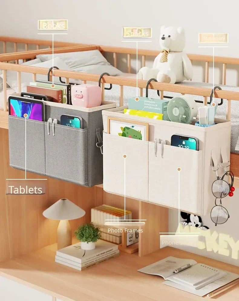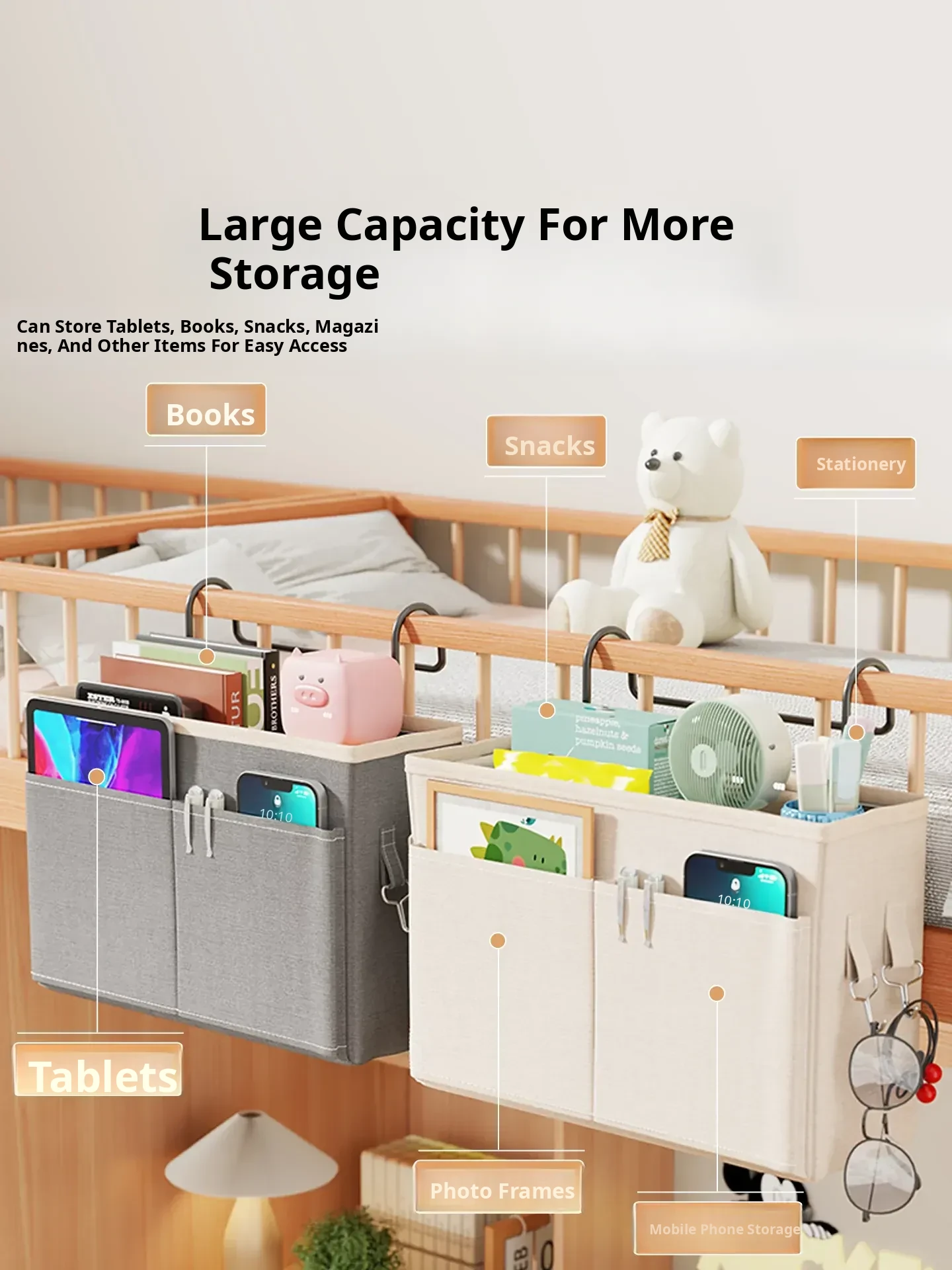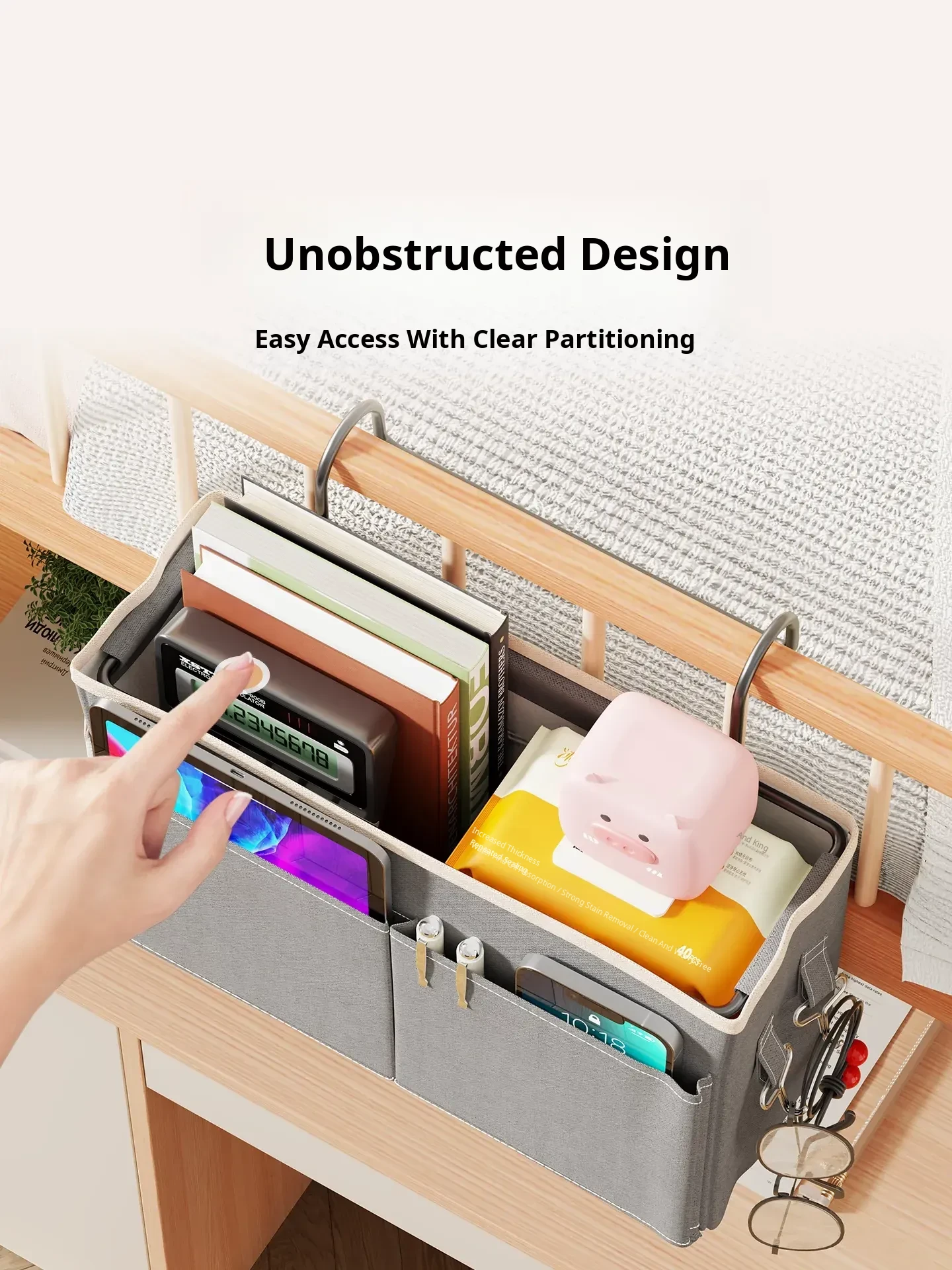 No-Drill Bedside Storage Bag for Dormitory - Hanging Fabric Organizer with Dividers for Loft Beds - Convenient and Space-Saving Solution for Your Room