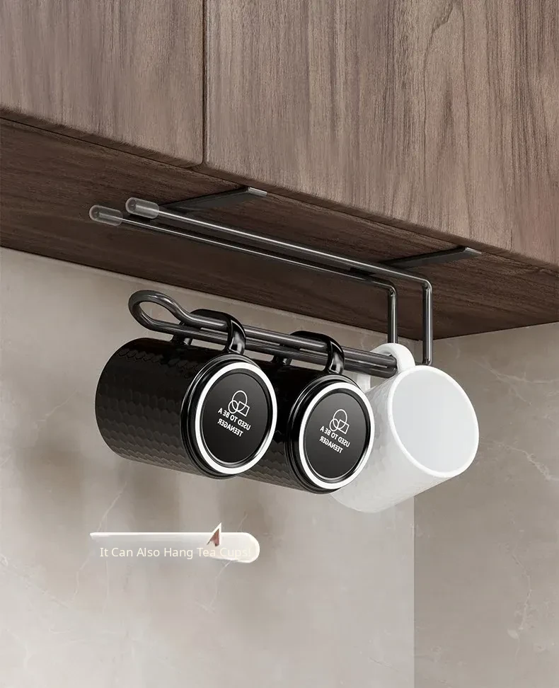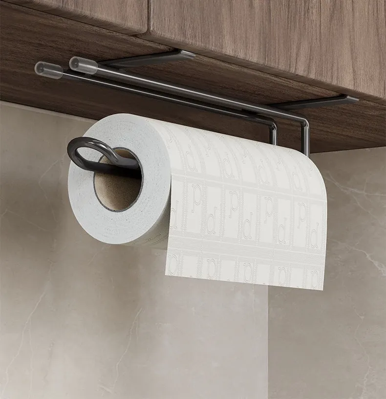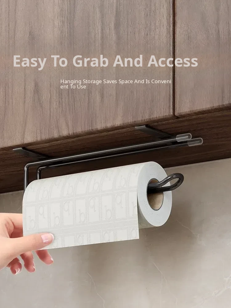 No-Drill Kitchen Paper Towel Holder - Versatile Hanging Rack for Cabinets, Ideal for Paper Rolls, Cling Film, and Lazy Cloth Storage Solutions. Perfect for a Clutter-Free Kitchen!