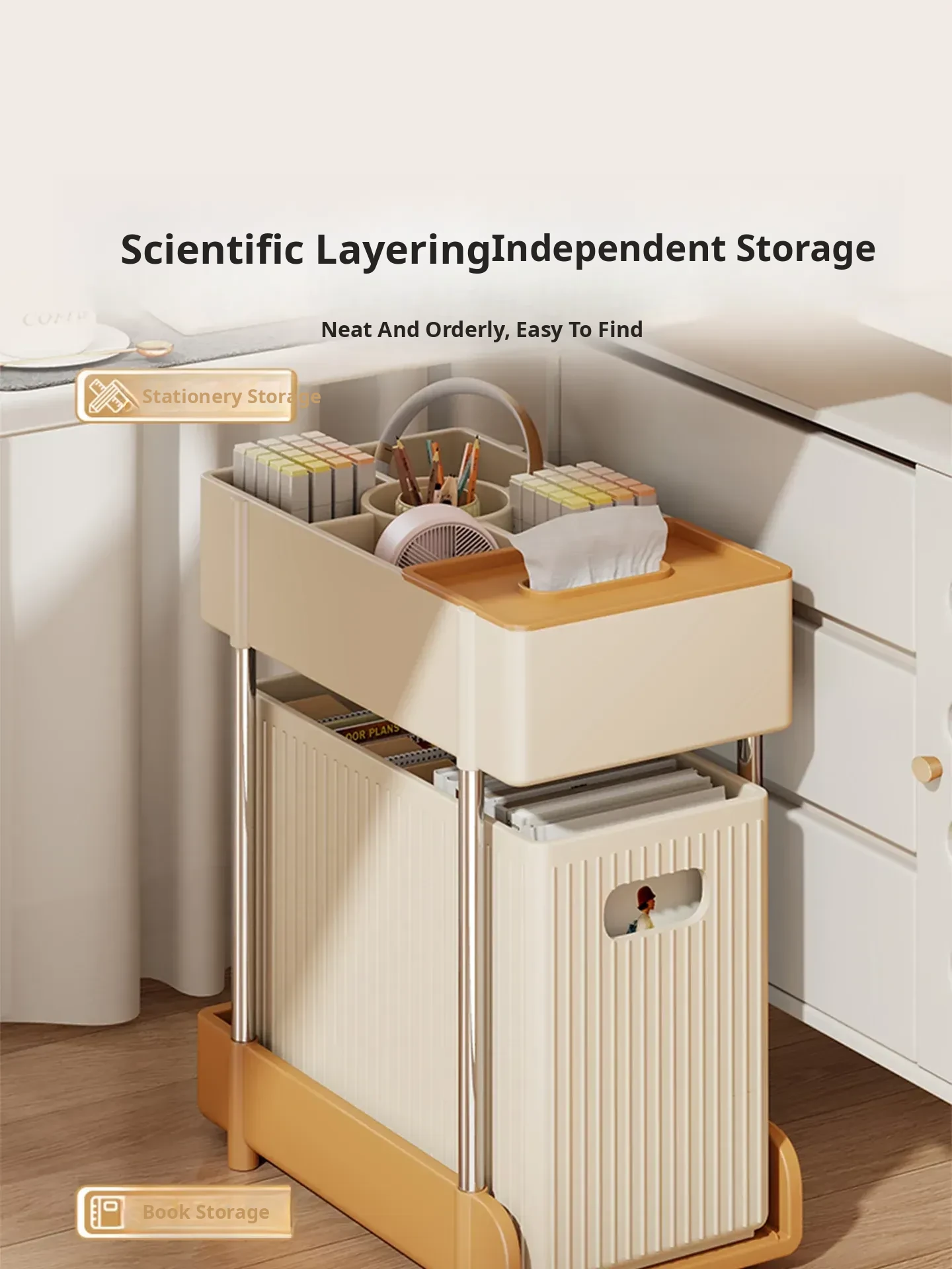 Portable Under-Desk Storage Cart with Drawers - Multi-Layer Organizer for Files, Tea, and Home Essentials - Ideal Space-Saving Solution for Your Office or Home