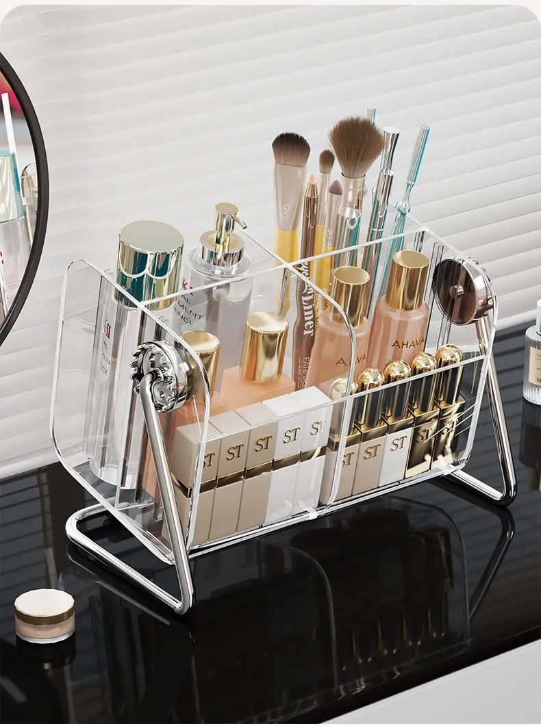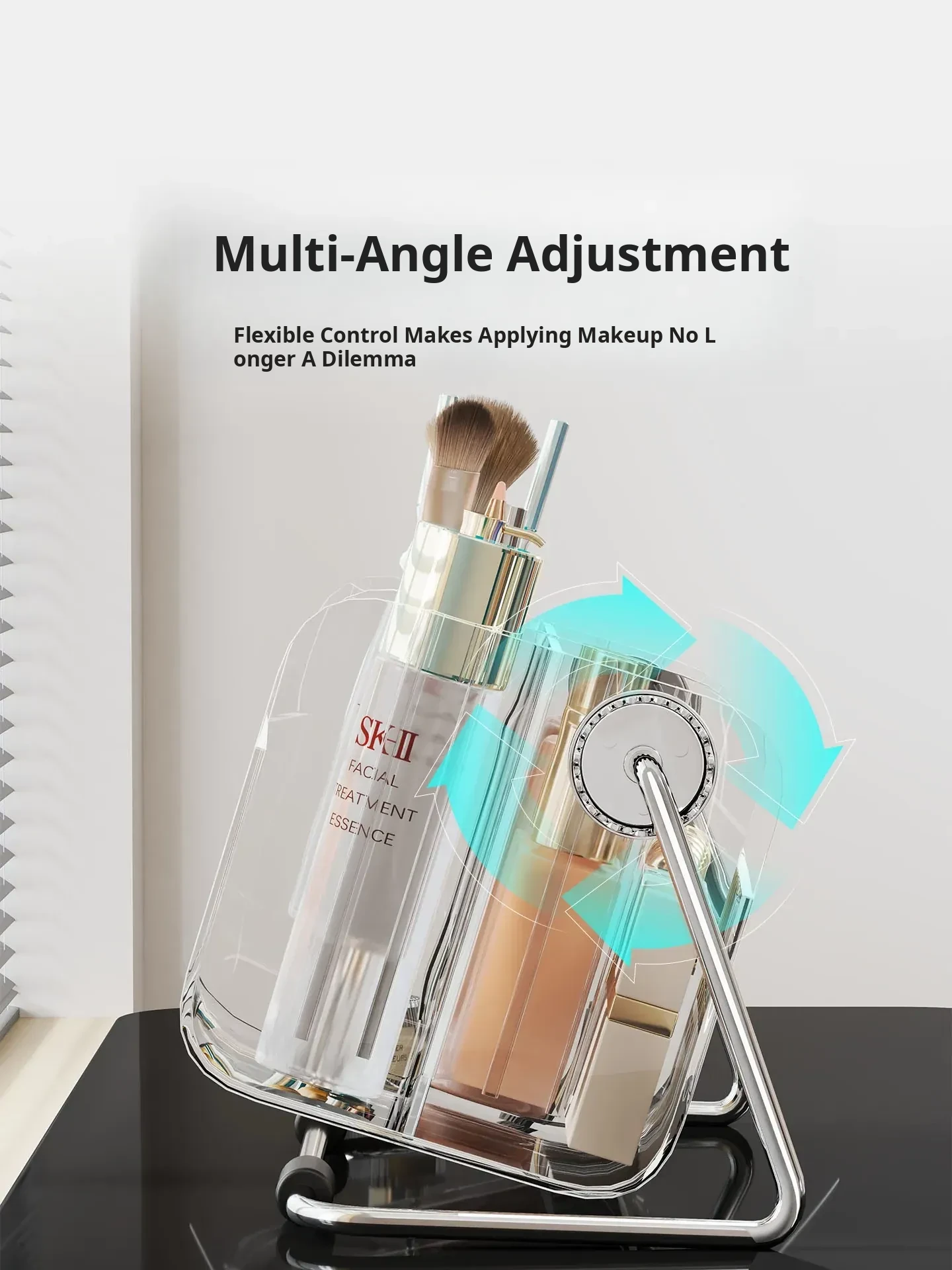 Rotating Makeup Organizer Box - Dustproof Puff and Beauty Sponge Storage, Multi-Layer Transparent Rack, Large Capacity Organizer for Your Desktop Essentials
