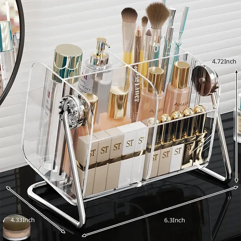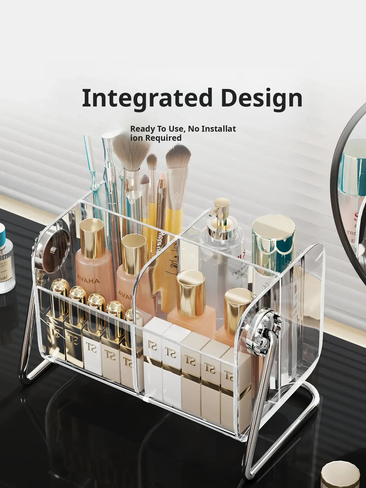 Rotating Makeup Organizer - Large Capacity Brush Holder with Dividers for Desktop, Perfect for Lipstick, Lip Gloss, and Eyeliner Storage - Keep Your Vanity Tidy and Stylish!