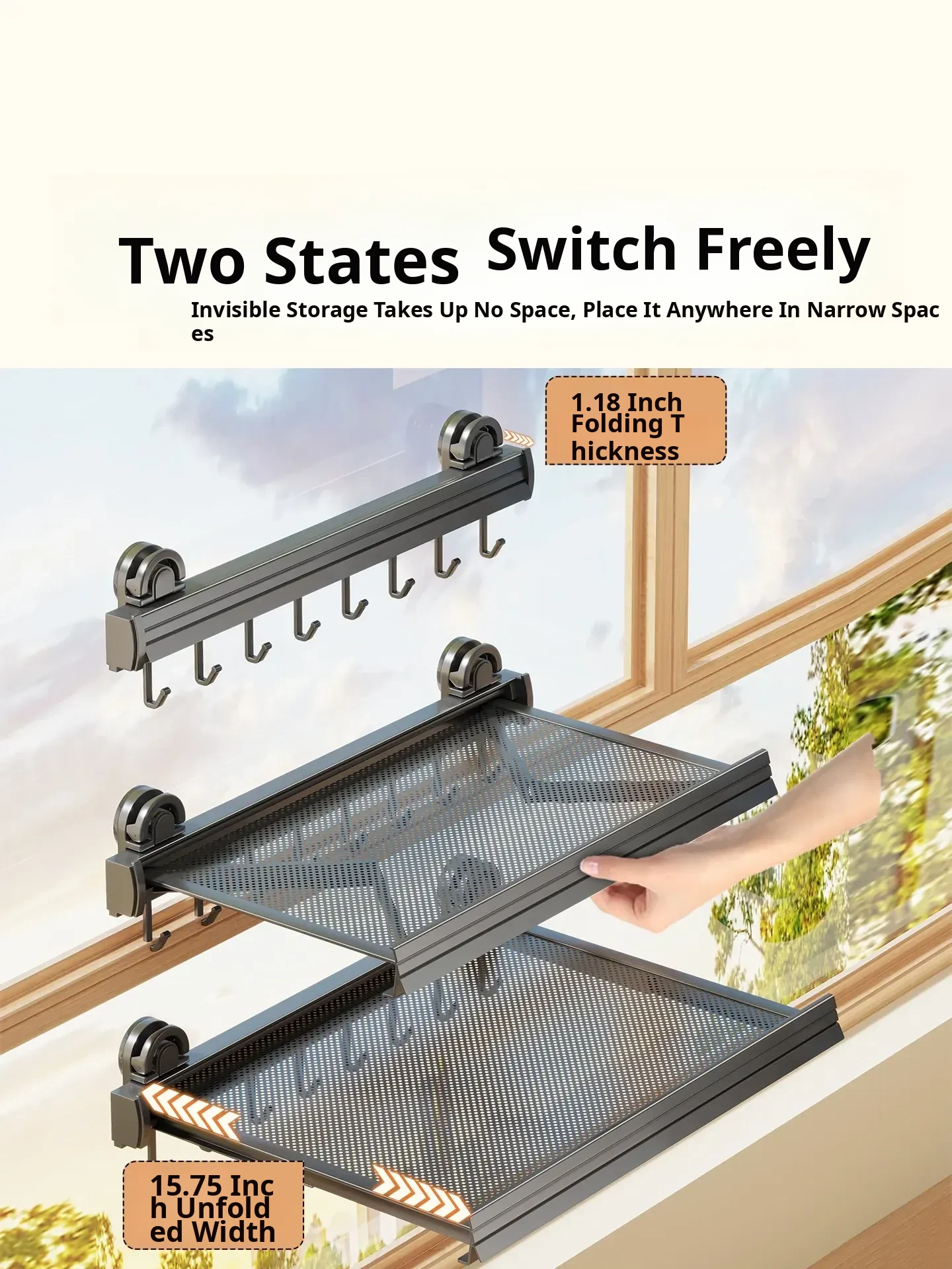 Gun Gray [Foldable and Installed in Seconds] 23.62in Comes with 8 Hooks