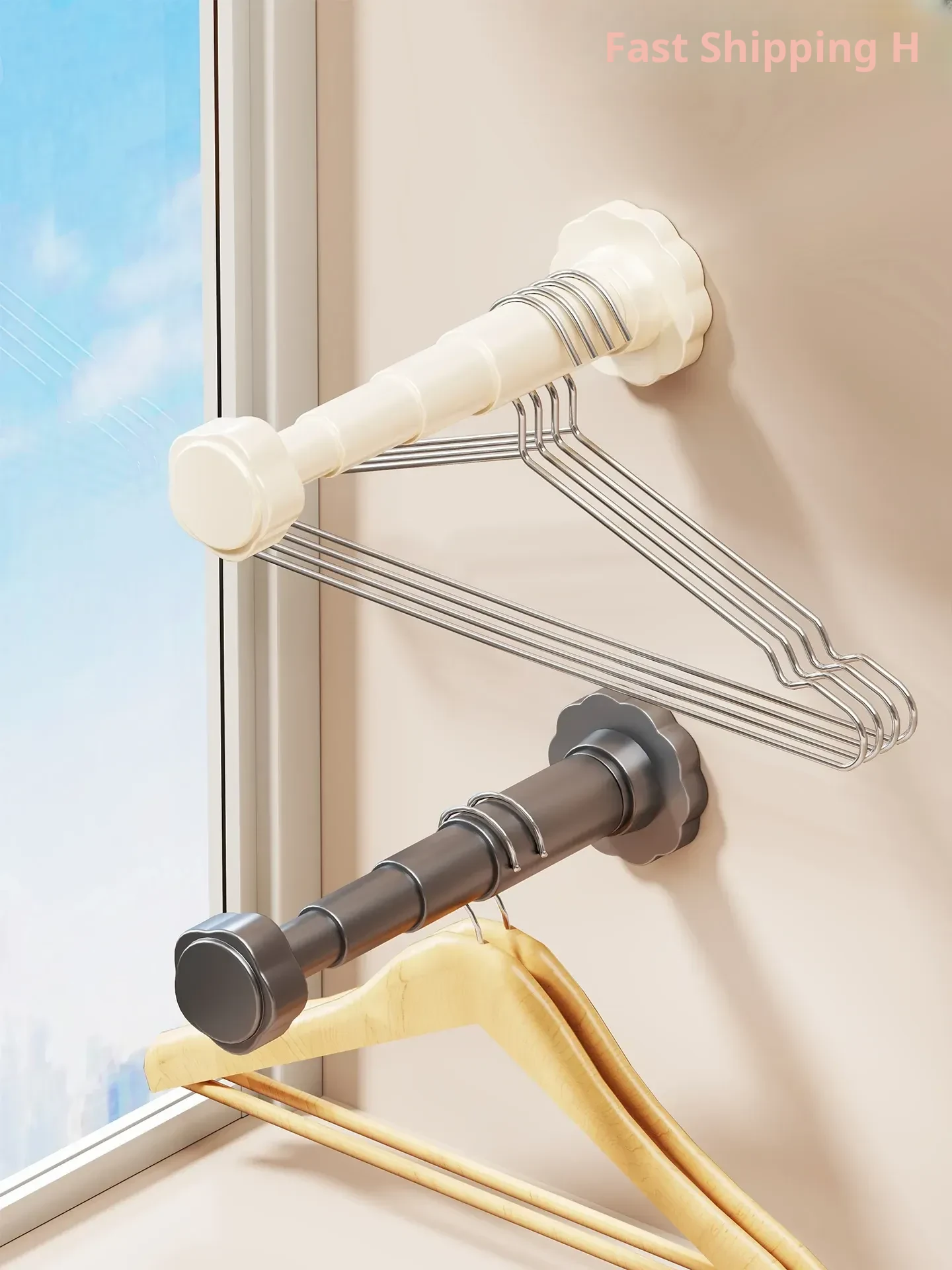 Suction Cup Storage Clothes Rack - Retractable Drying Rod for Home Use, No Drilling Required, Wall-Mounted Organizer for Balcony and Bathroom