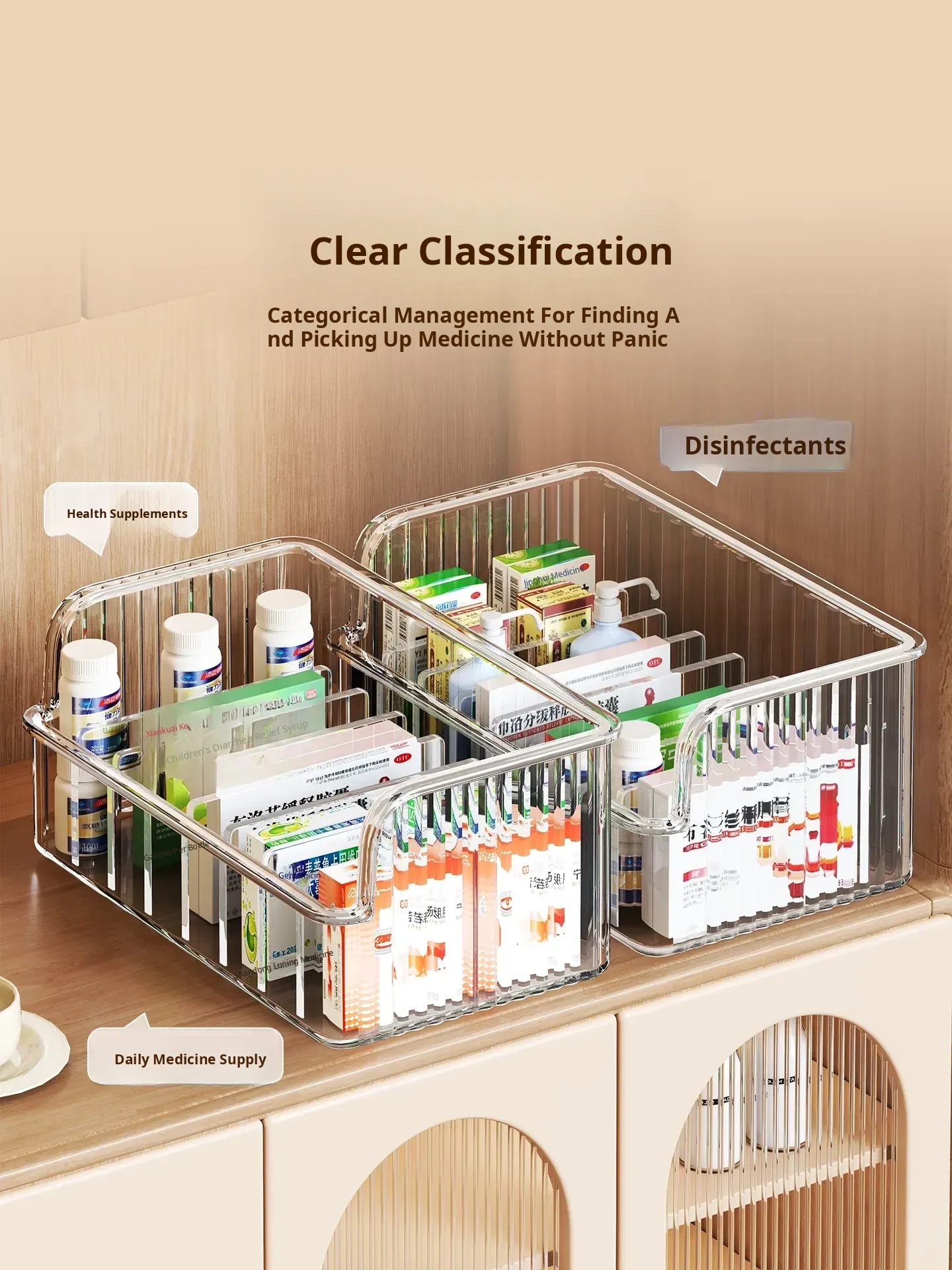 Transparent Medicine Storage Box for Home - Divided Organizer for First Aid, Health Products, and Medications - Perfect for Cabinets and Easy Access