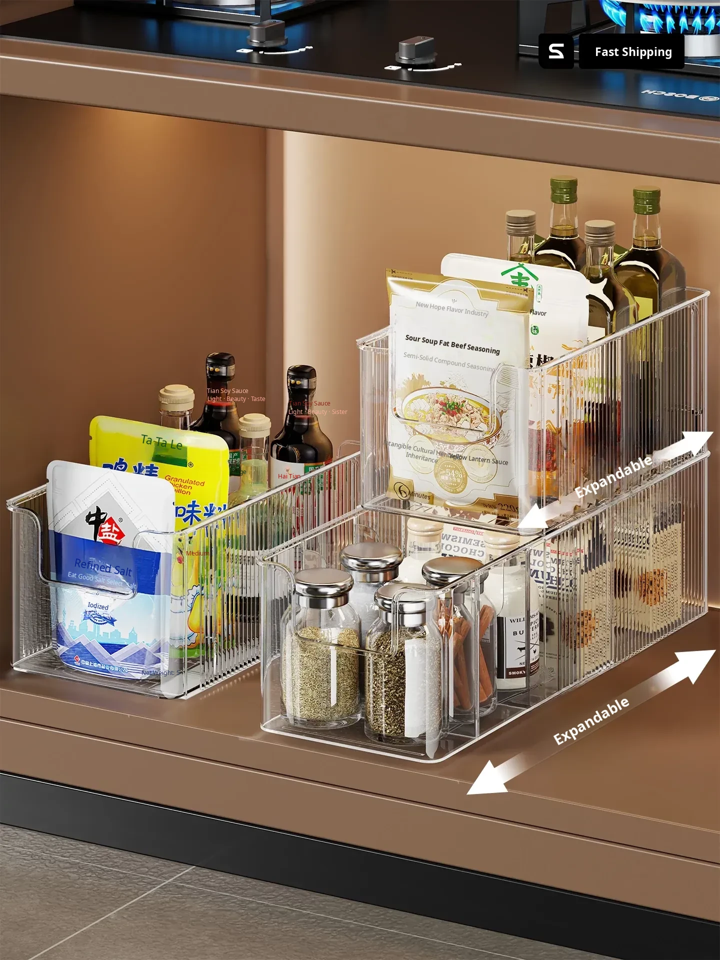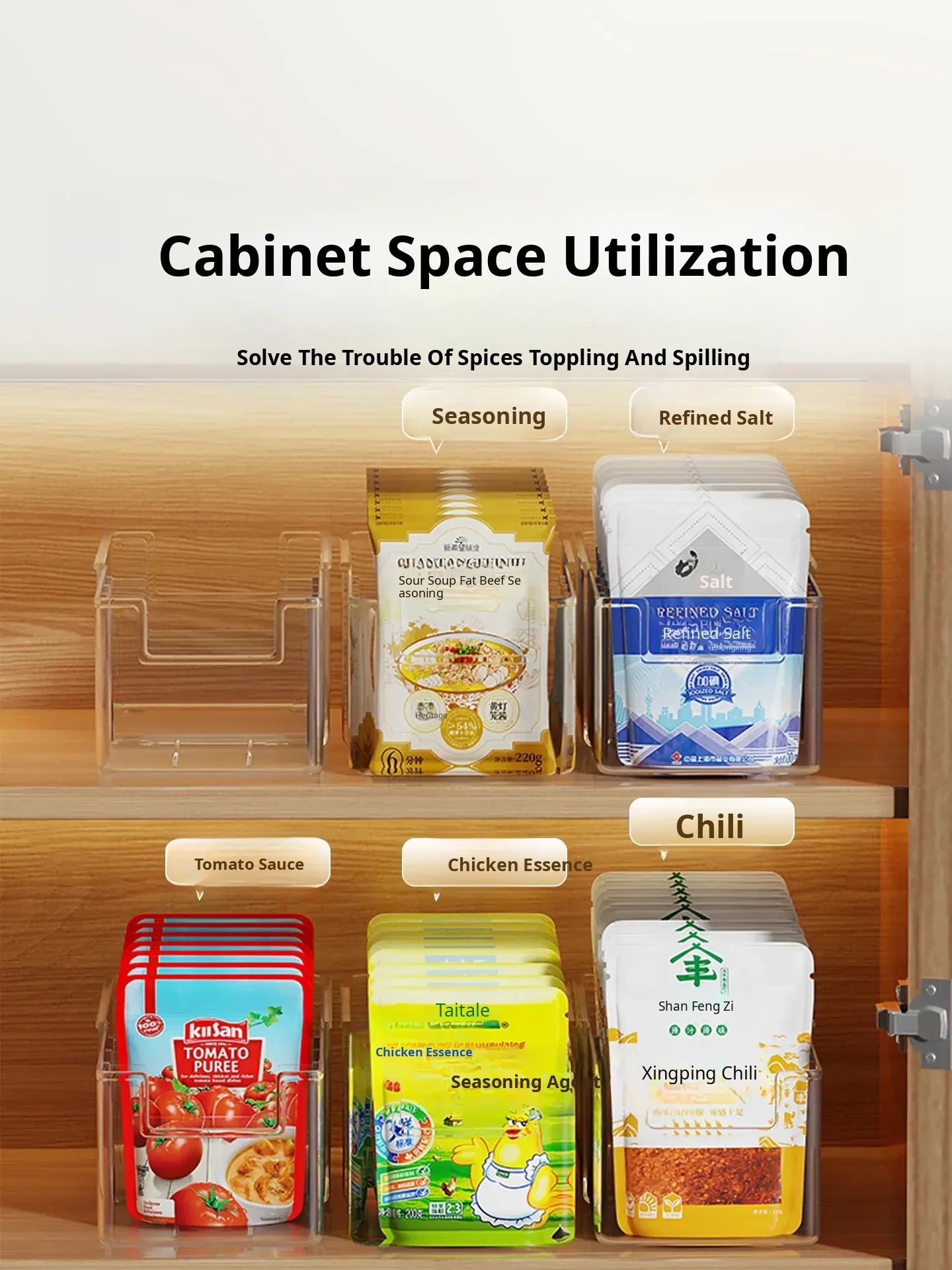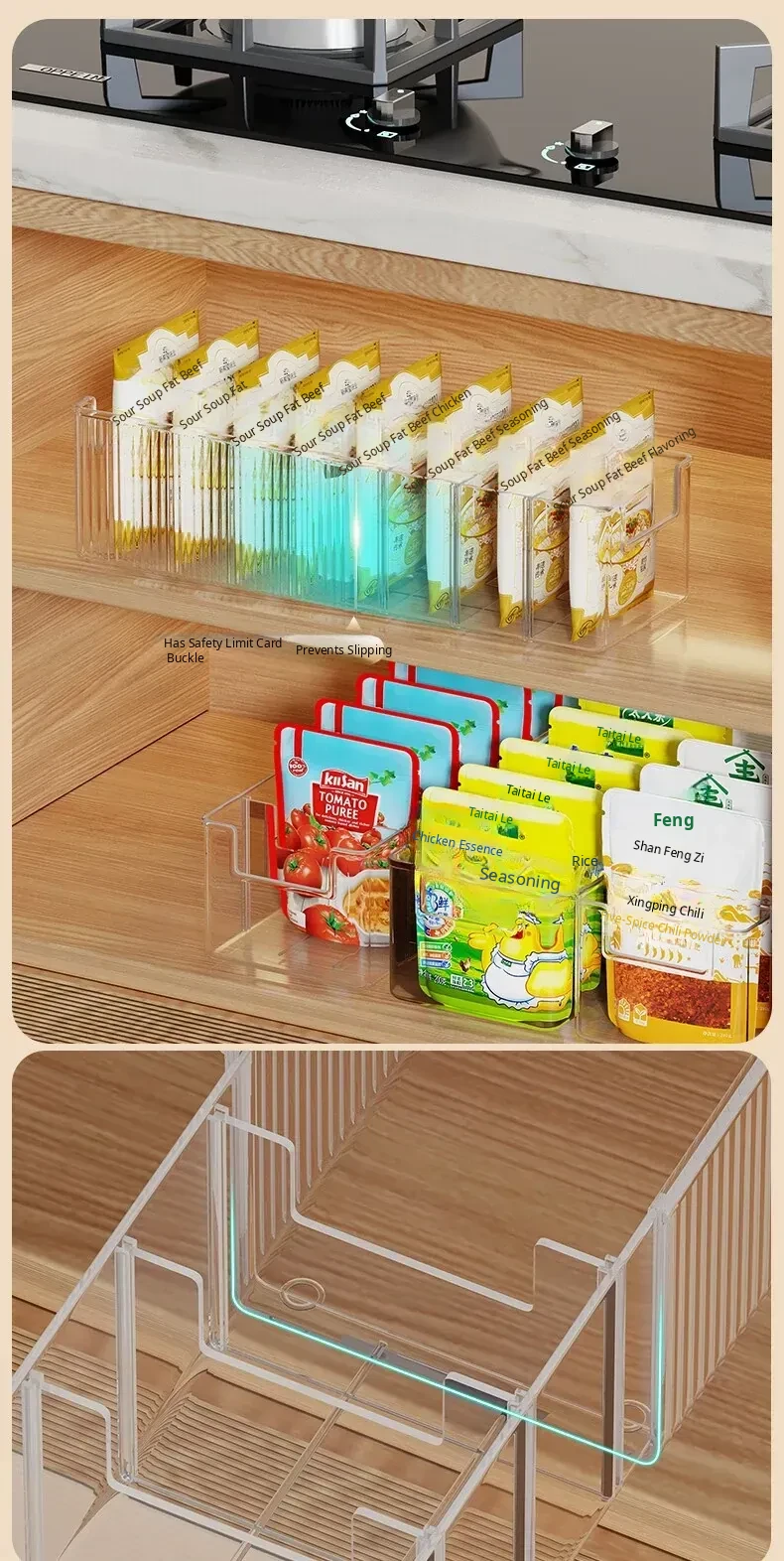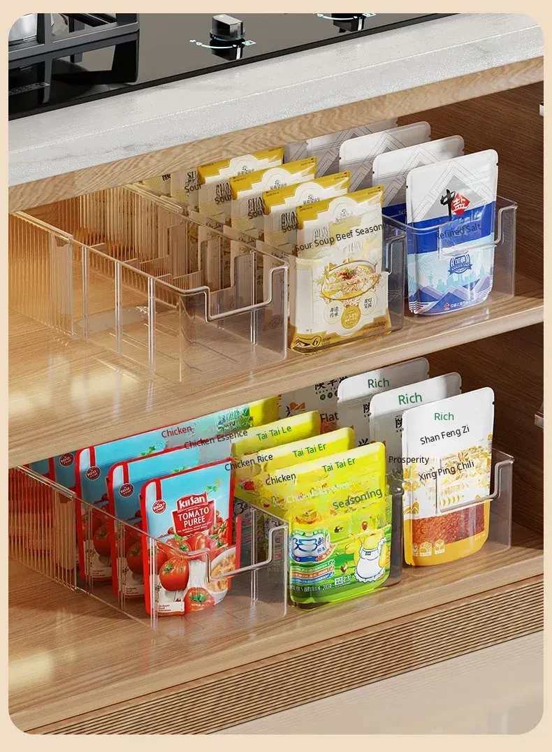 Transparent Spice Organizer Box for Kitchen - Adjustable Seasoning Rack for Soy Sauce, MSG, and Spices with Divided Compartments - Keep Your Ingredients Neat and Accessible!