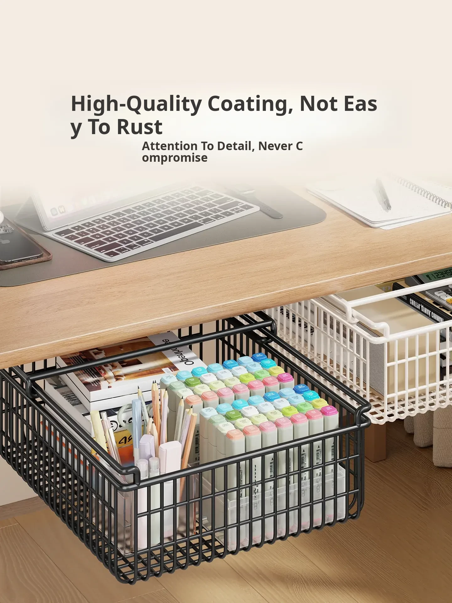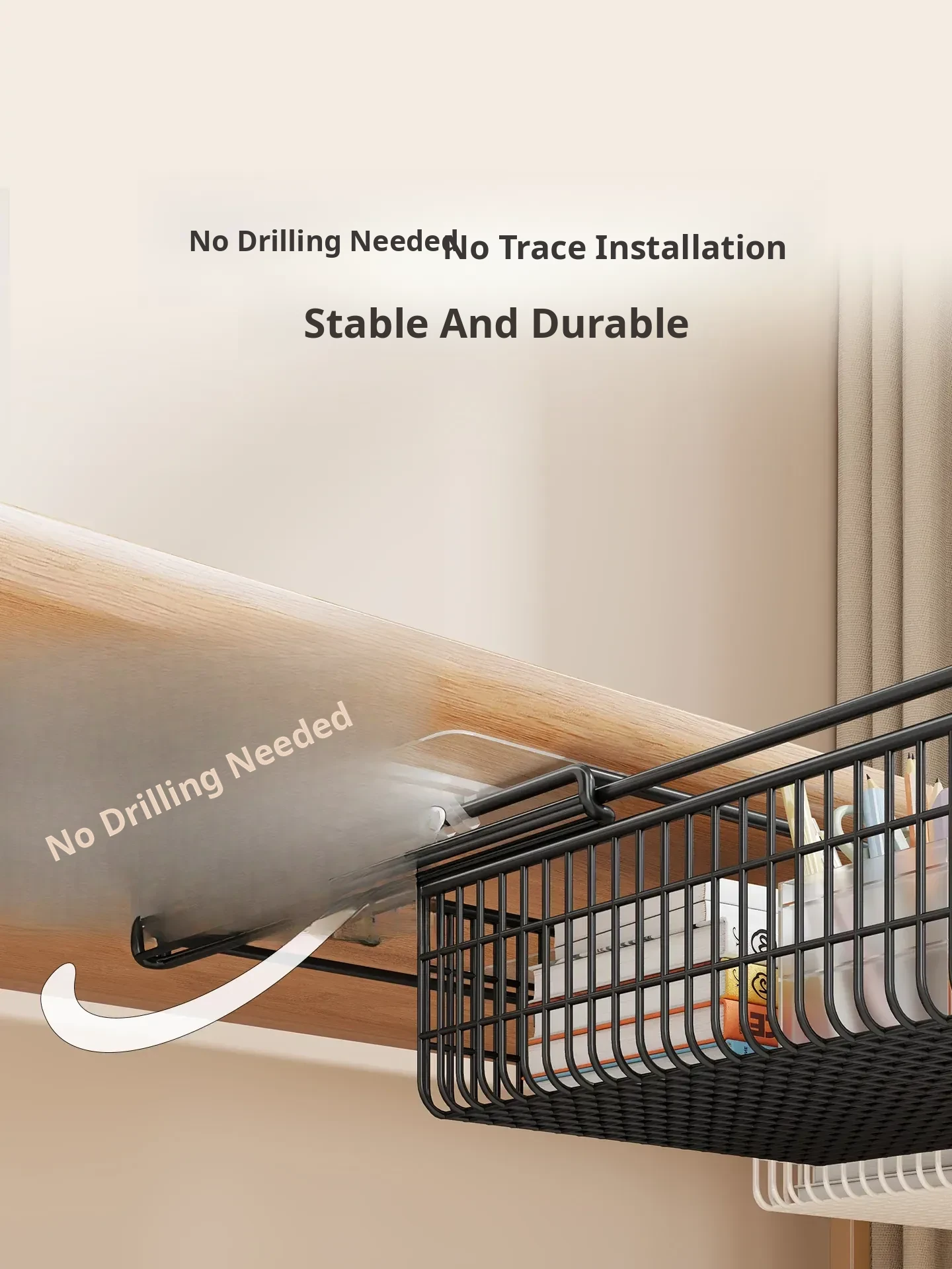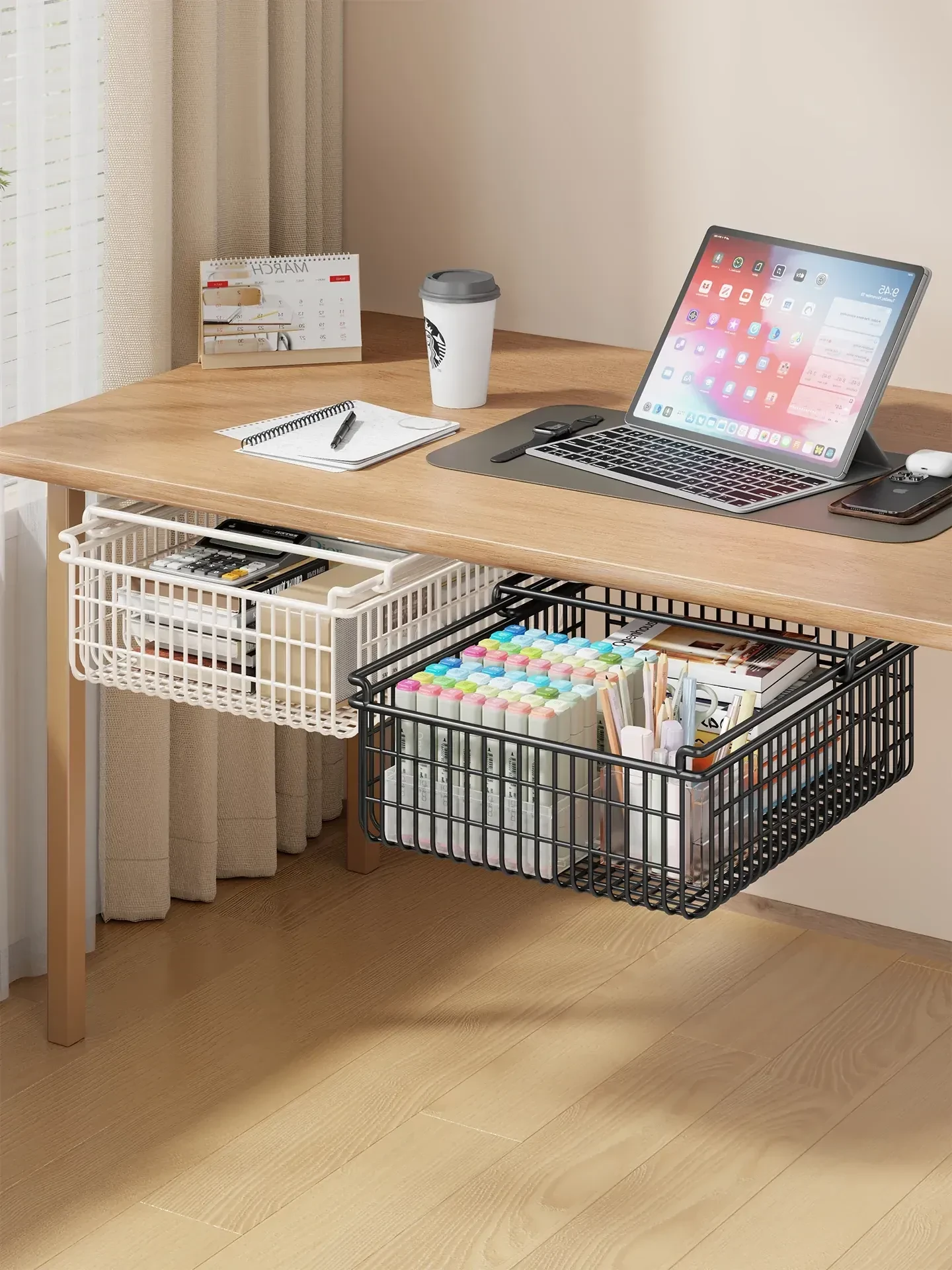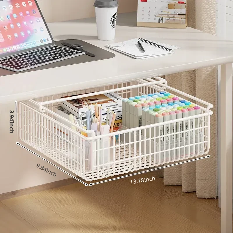 Under-Desk Pull-Out Storage Rack for Office Workspace - Ideal for Organizing Documents, Files, and Stationery in Dorm Rooms and Study Areas. Perfect for Maximizing Space and Keeping Your Essentials Within Reach!
