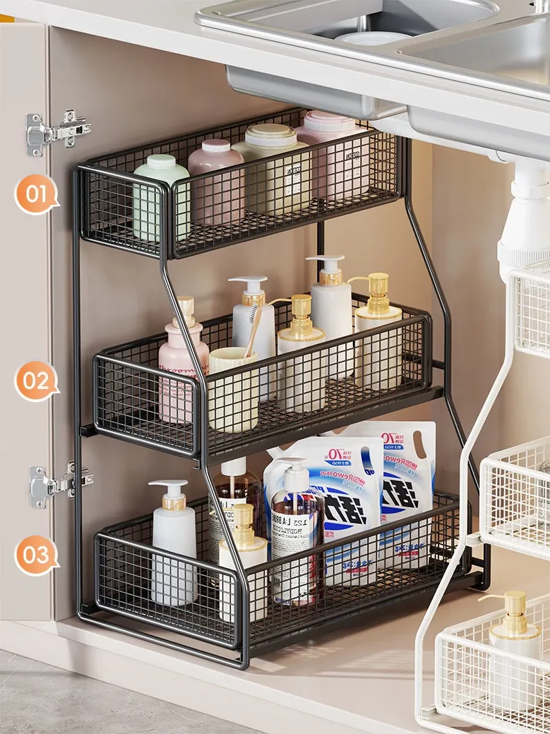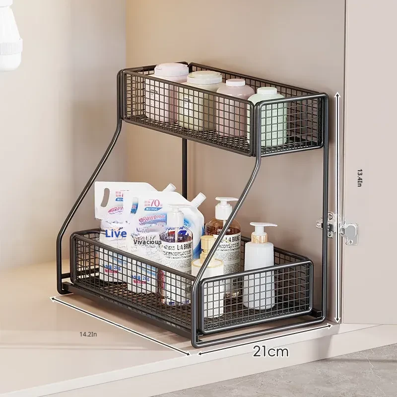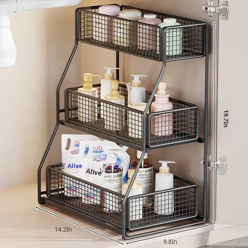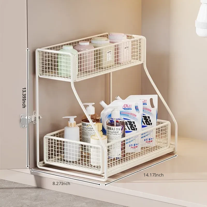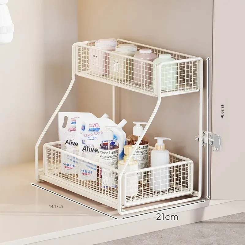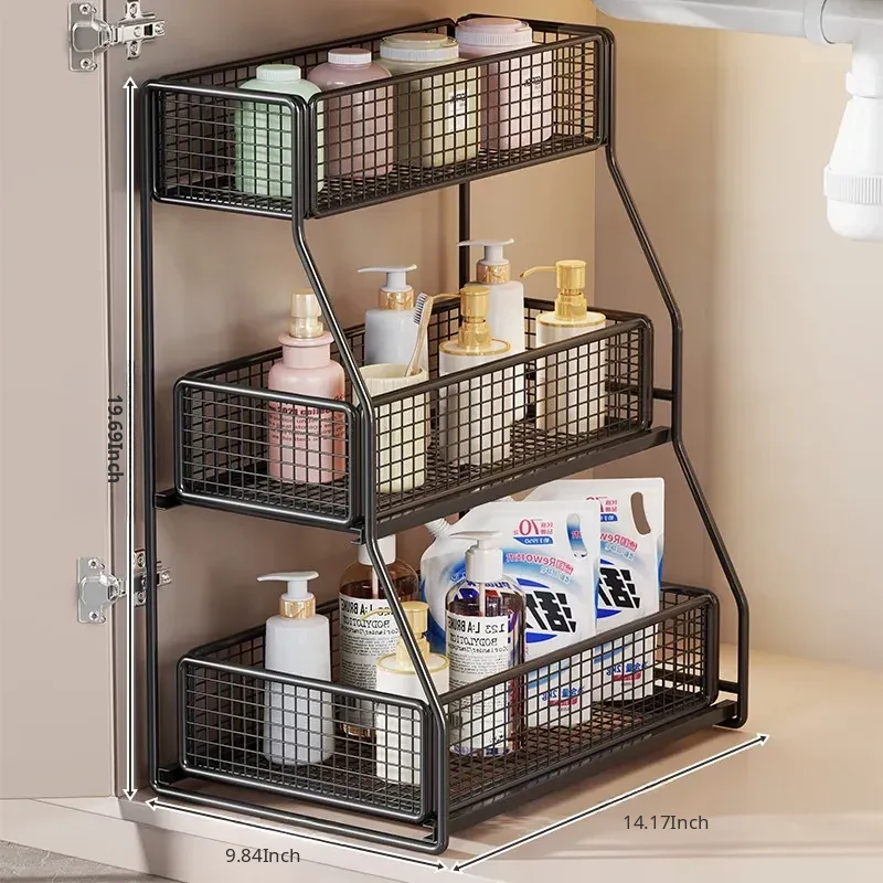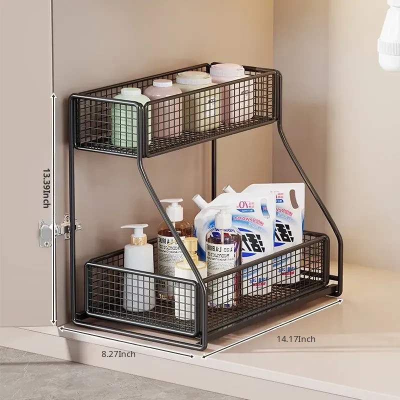Under-Sink Storage Rack - Pull-Out Tiered Organizer for Bathroom Vanity, Cabinet Storage Box & Basket, Ideal for Efficient Space Management and Easy Access to Essentials
