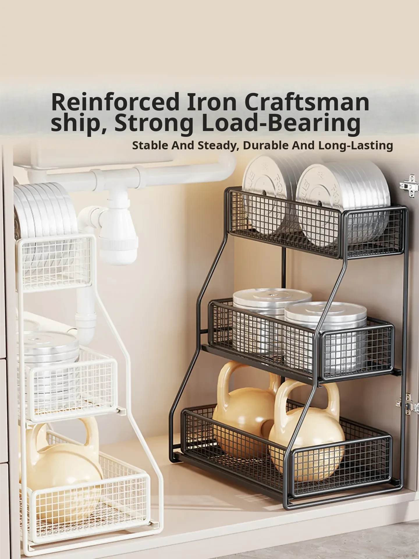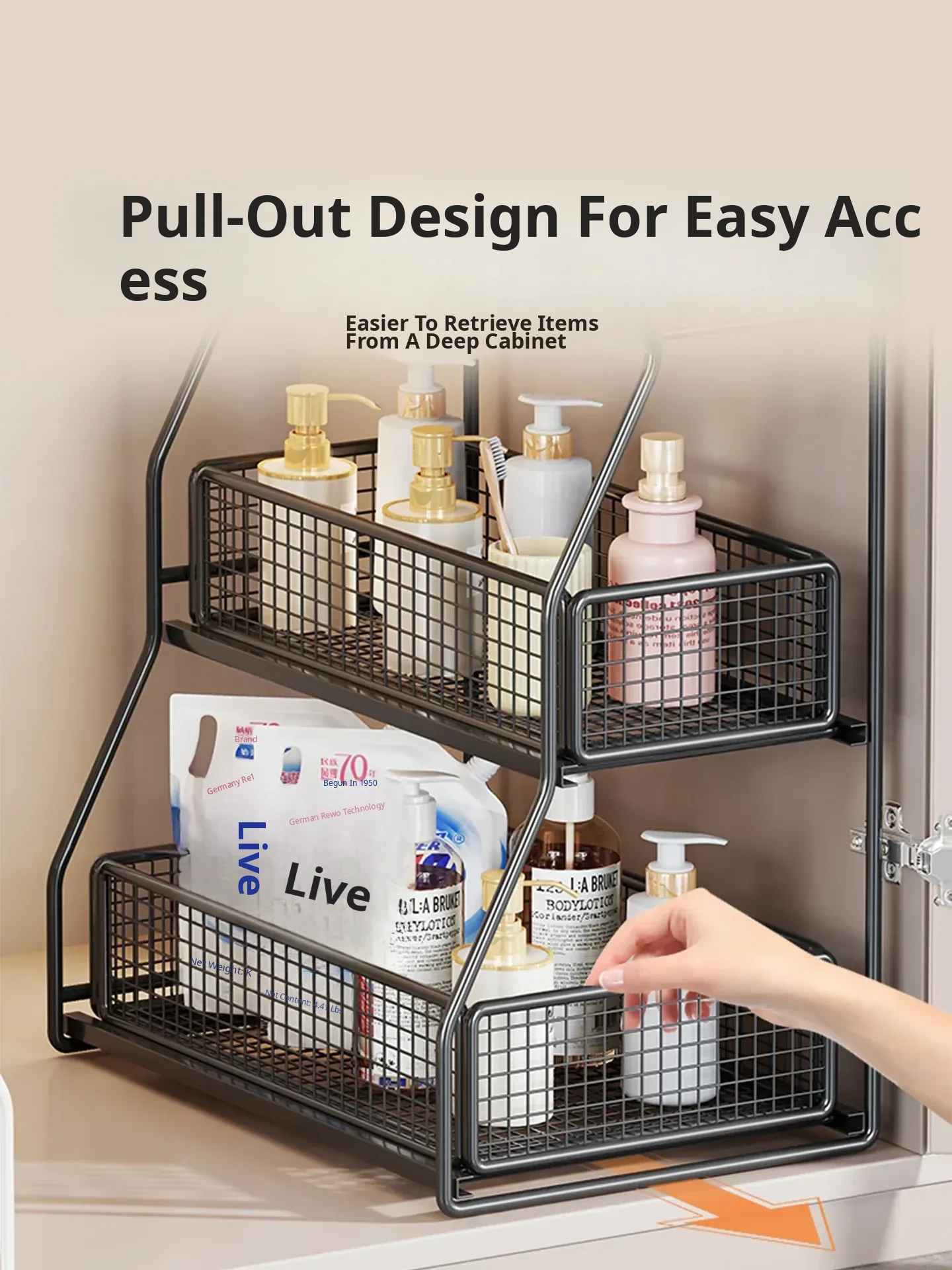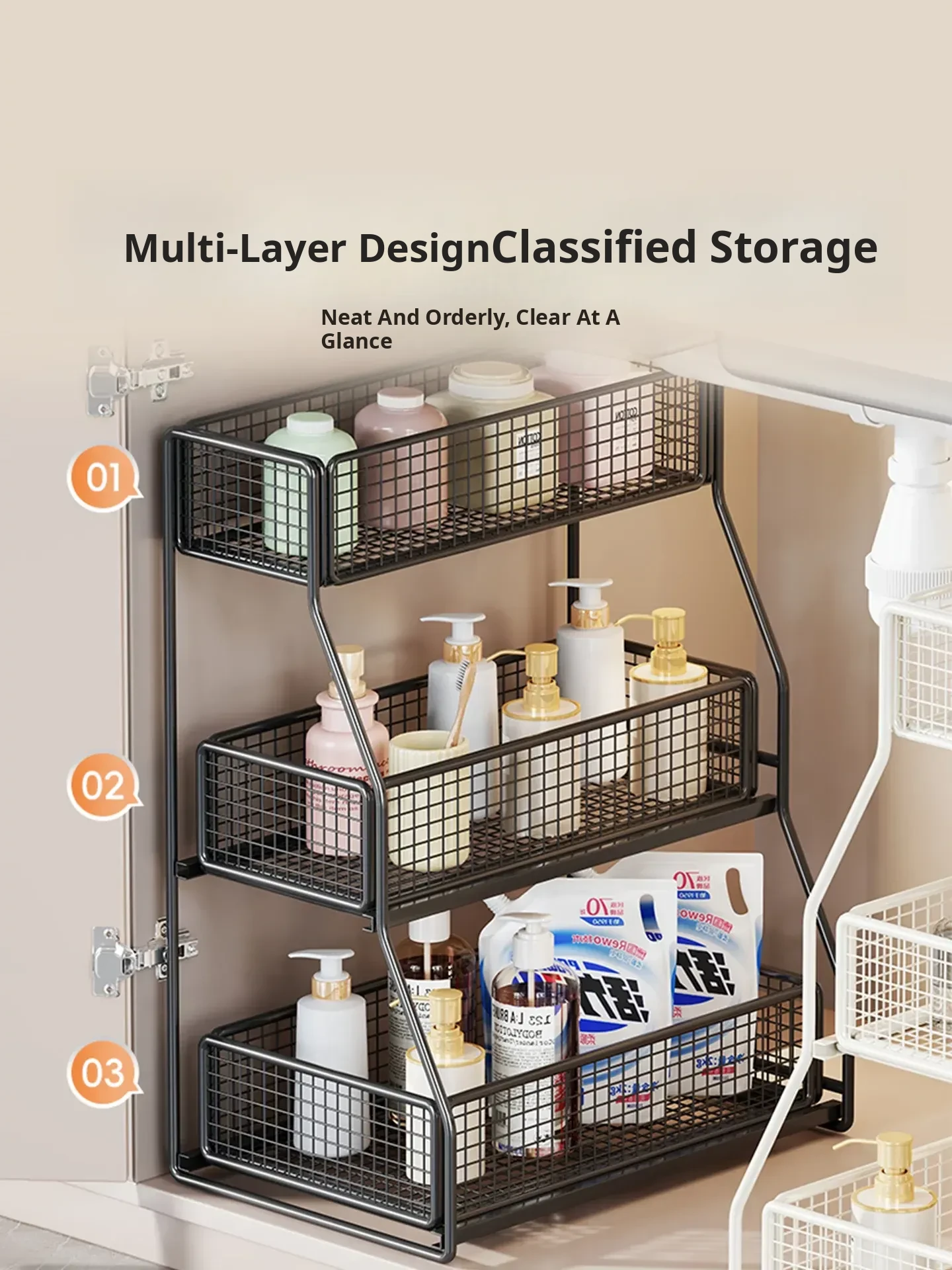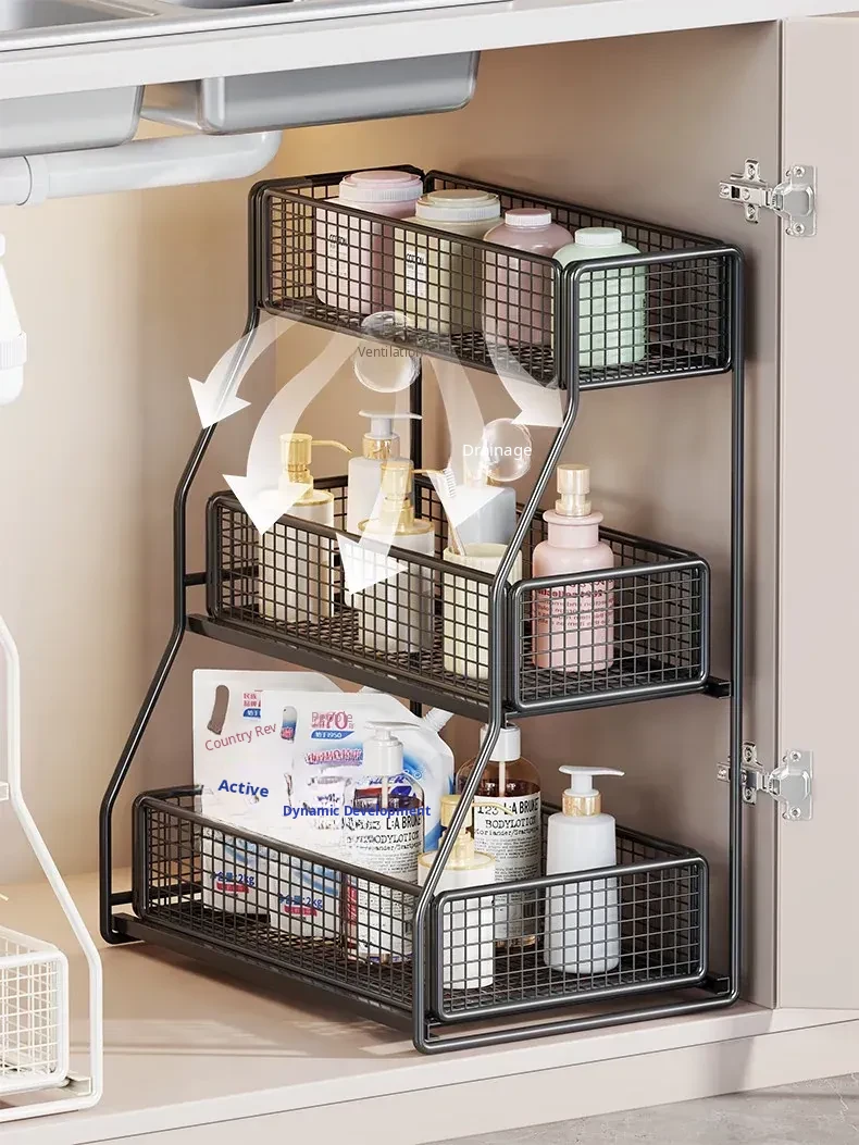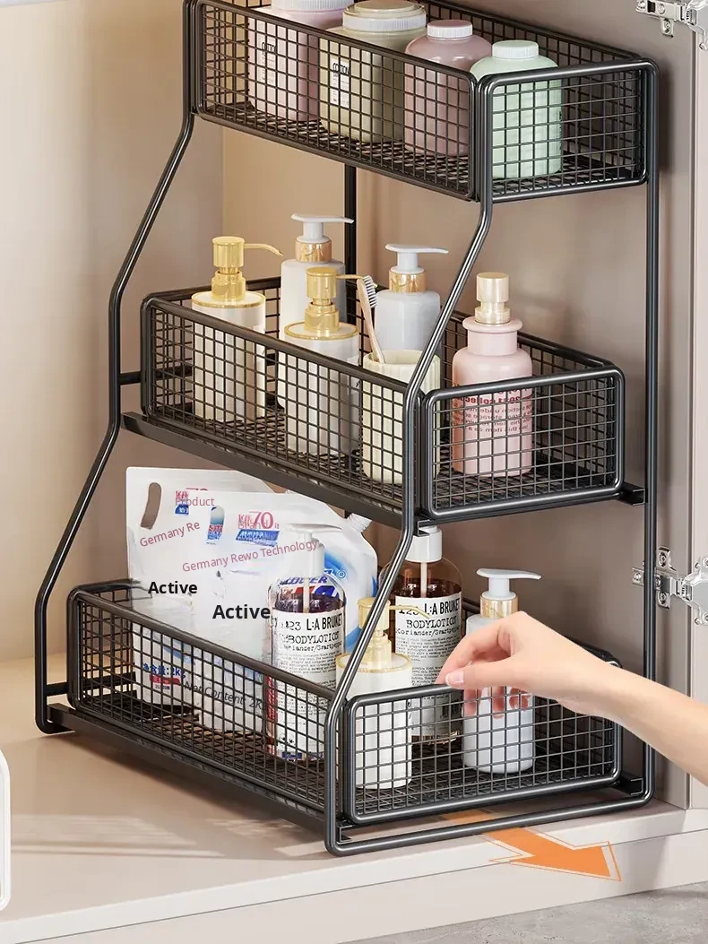 Under-Sink Storage Rack - Pull-Out Tiered Organizer for Bathroom Vanity, Cabinet Storage Box & Basket, Ideal for Efficient Space Management and Easy Access to Essentials