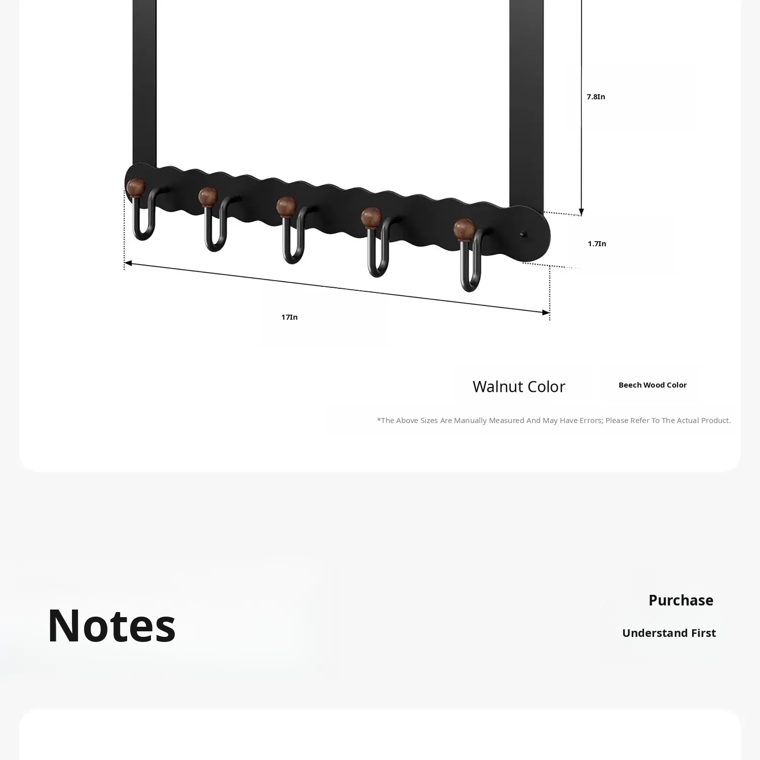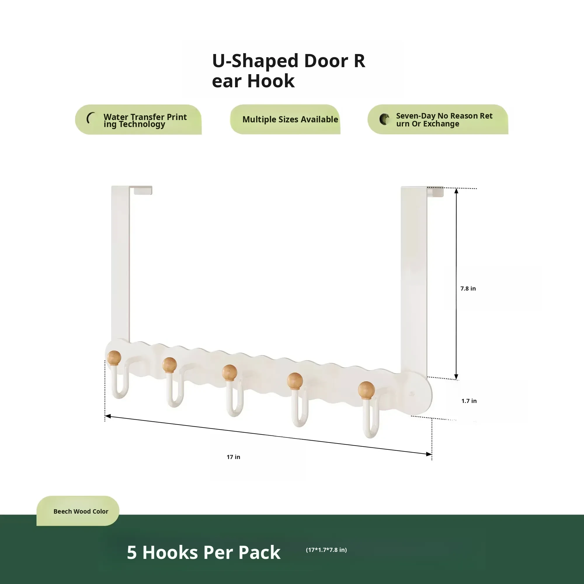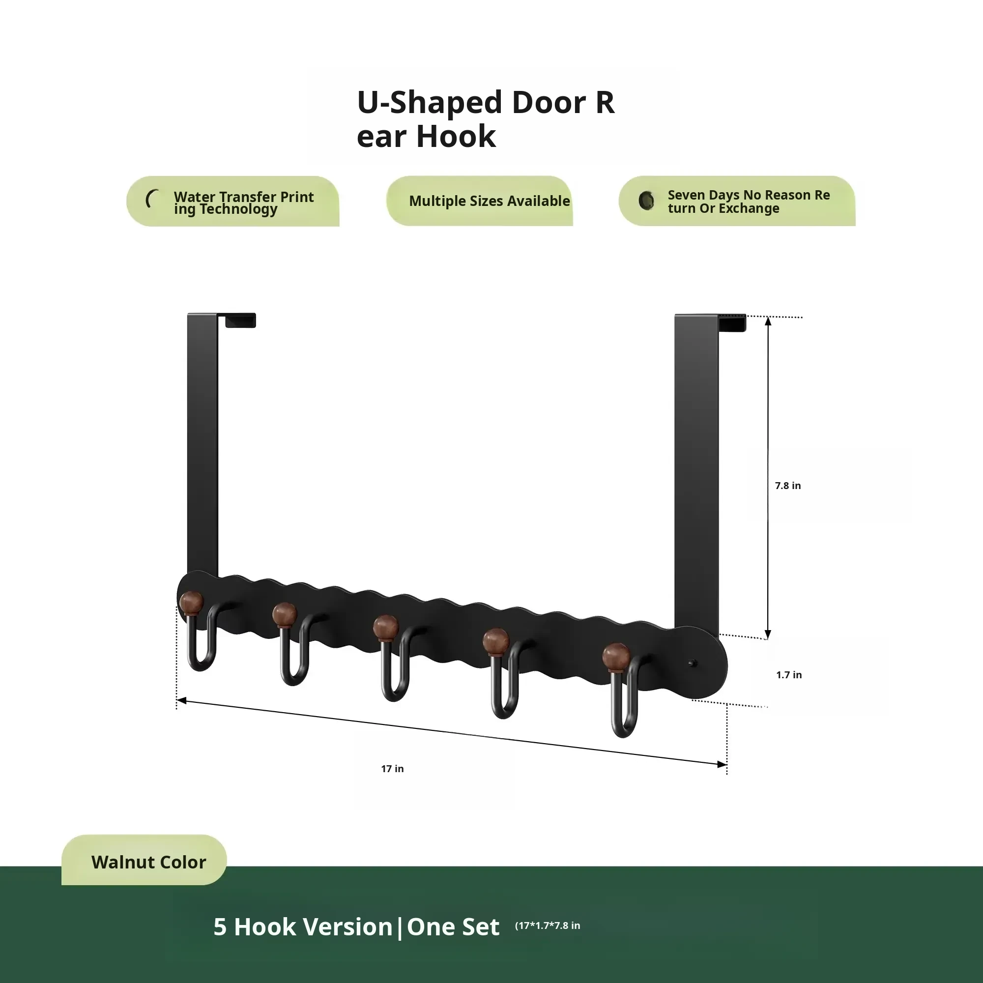 【U-Shaped Door Back Hook - 5 Hook Version】Walnut Finish