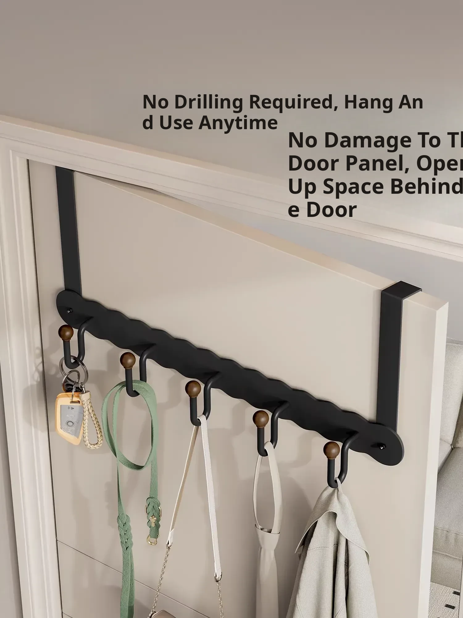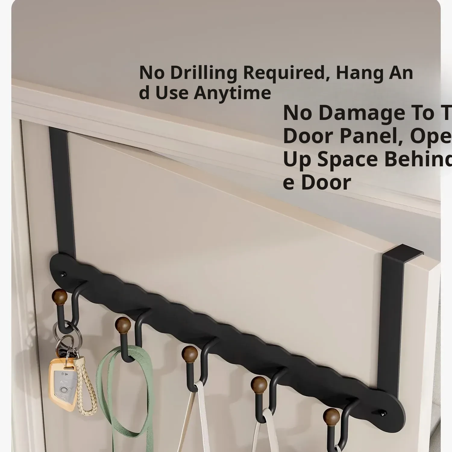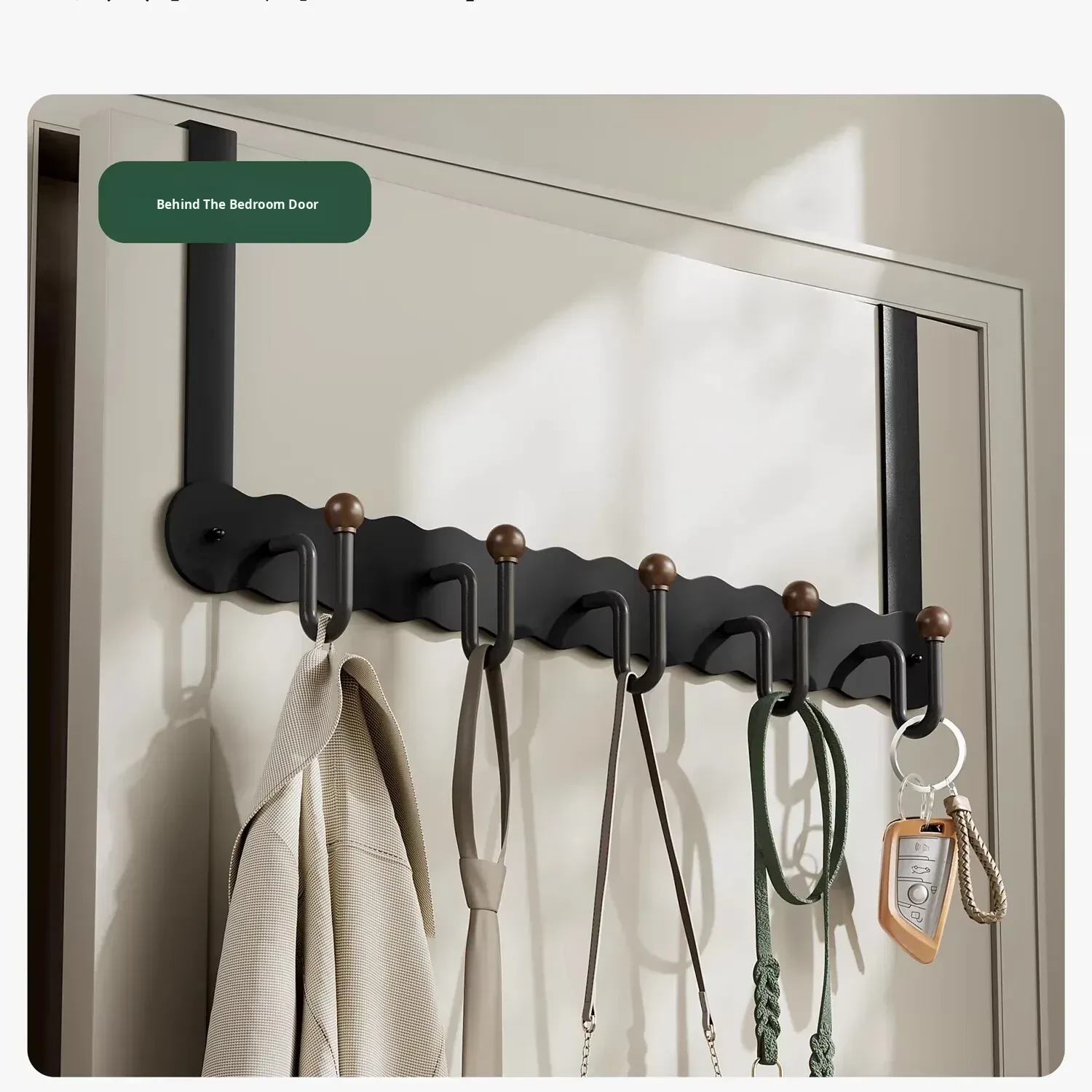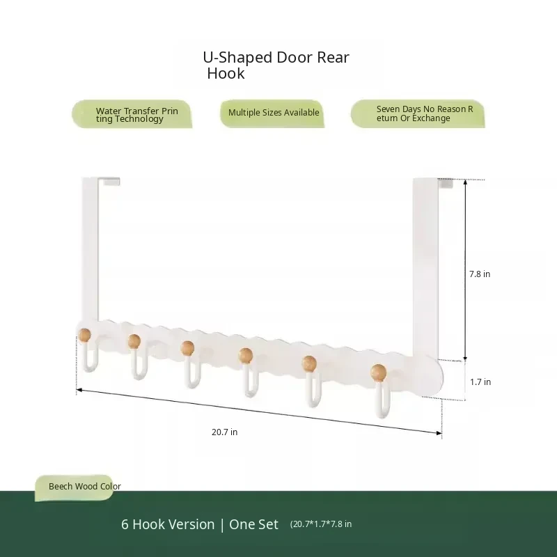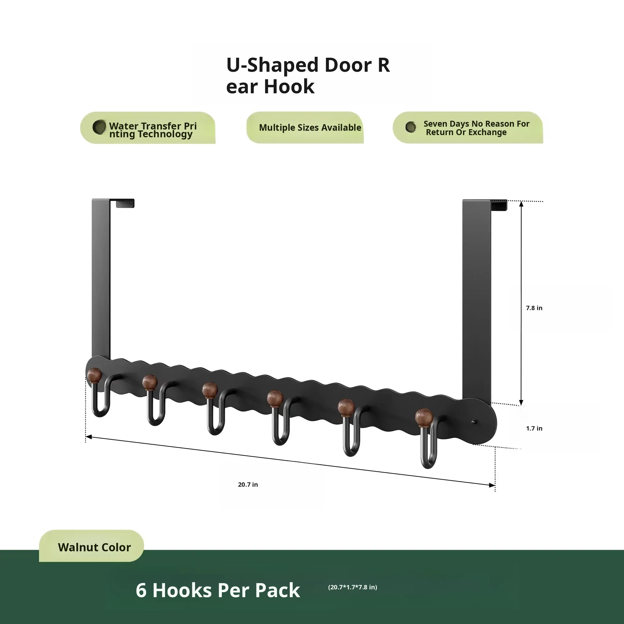 【U-Shaped Door Back Hook - 6 Hook Version】Walnut Finish