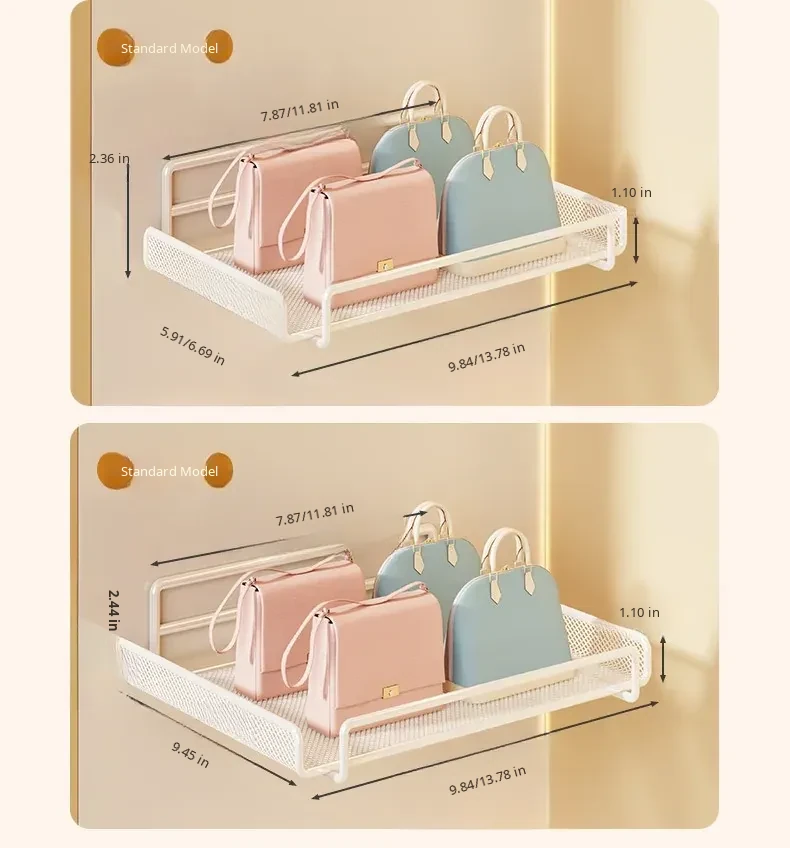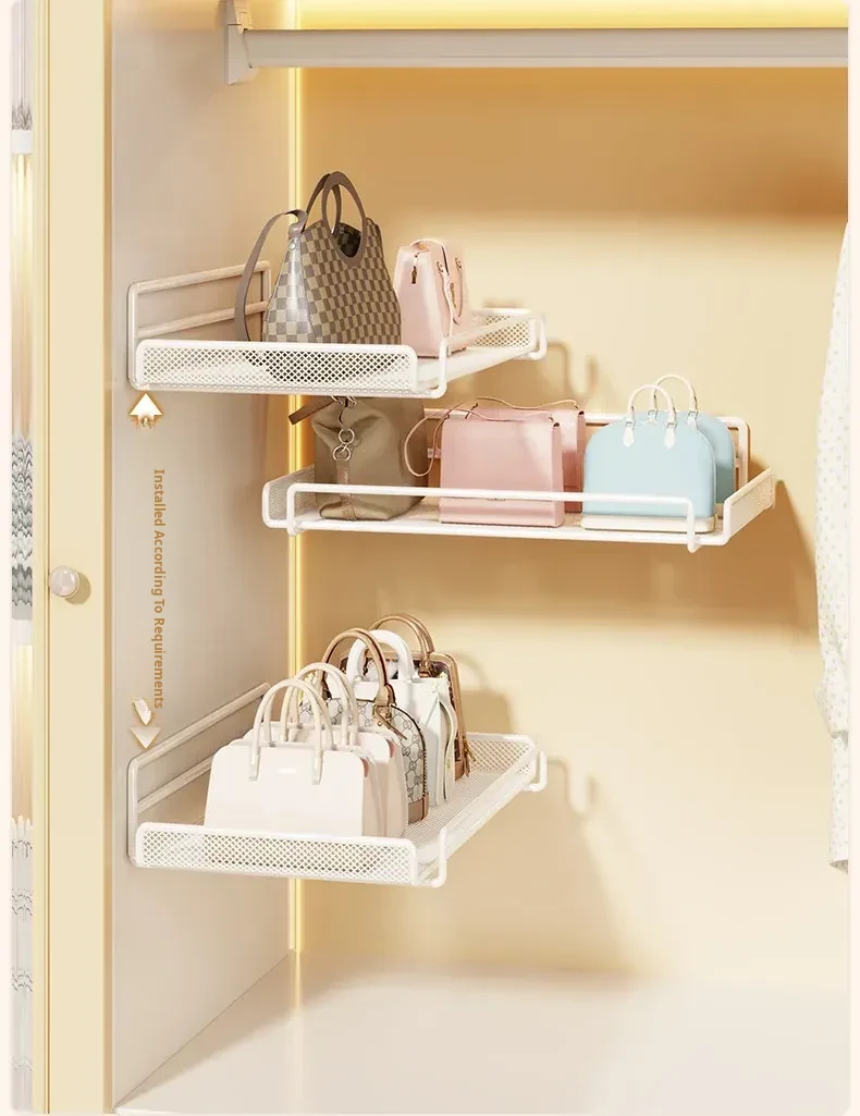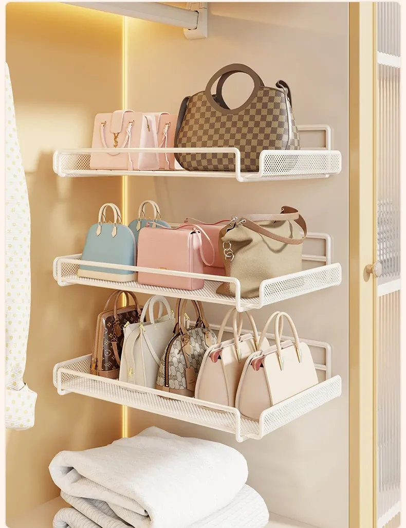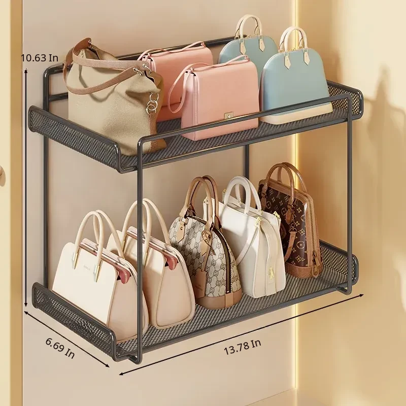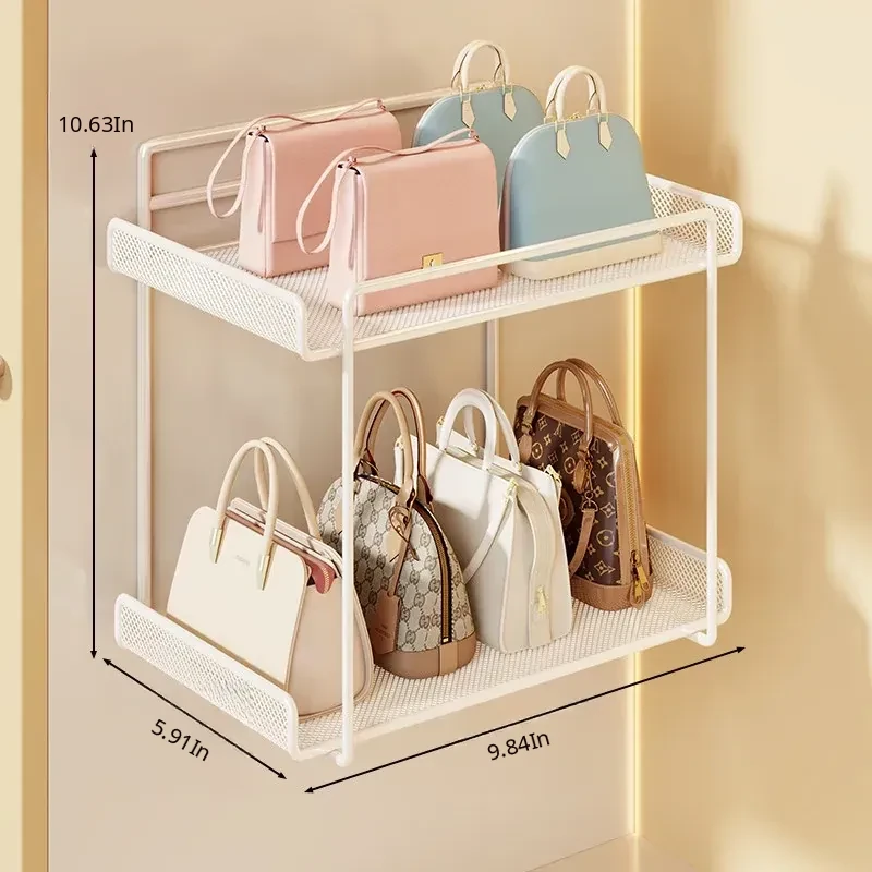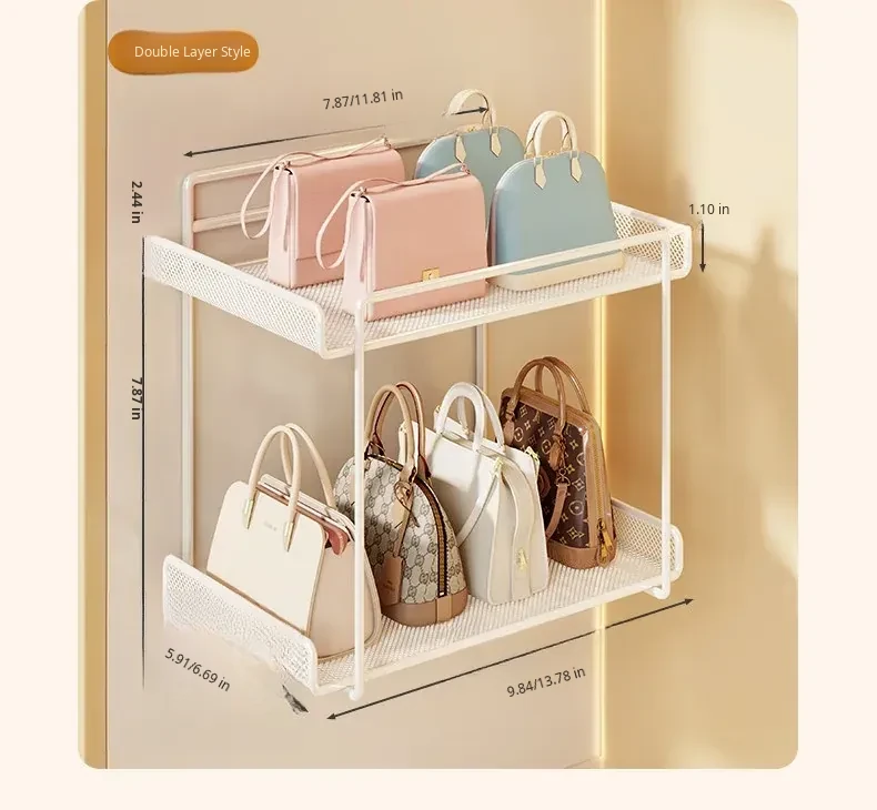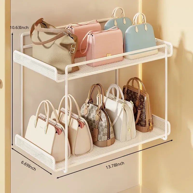 Wall-Mounted Multi-Layer Storage Rack for Bags and Clothes - No Drilling Required, Perfect for Organizing and Displaying Your Accessories!