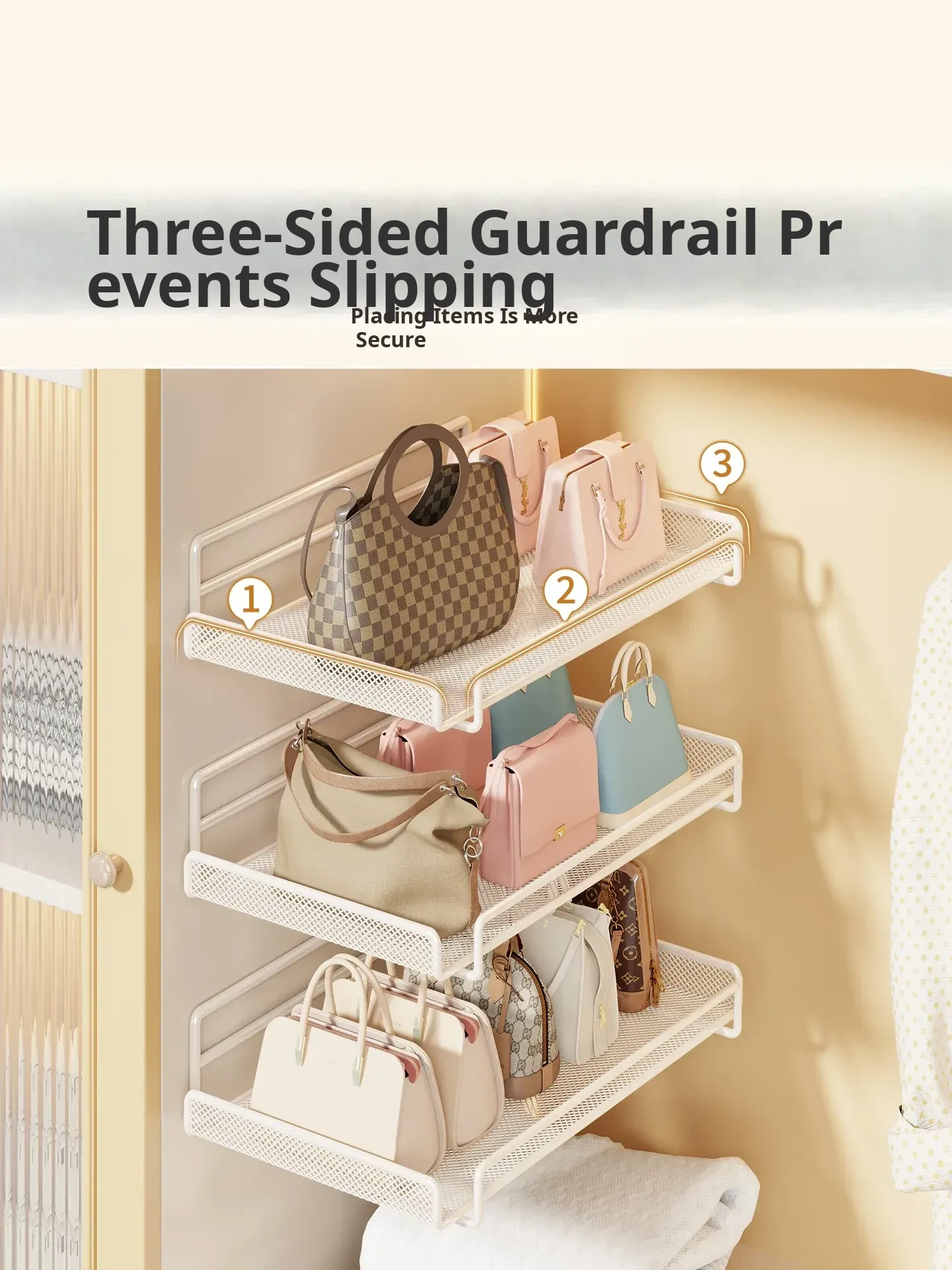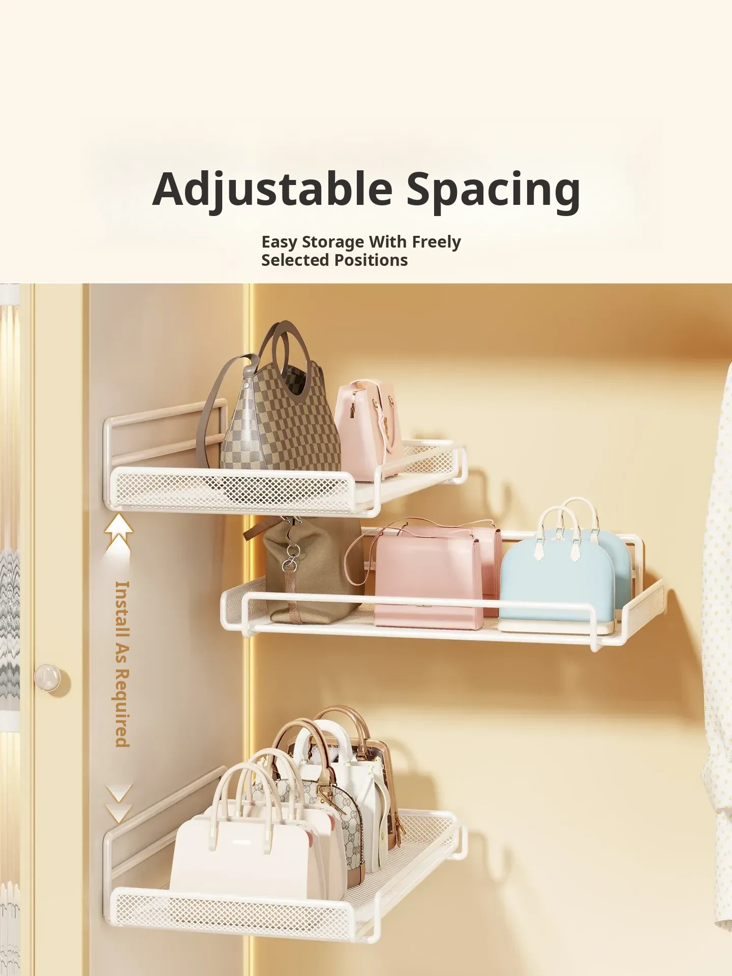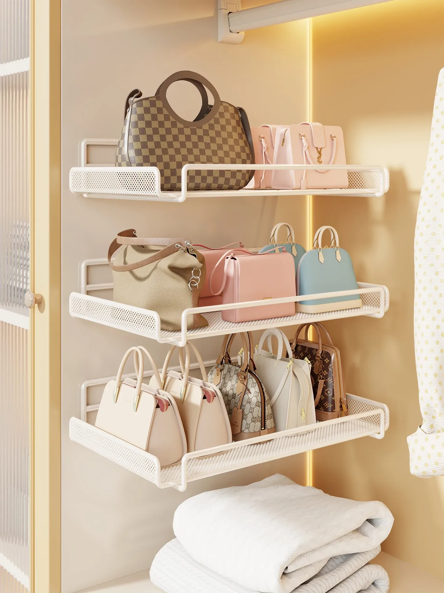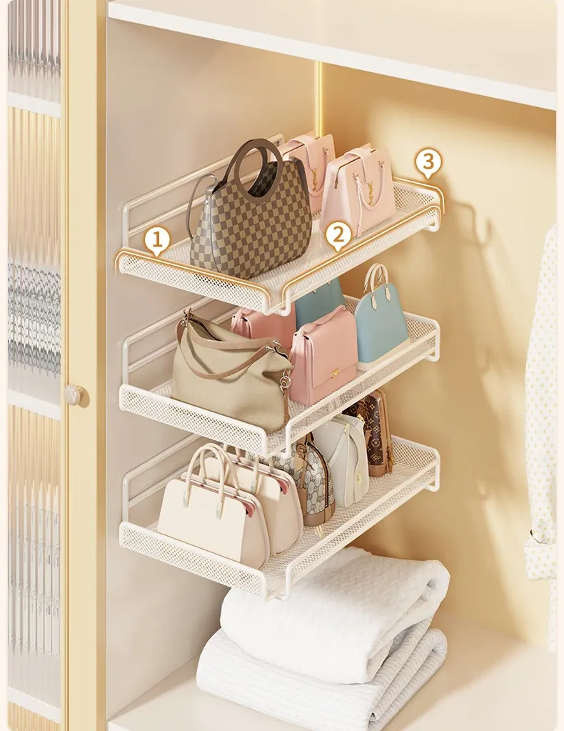 Wall-Mounted Multi-Layer Storage Rack for Bags and Clothes - No Drilling Required, Perfect for Organizing and Displaying Your Accessories!