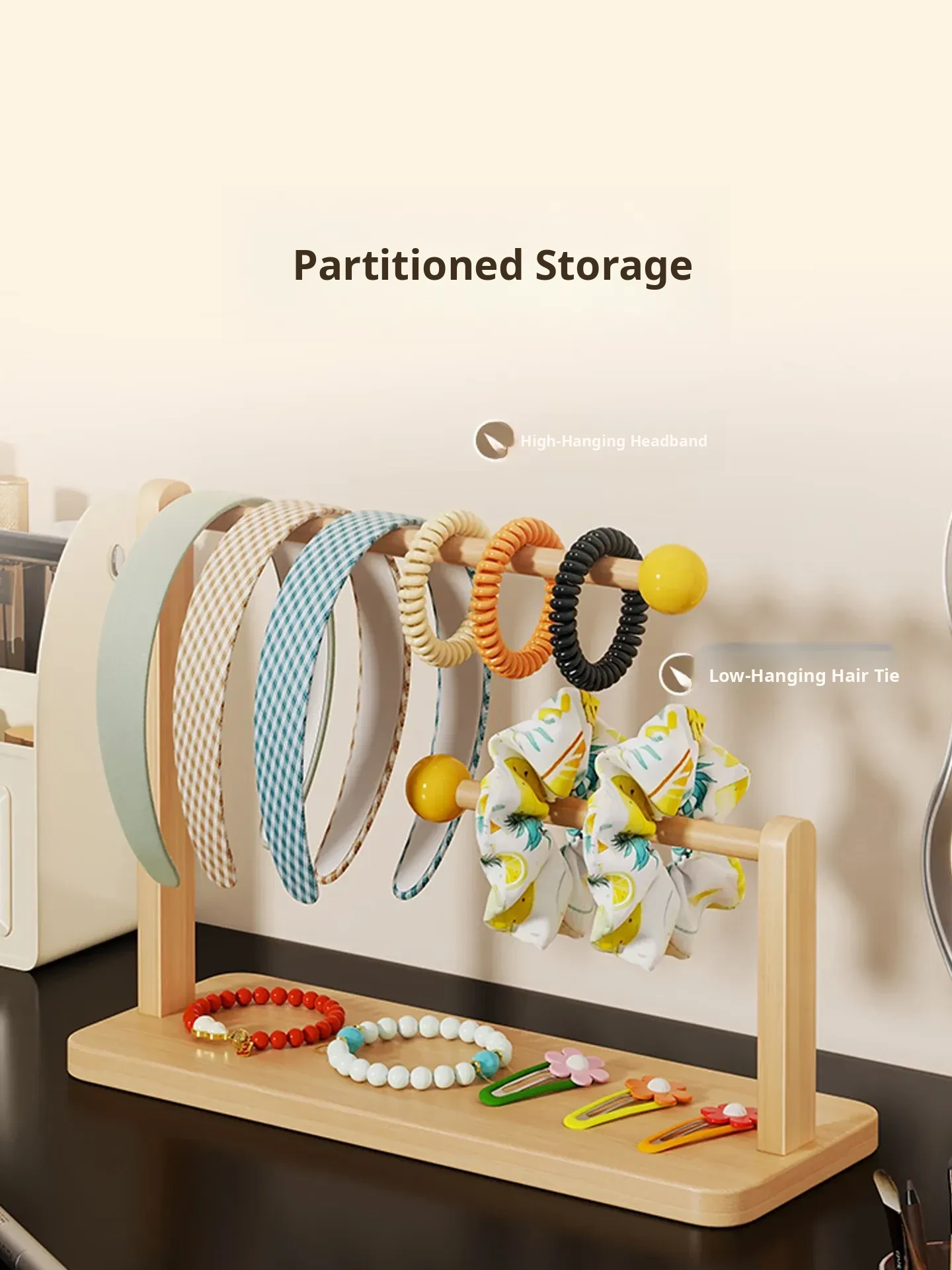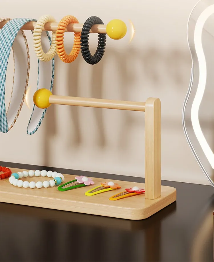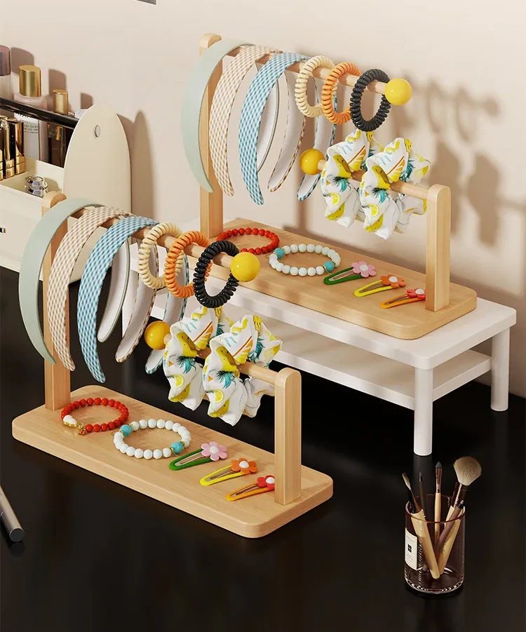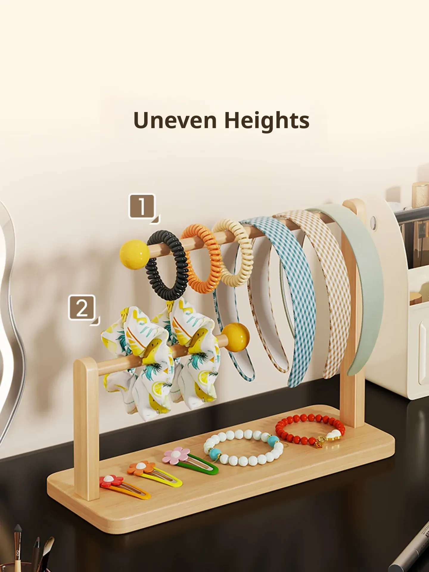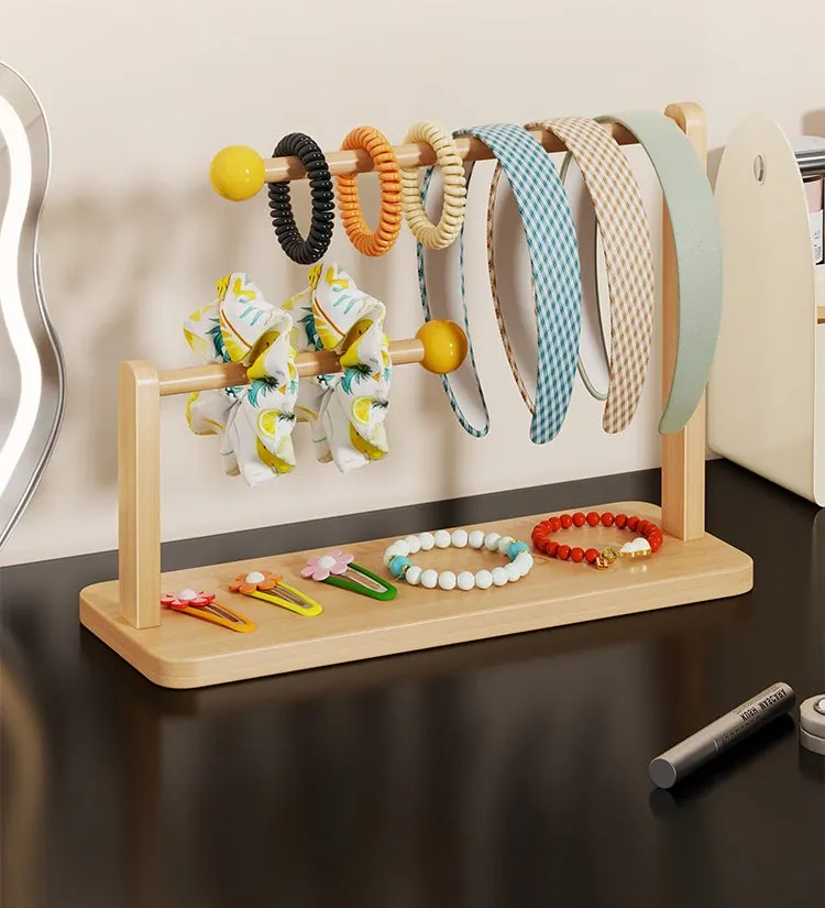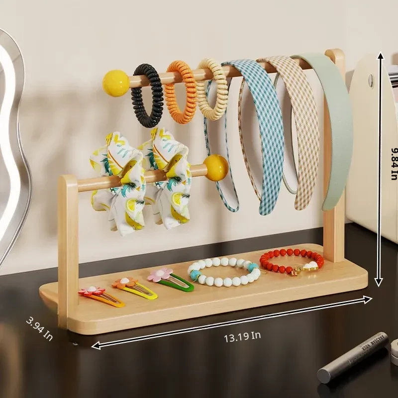 Wooden Hair Accessory Organizer - Stylish Desktop Headband and Hairpin Display Rack for Kids, Perfect for Storing and Showcasing Hair Ties and Clips