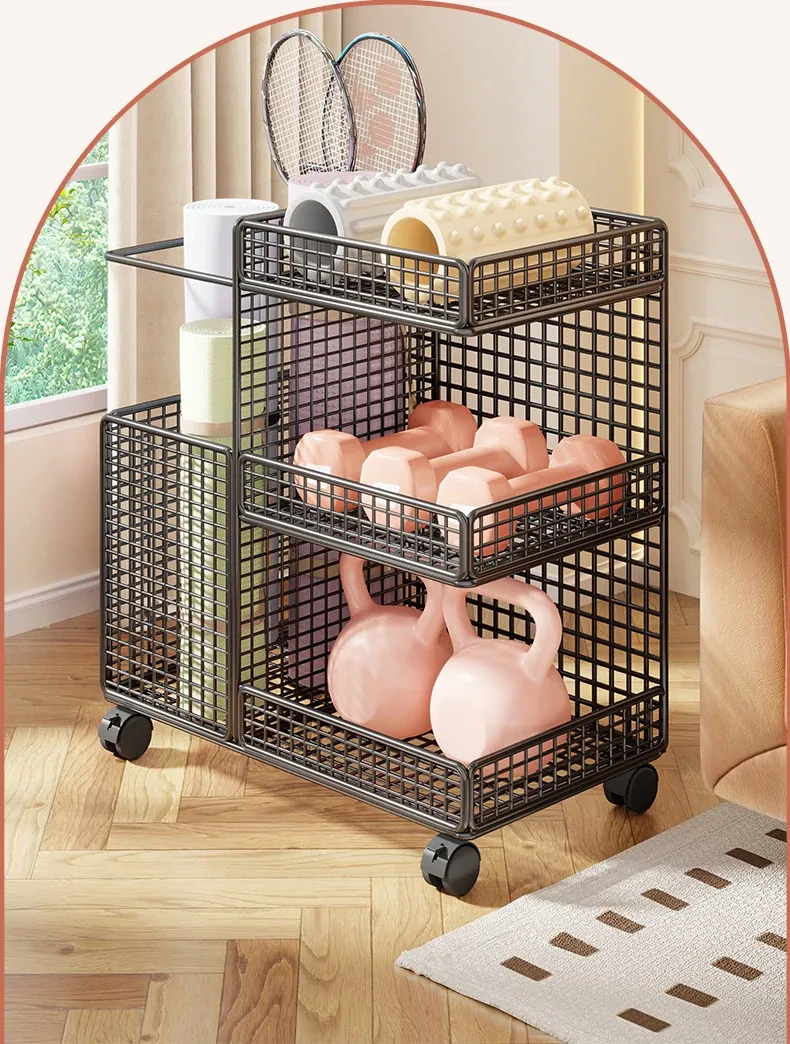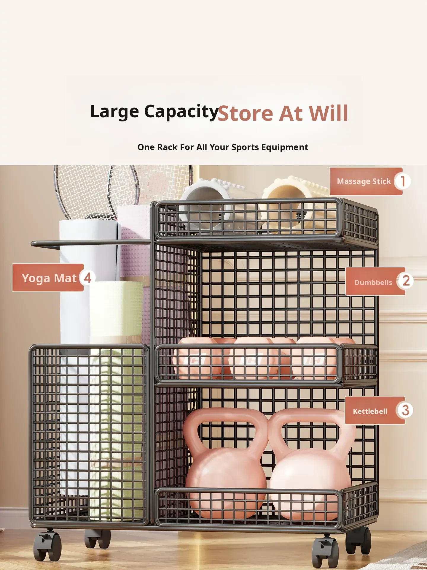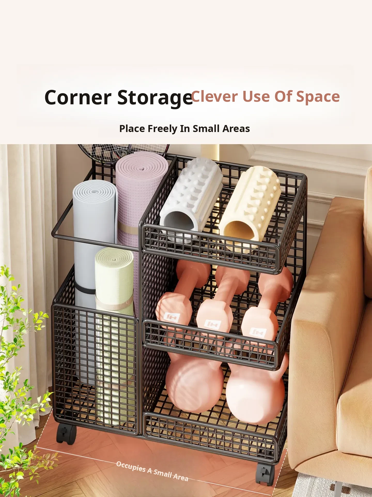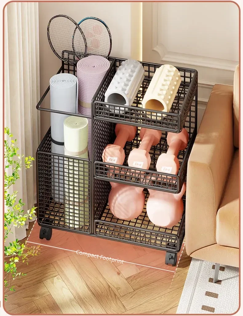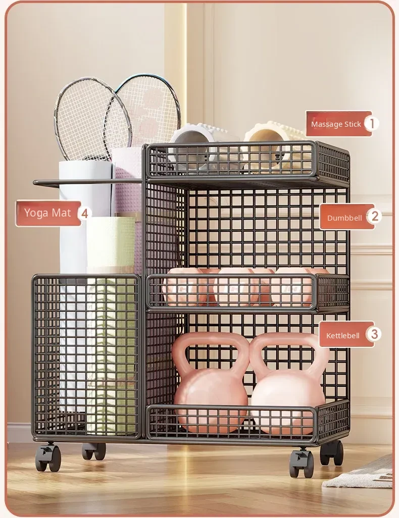 Yoga Mat Storage Basket with Wheels - Home Gym Equipment Organizer Rack for Basketball, Badminton, and More - Perfect for Small Spaces!