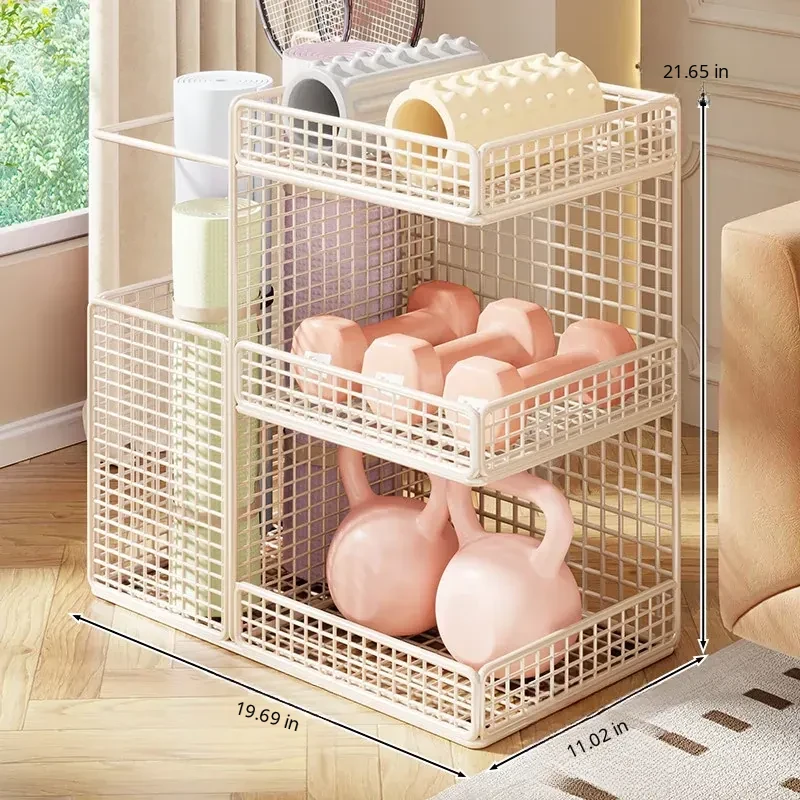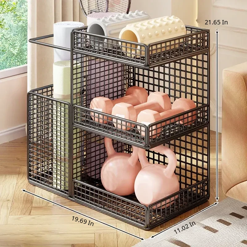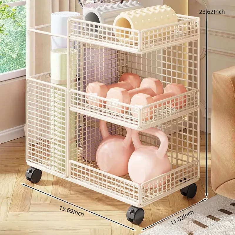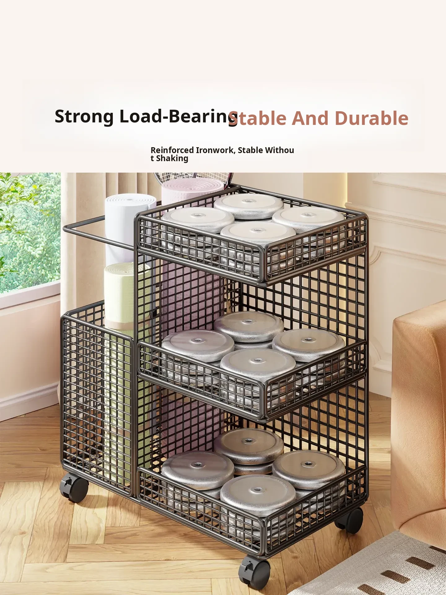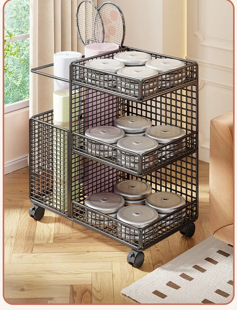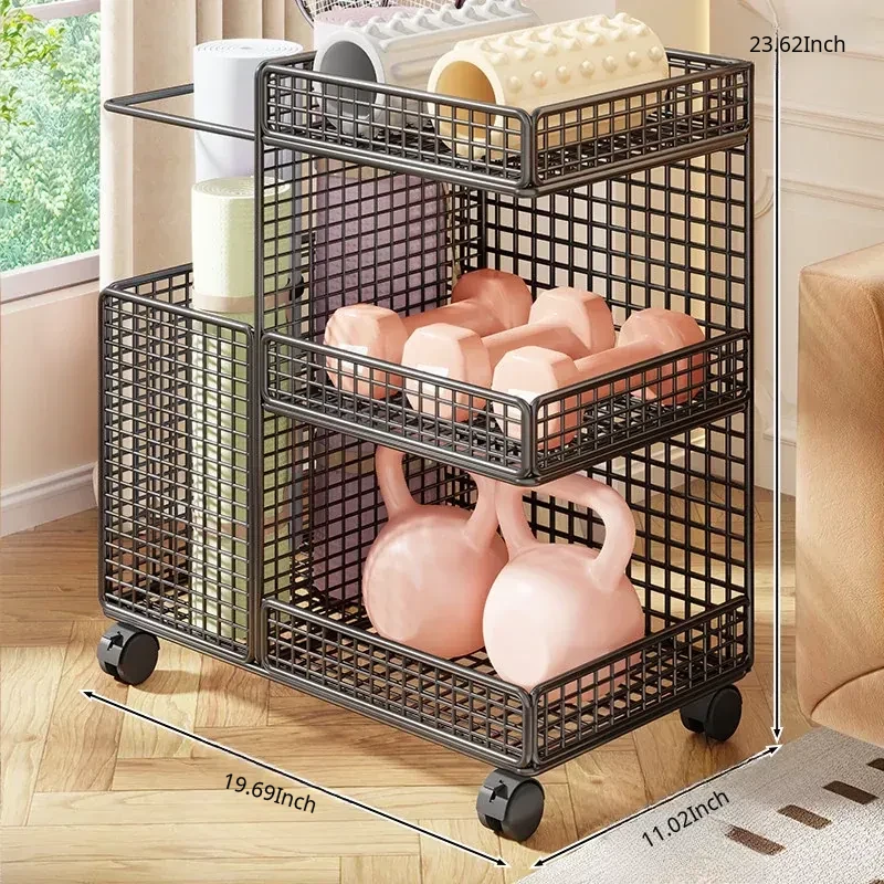 Yoga Mat Storage Basket with Wheels - Home Gym Equipment Organizer Rack for Basketball, Badminton, and More - Perfect for Small Spaces!