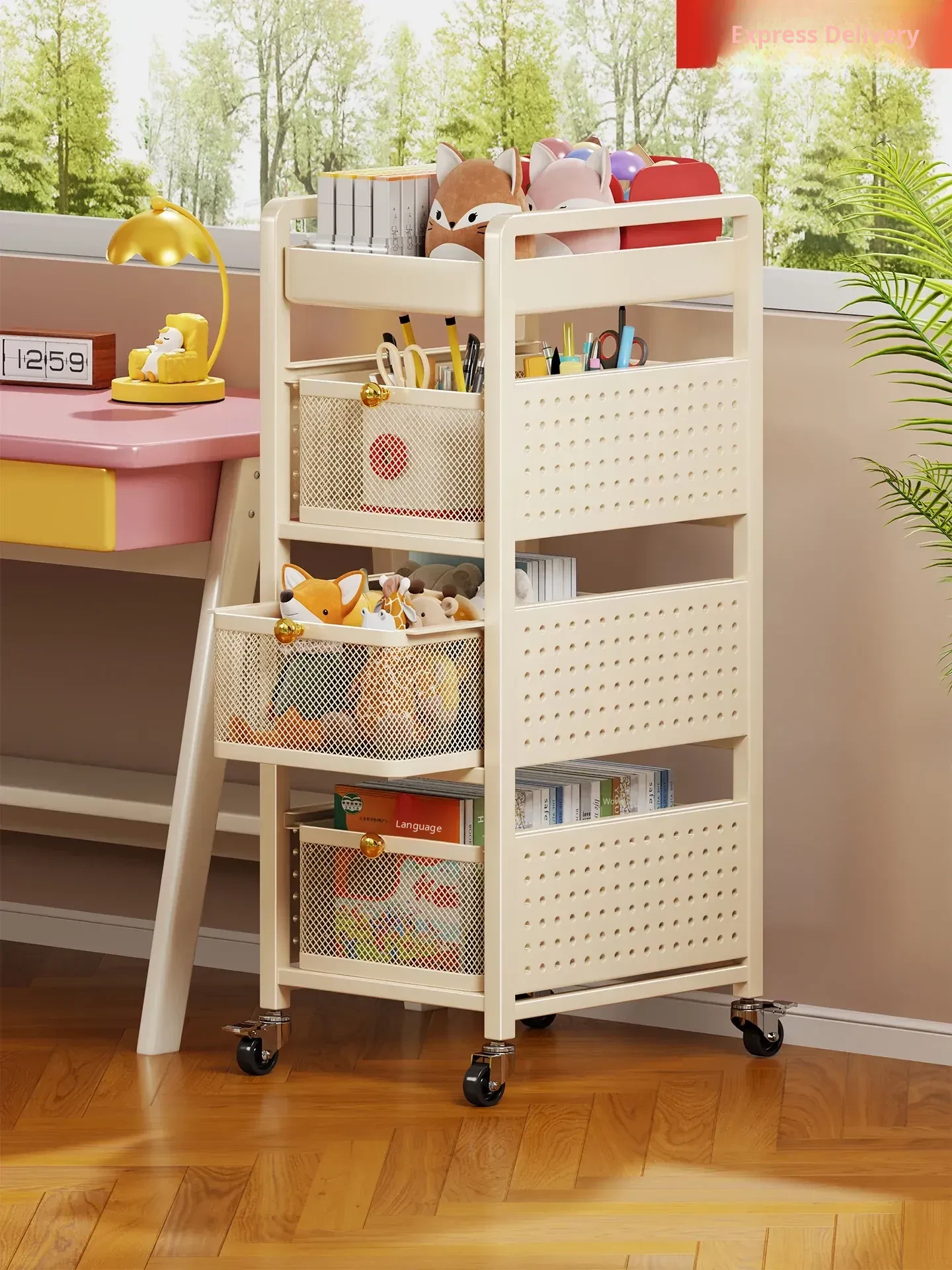 Portable Rolling Bookshelf with Wheels - Multi-Layer Organizer for Home Use, Ideal for Desktop, Under Desk, or Side Table Storage Solution! Perfect for Keeping Your Space Tidy and Stylish!
