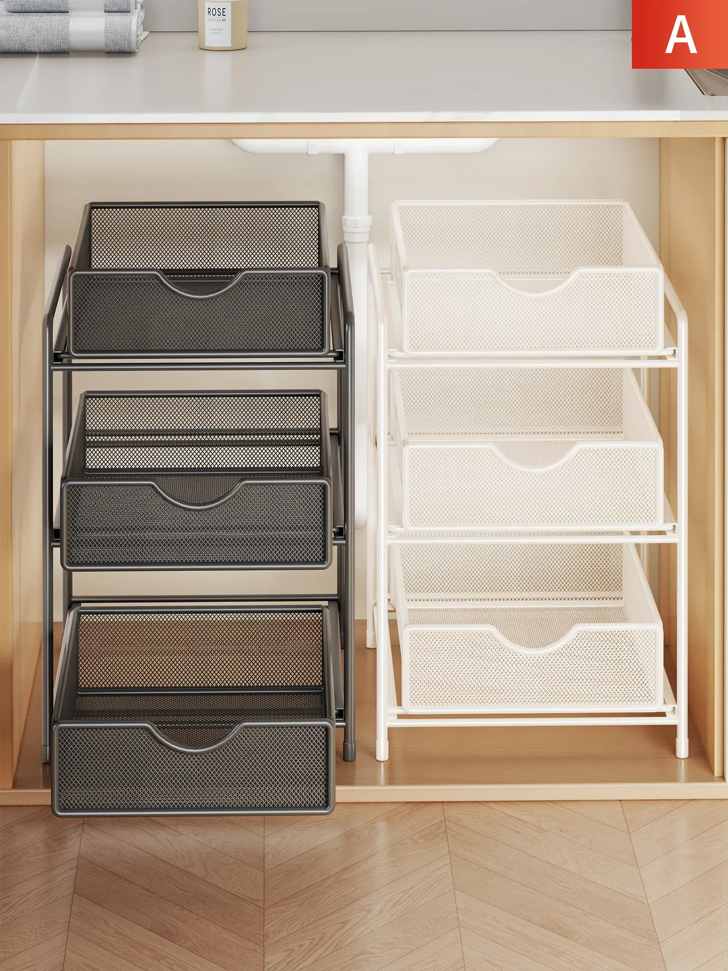 Pull-Out Kitchen Storage Rack - Multi-Layer Organizer for Cabinets, Deep Drawer Basket for Bathroom Under-Sink Storage Solution
