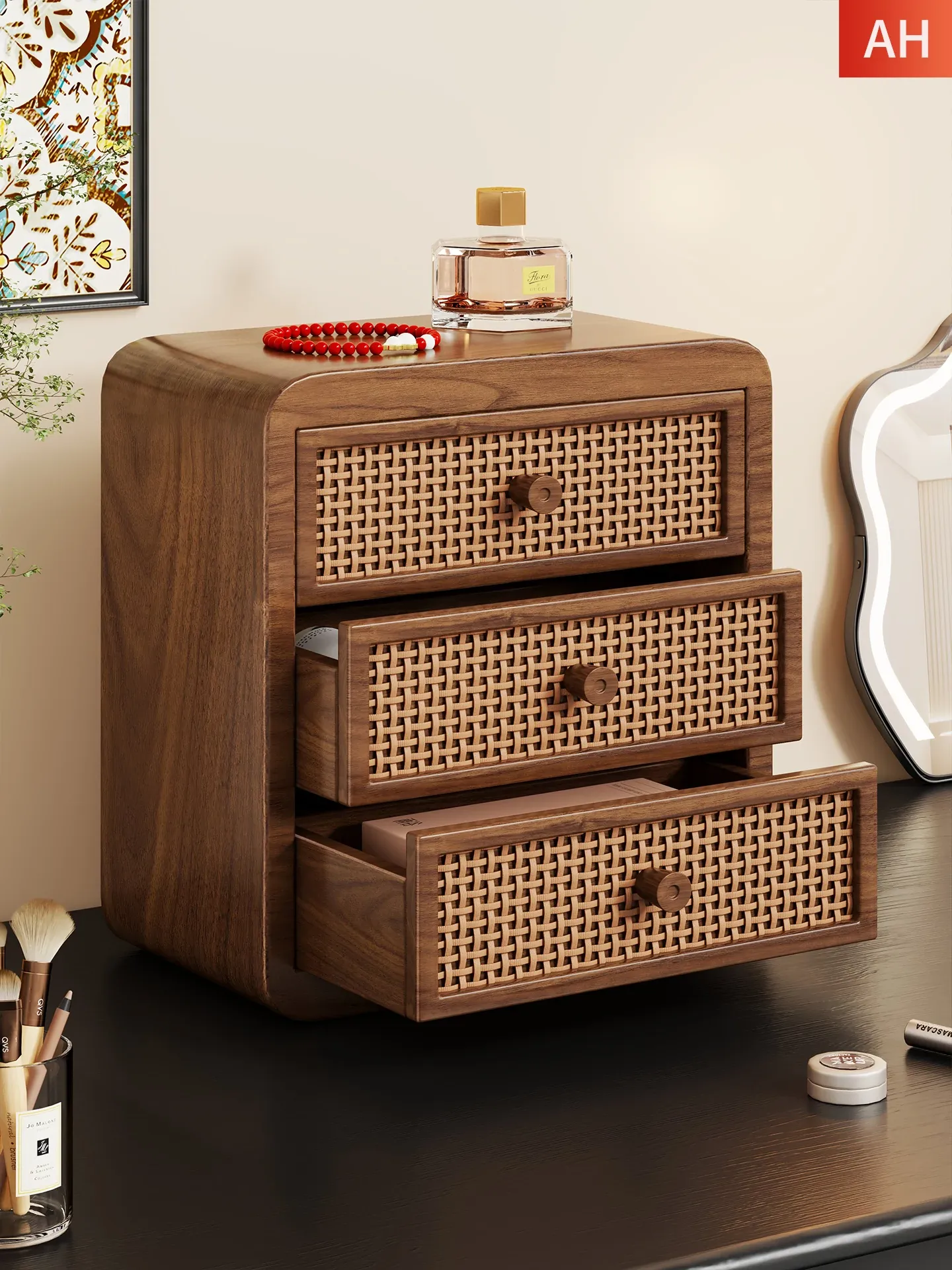 Elegant Wooden Makeup Organizer with Dustproof Drawers - Stylish Storage for Lipsticks, Masks, and Skincare Products on Your Dressing Table