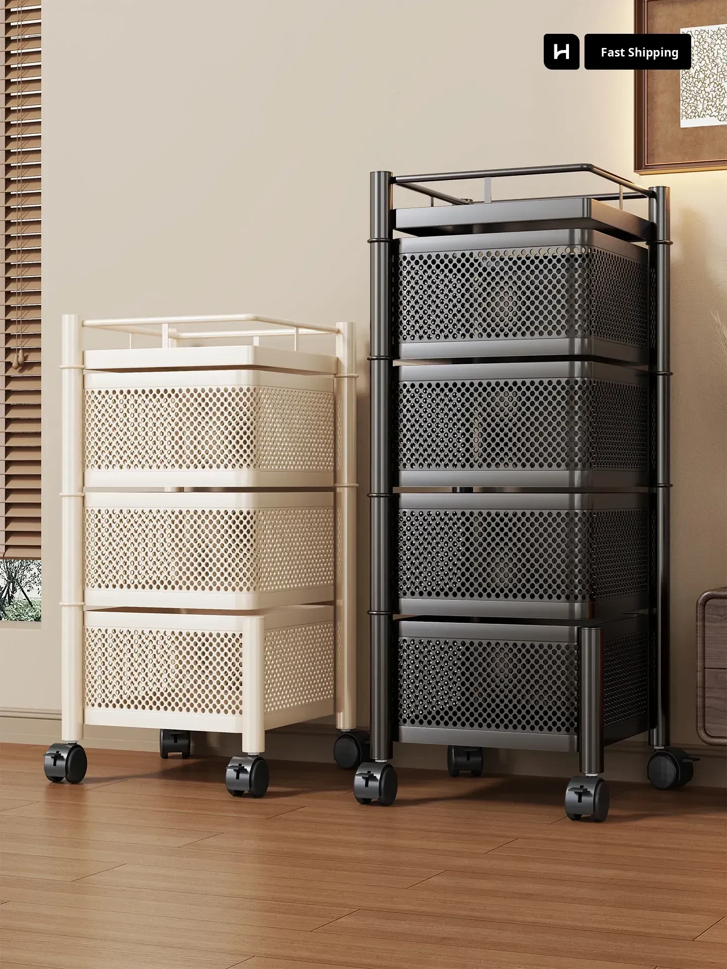 Multi-Functional Rotating Snack Cart for Home - 3-Tier Fruit and Vegetable Storage Rack for Living Room and Kitchen Organization