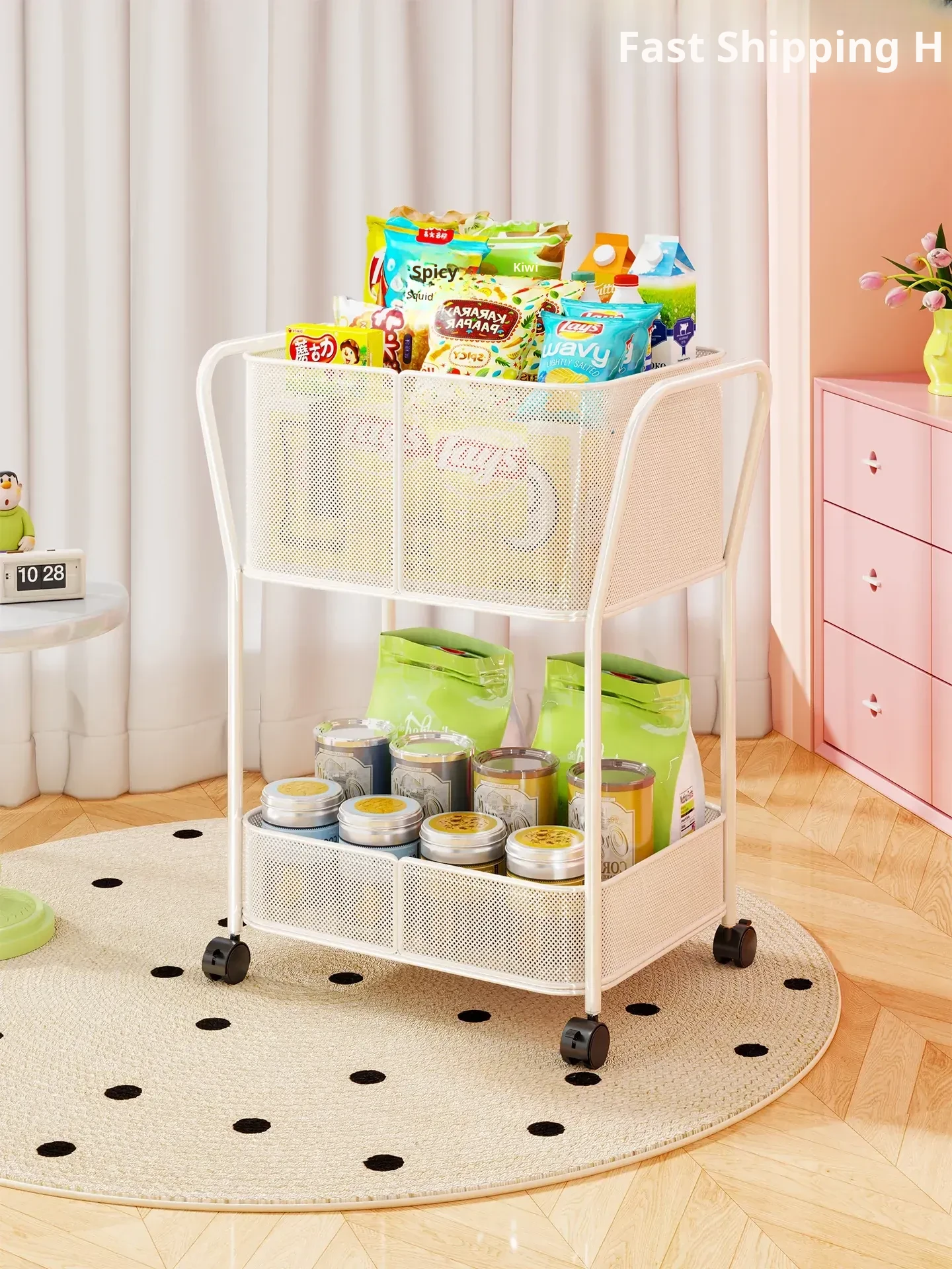 Multi-Layer Snack Cart Storage Rack - Versatile Floor Organizer for Toys, Books, and Household Items - Perfect for Home Organization and Clutter Control!