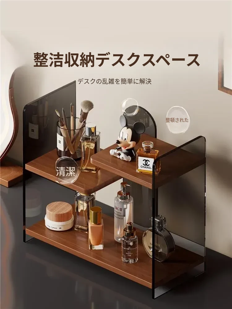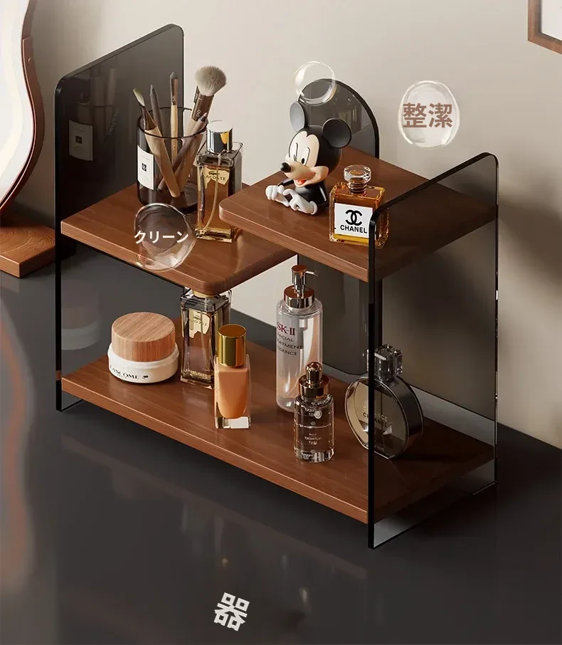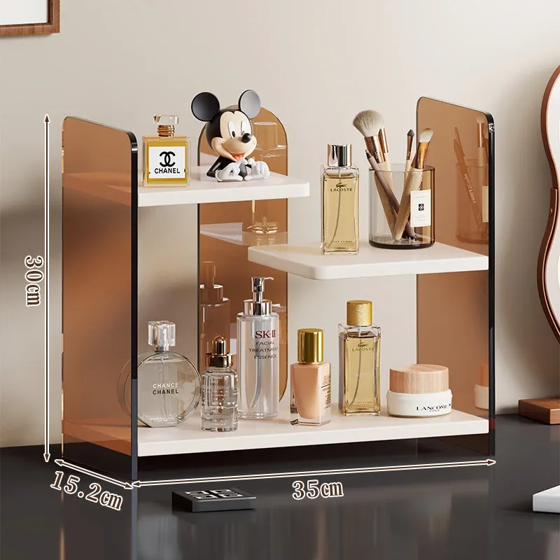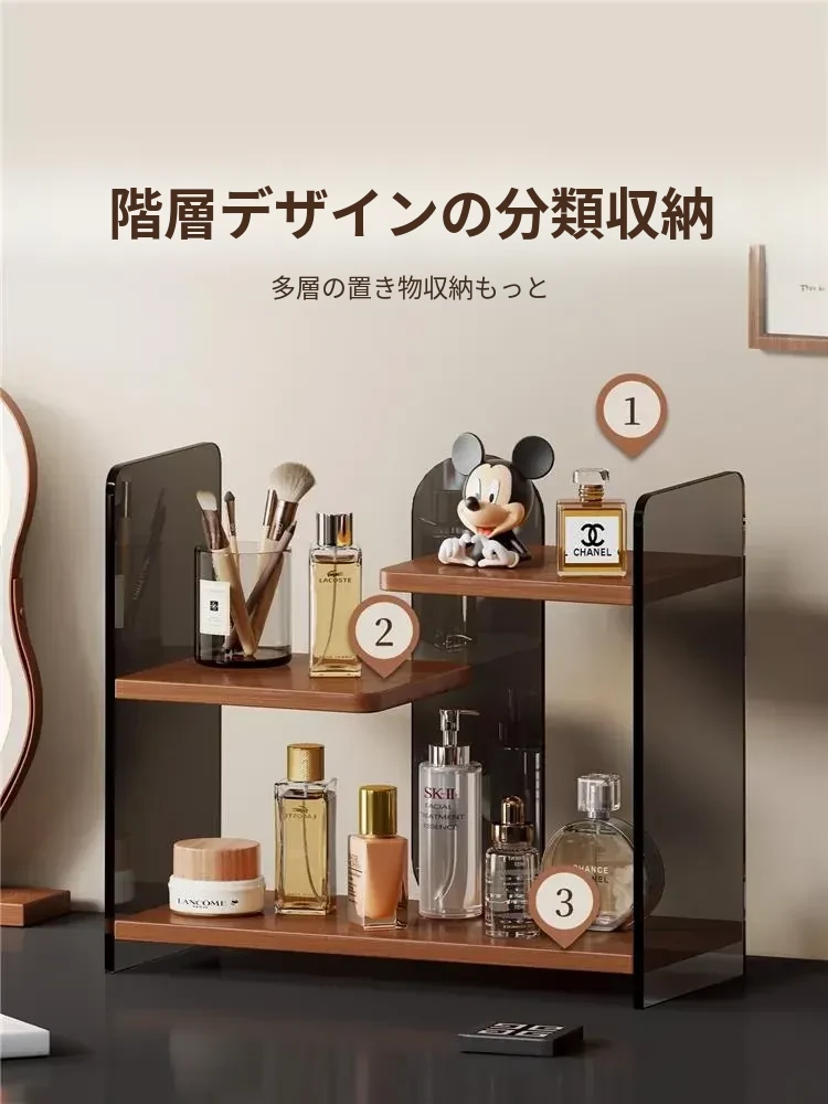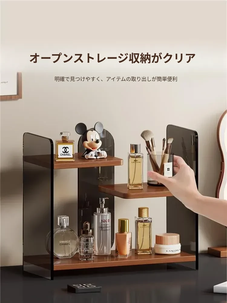 デスク上の化粧品収納ボックス - おしゃれなアクリル製、洗面台にぴったりな高級感溢れるコスメティックオーガナイザー、スキンケア用品をすっきり整理!