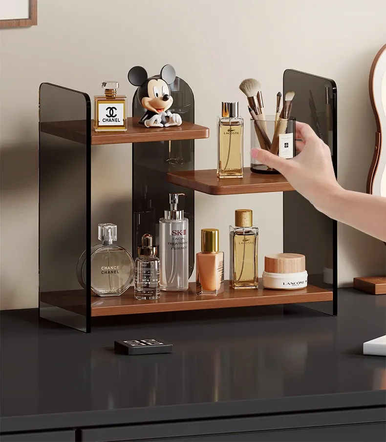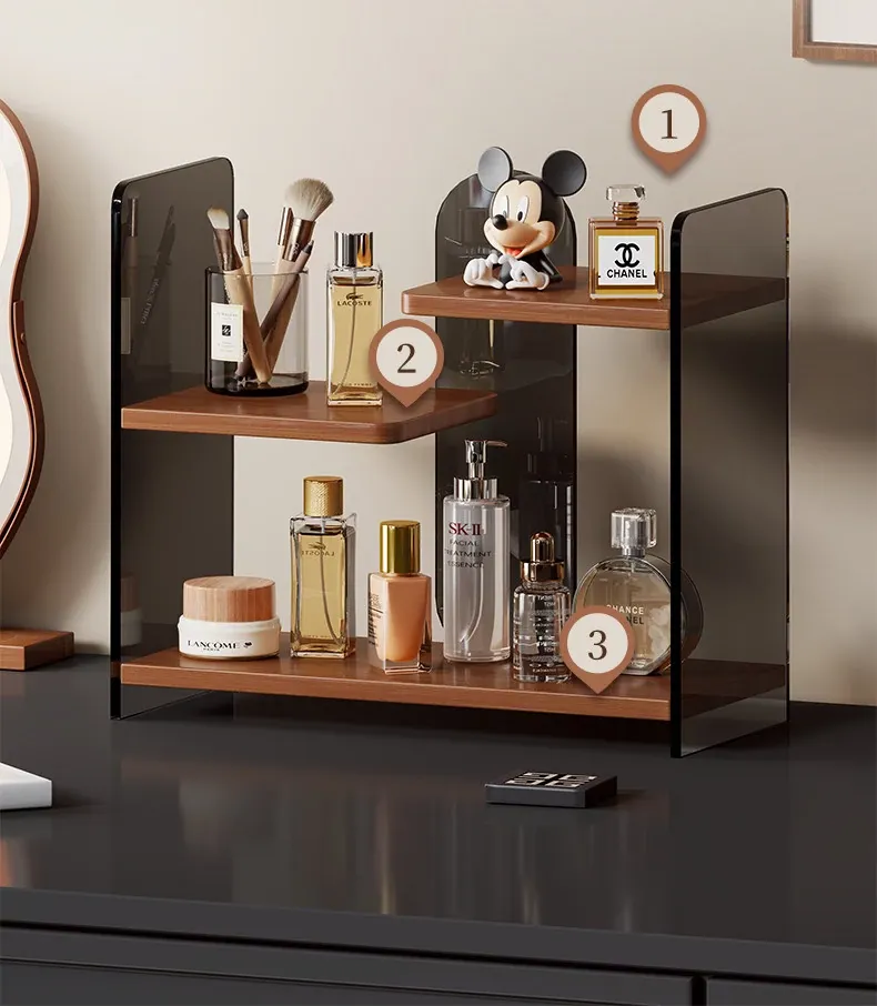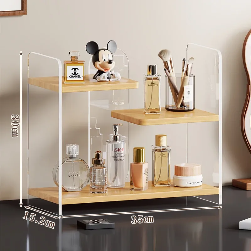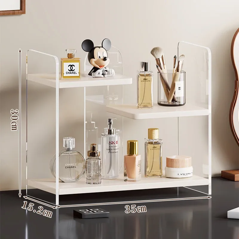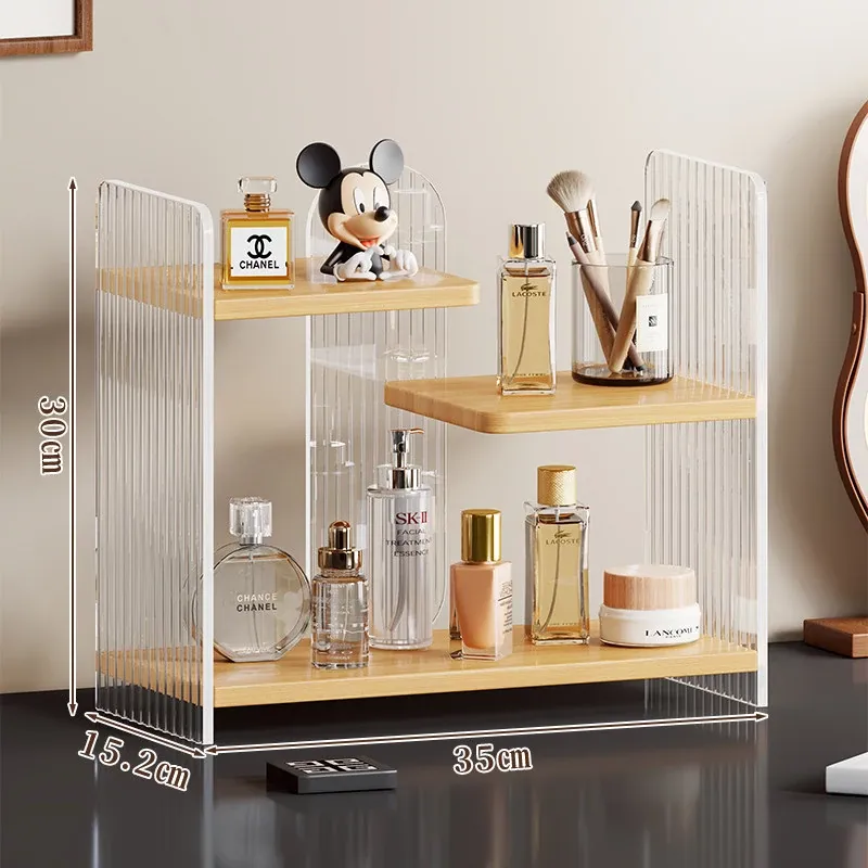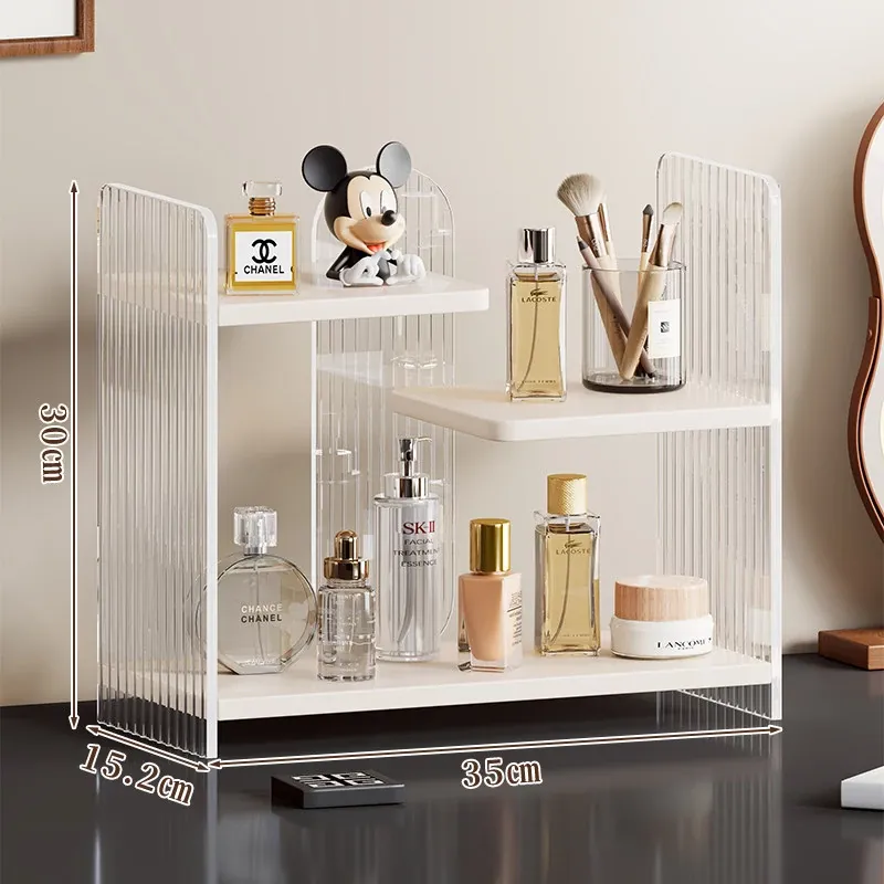デスク上の化粧品収納ボックス - おしゃれなアクリル製、洗面台にぴったりな高級感溢れるコスメティックオーガナイザー、スキンケア用品をすっきり整理!