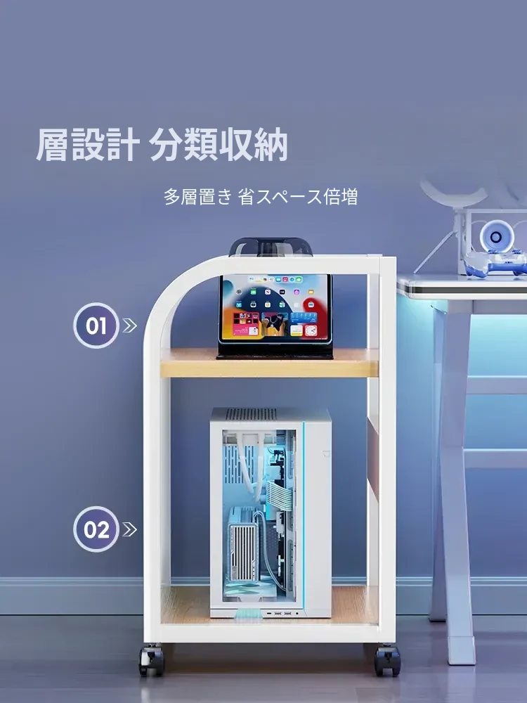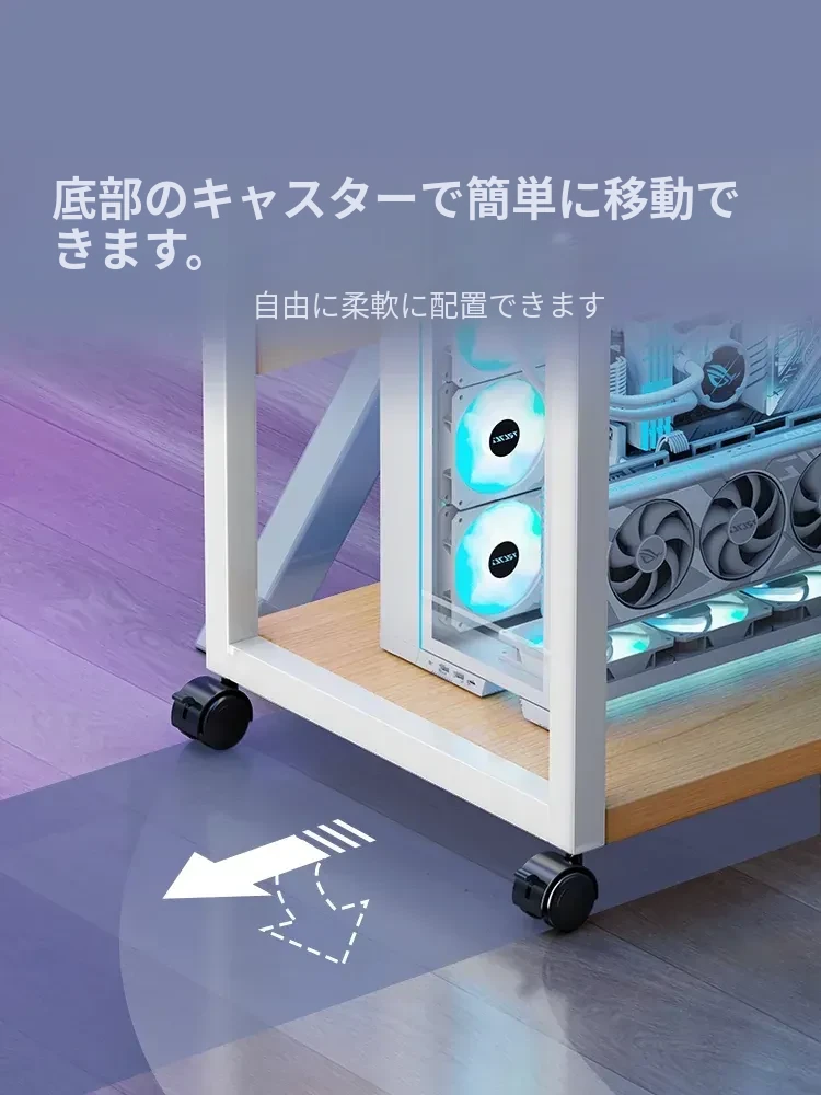 オフィスデスク下に最適!パソコン本体用スタンド - 高さ調整可能な冷却収納ラック、移動可能なフロアプリンター置き台としても活躍!快適な作業環境を実現!