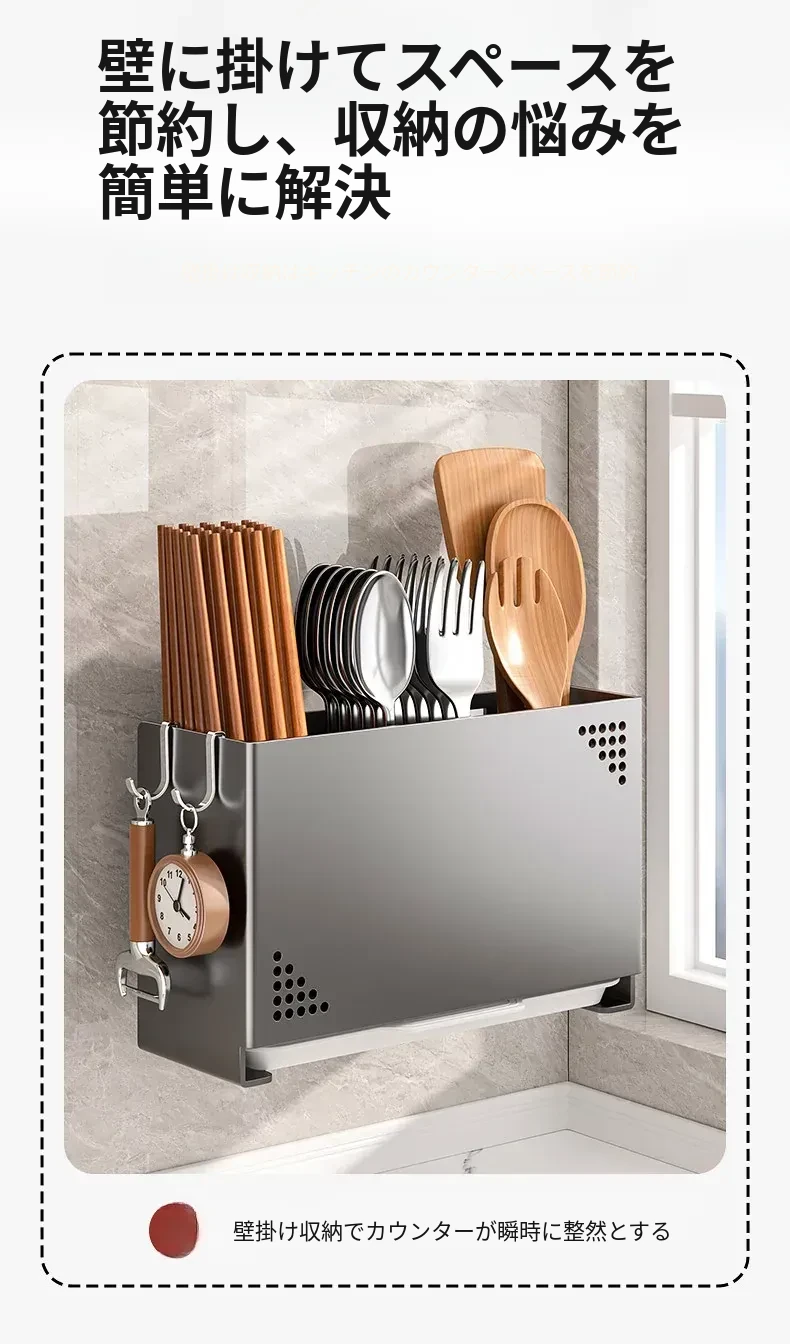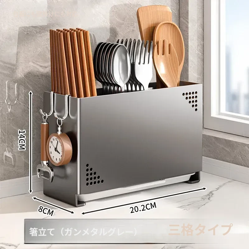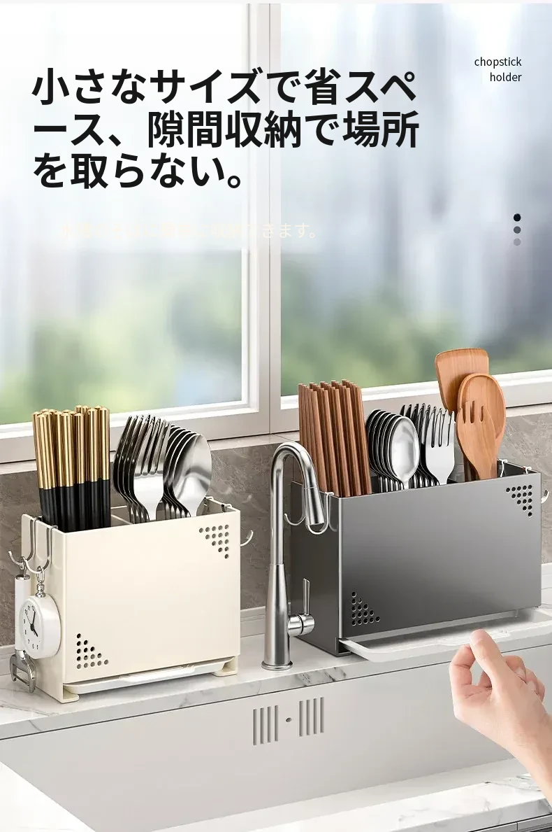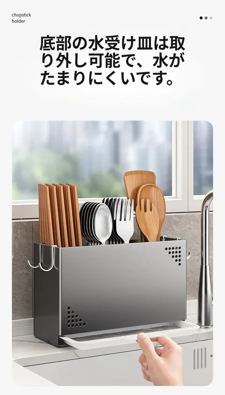 水切り機能付き!使いやすいキッチン用箸収納ボックス - 家庭用の箸・スプーン整理ケース、テーブルの上をスッキリ整理!