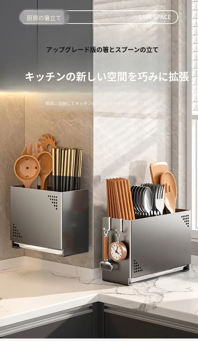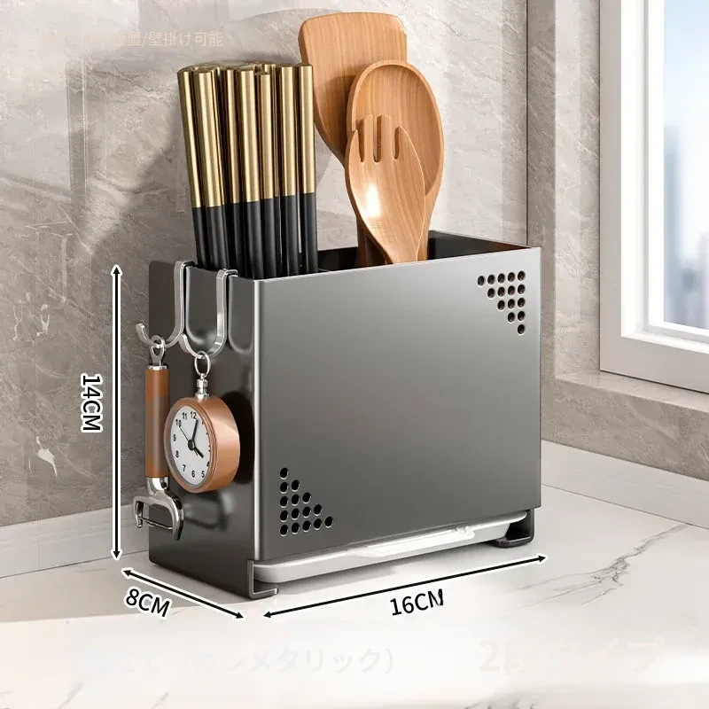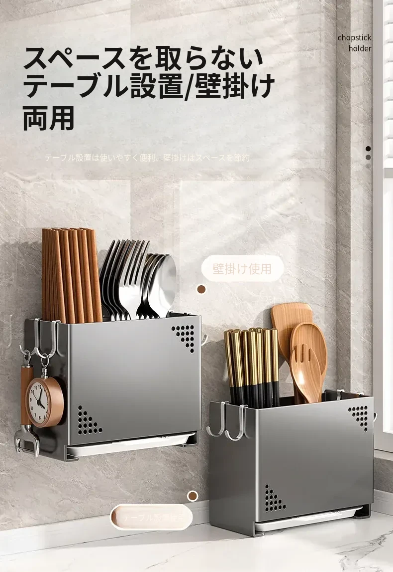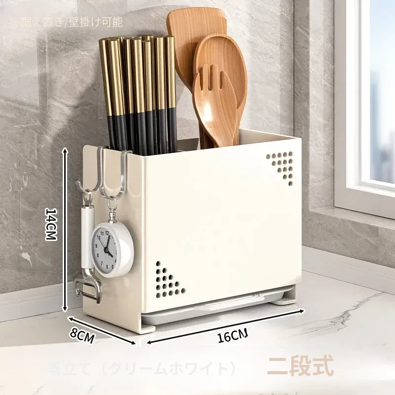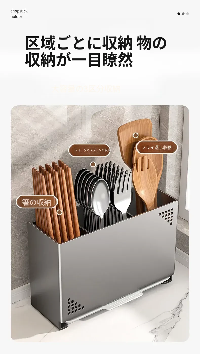 水切り機能付き!使いやすいキッチン用箸収納ボックス - 家庭用の箸・スプーン整理ケース、テーブルの上をスッキリ整理!