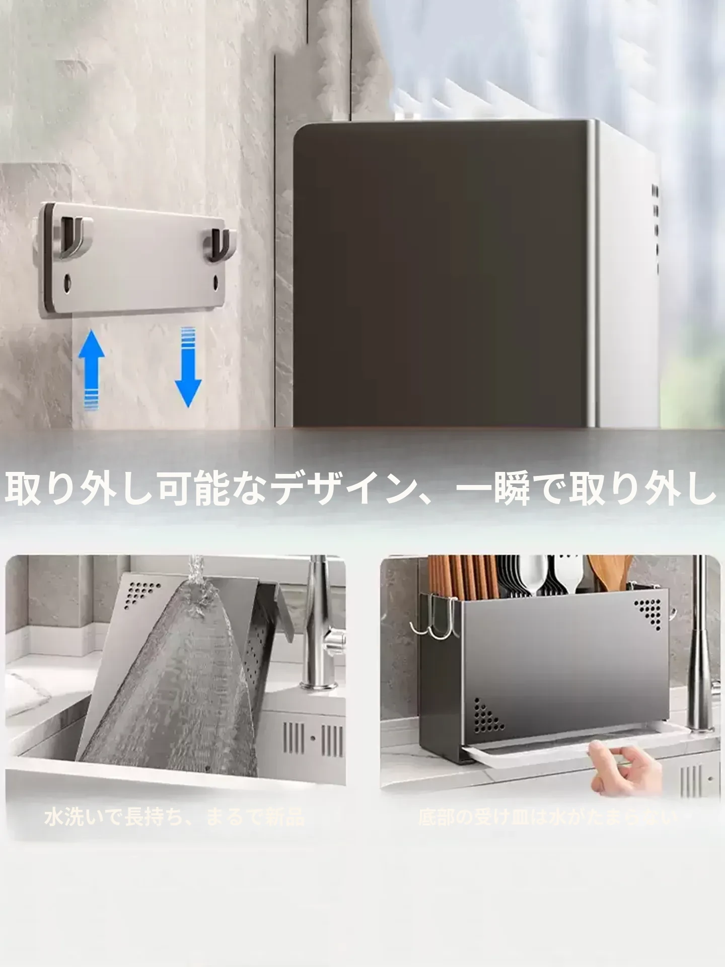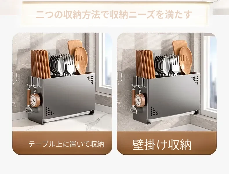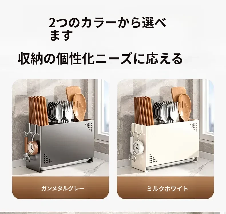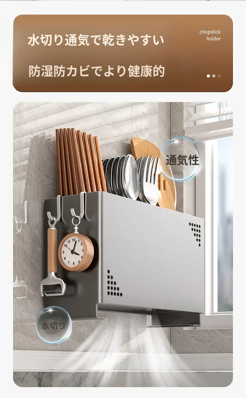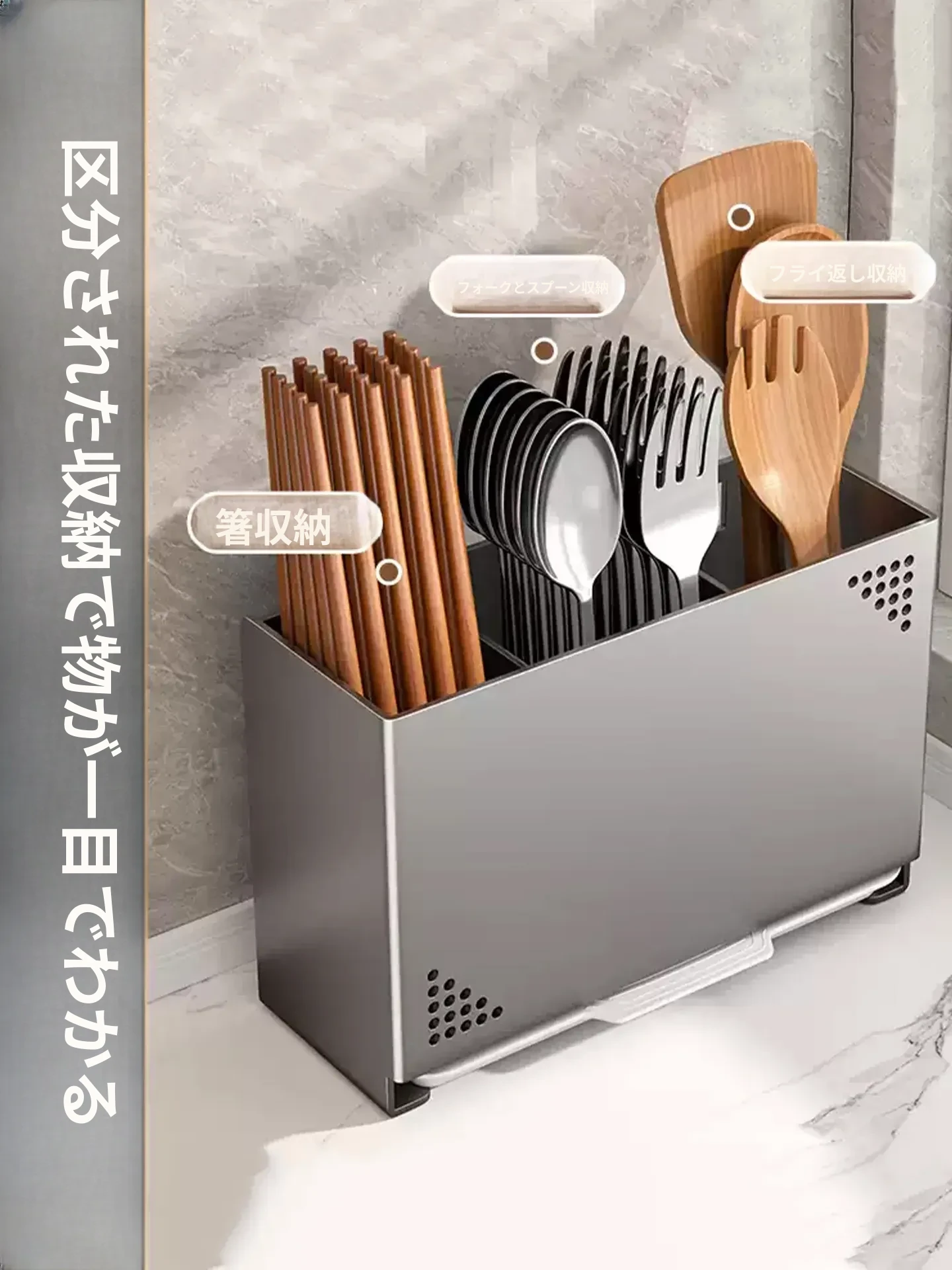 水切り機能付き!使いやすいキッチン用箸収納ボックス - 家庭用の箸・スプーン整理ケース、テーブルの上をスッキリ整理!