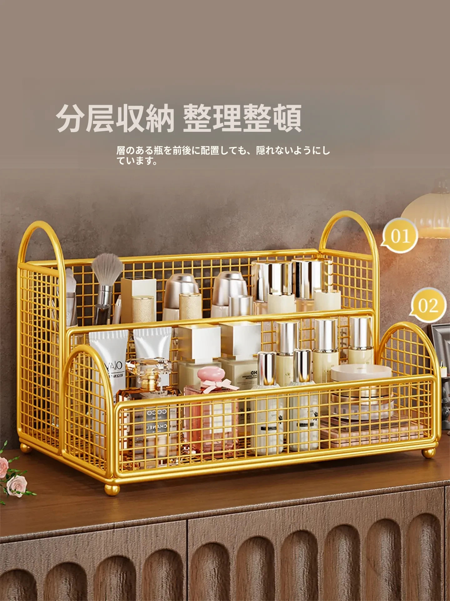 メイクアップ収納ボックス デスクトップ用多層スキンケアアイテムラック 洗面台用の口紅・アイシャドウパレット整理神器!おしゃれで便利な収納で、あなたの美容アイテムをすっきり整頓!